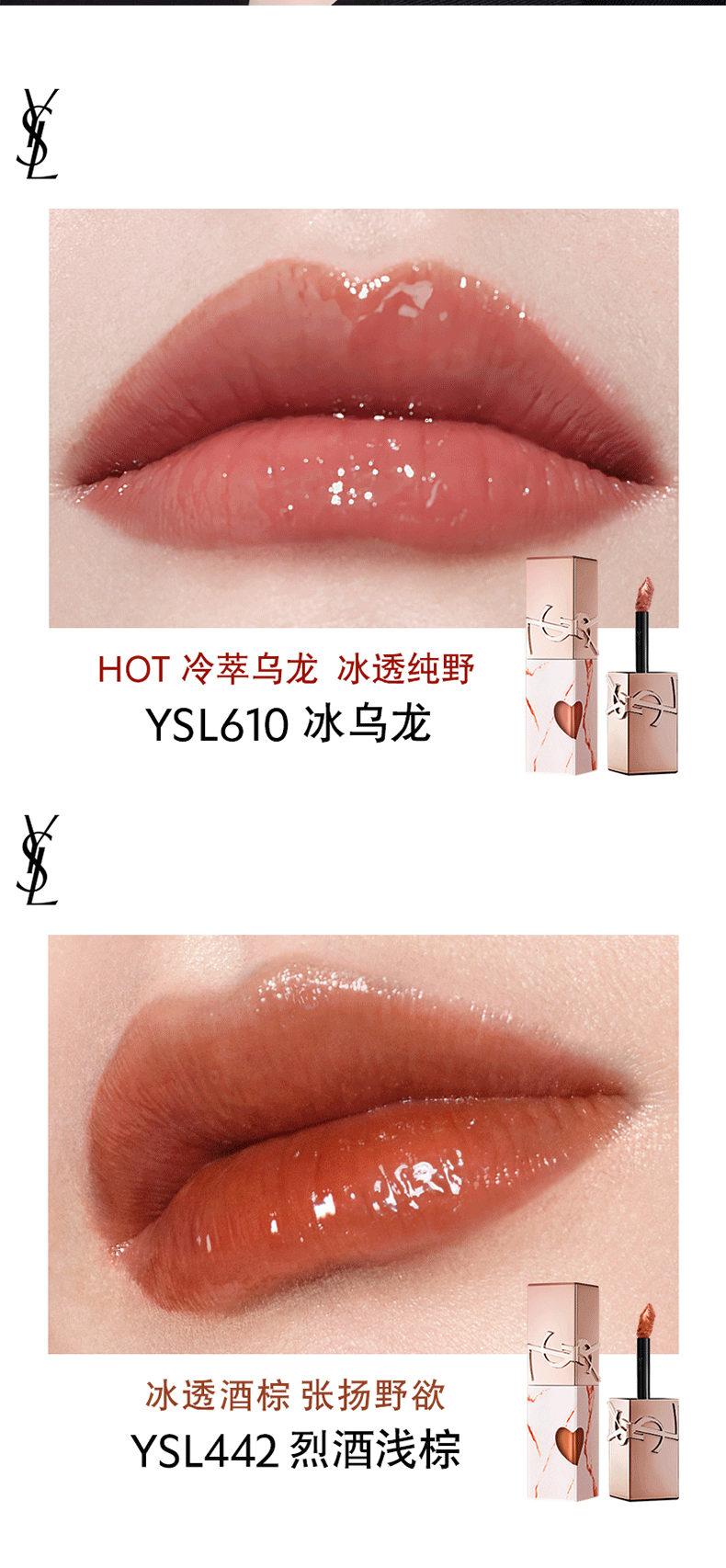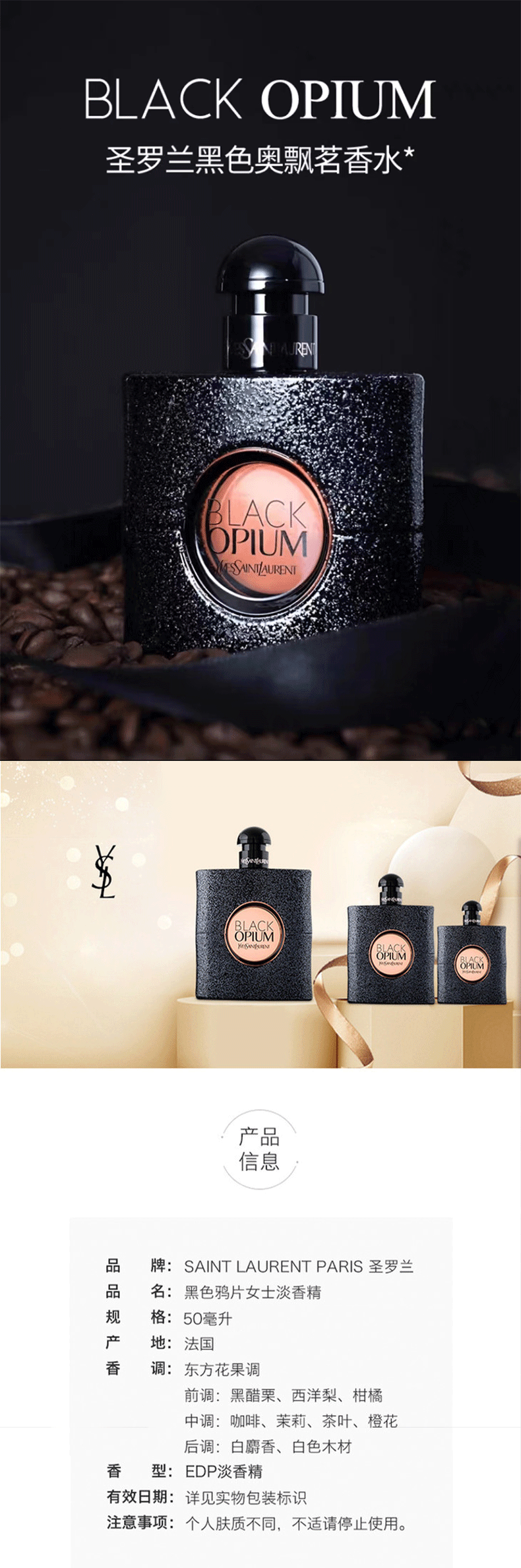 【品牌授权】YSL圣罗兰黑鸦片经典版50ml 浓香+圣罗兰七夕限定大理石爱心唇釉5.5ml#610冰乌龙 #442烈酒浅棕