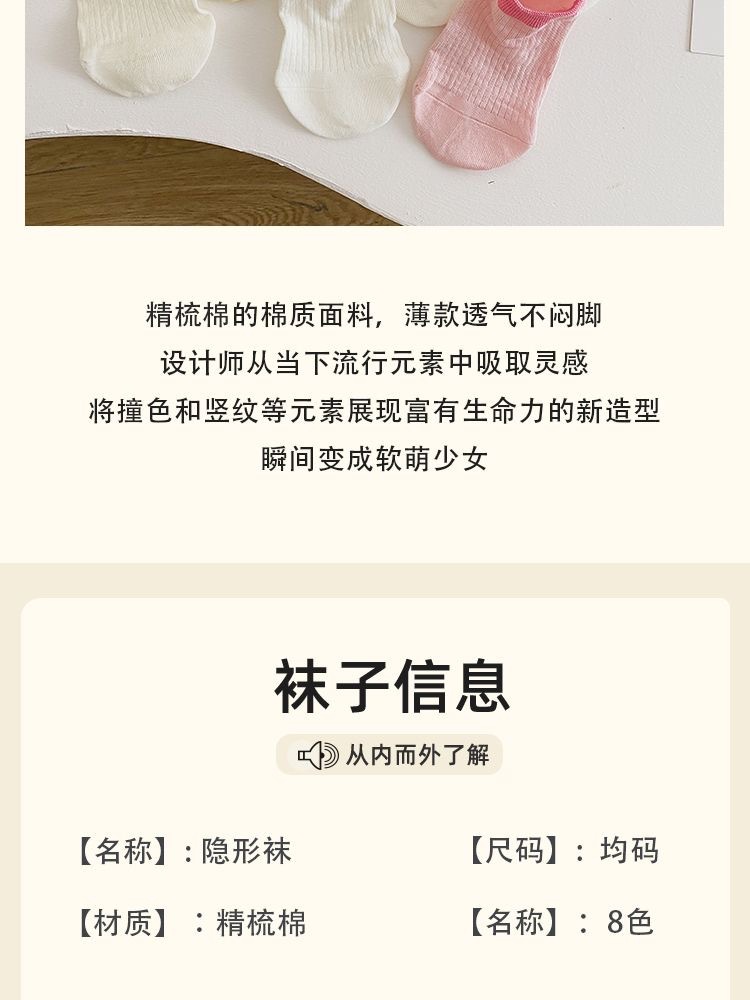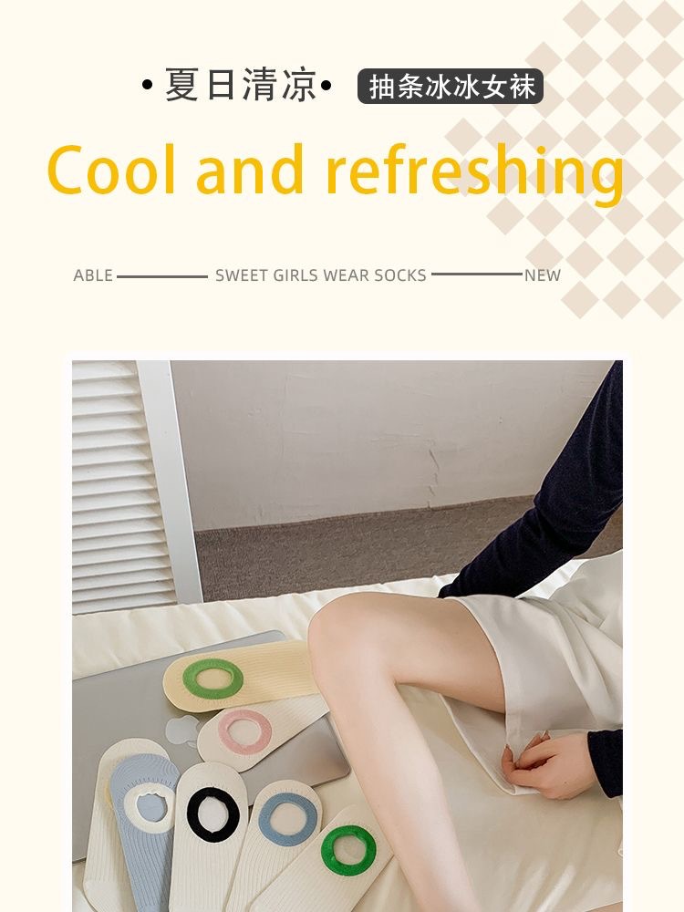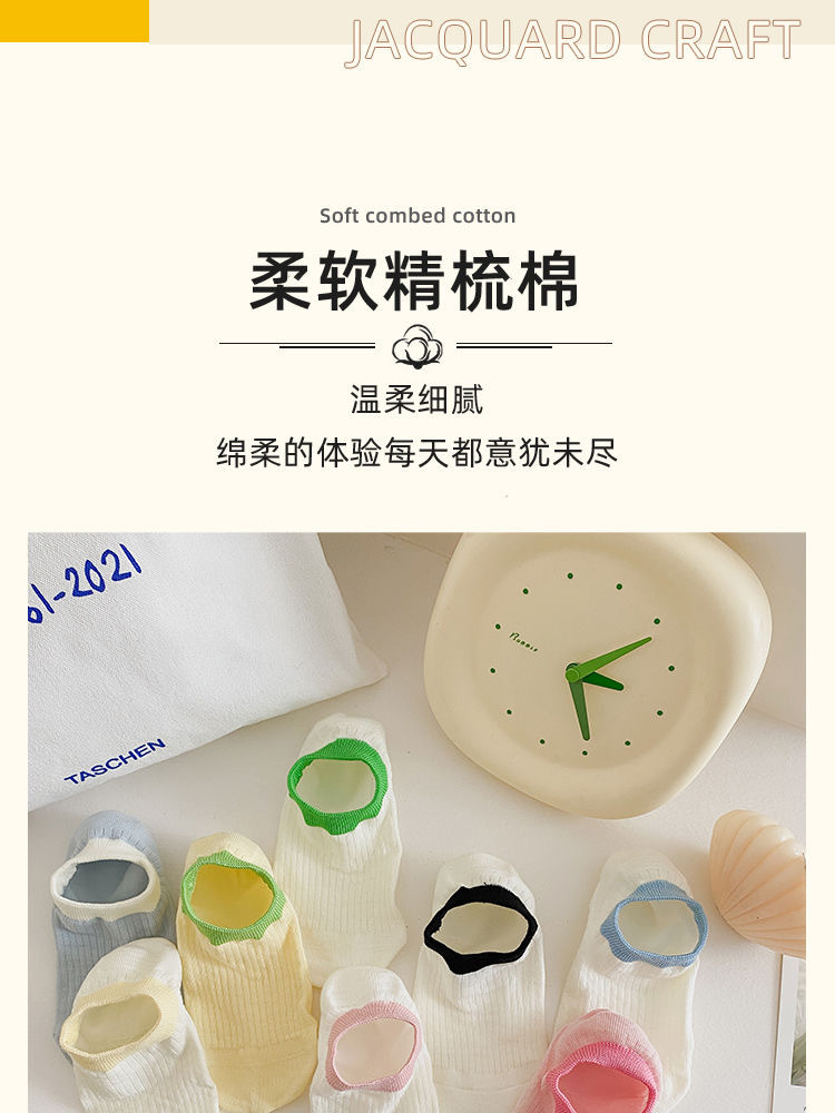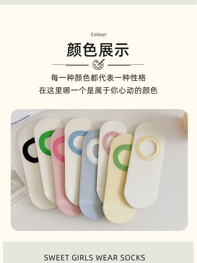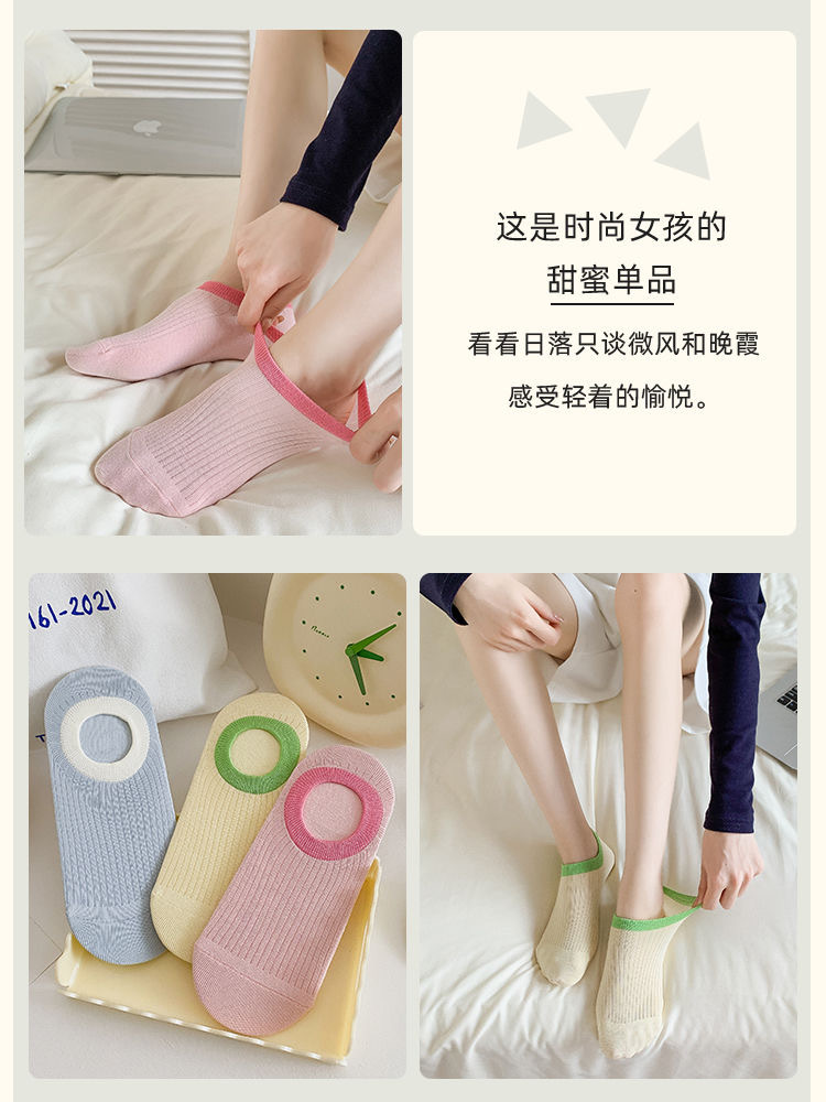 袜子女夏季纯棉薄款冰淇淋拼色无骨船袜吸汗透气防滑不掉跟隐形袜