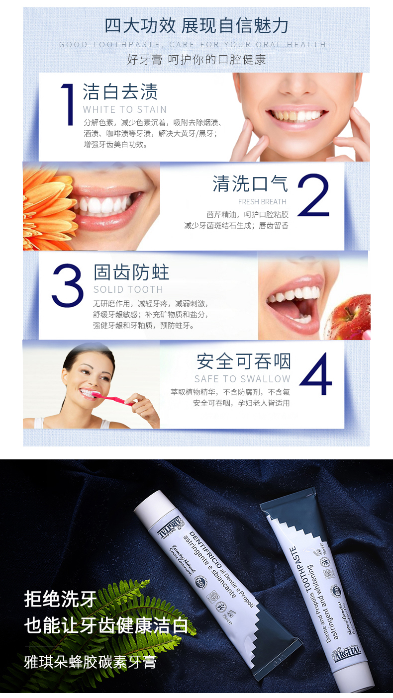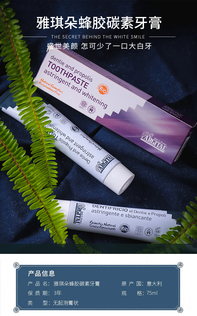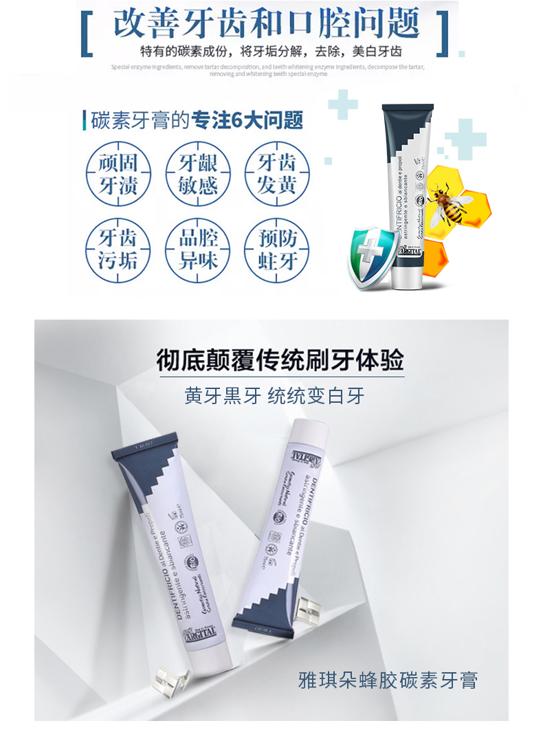 雅琪朵蜂胶碳素牙膏 75ml/支