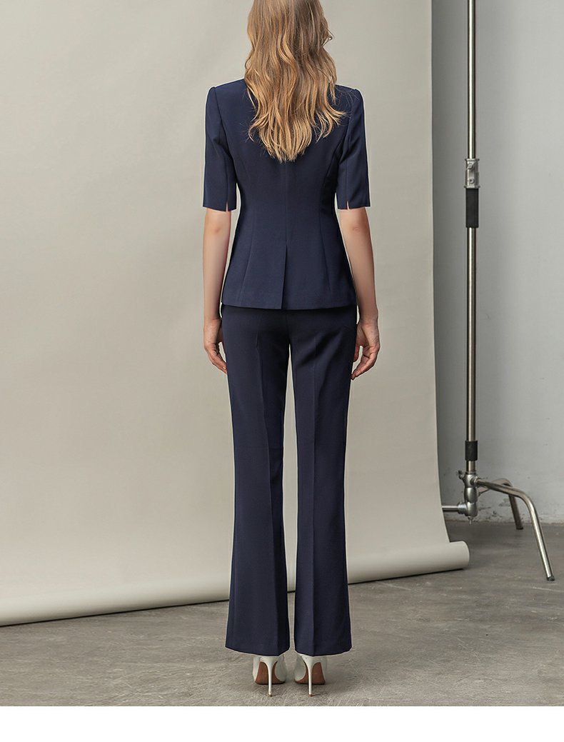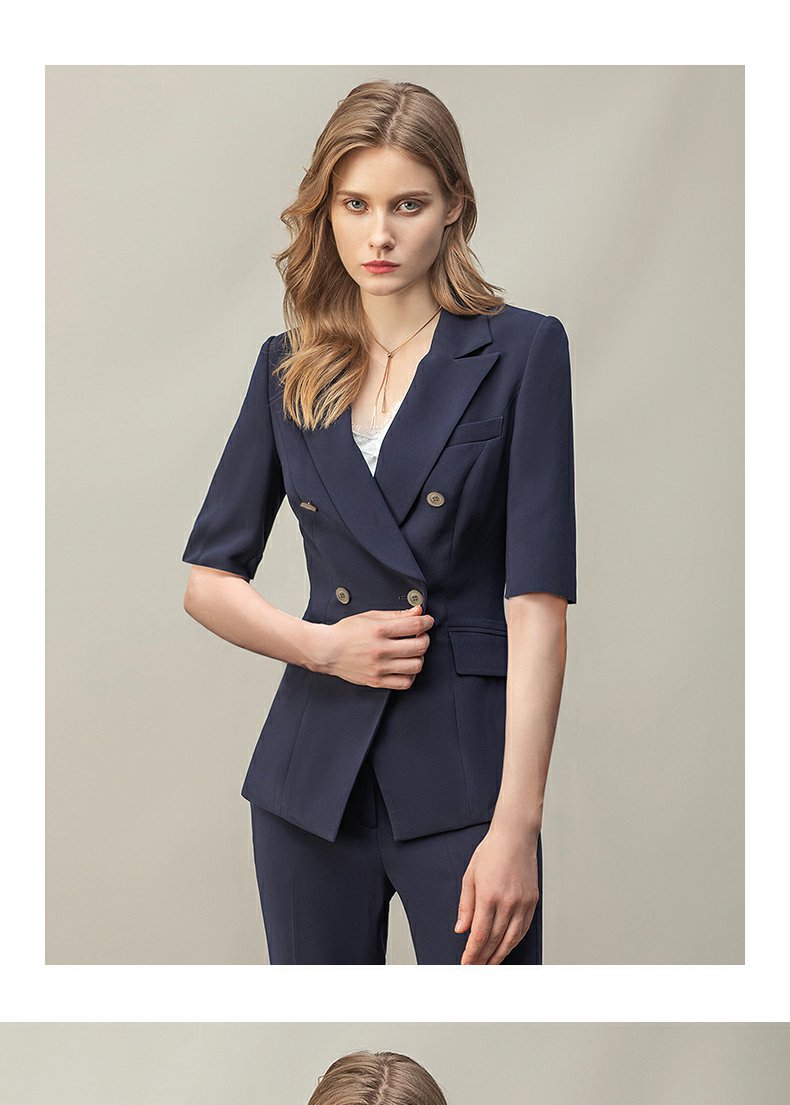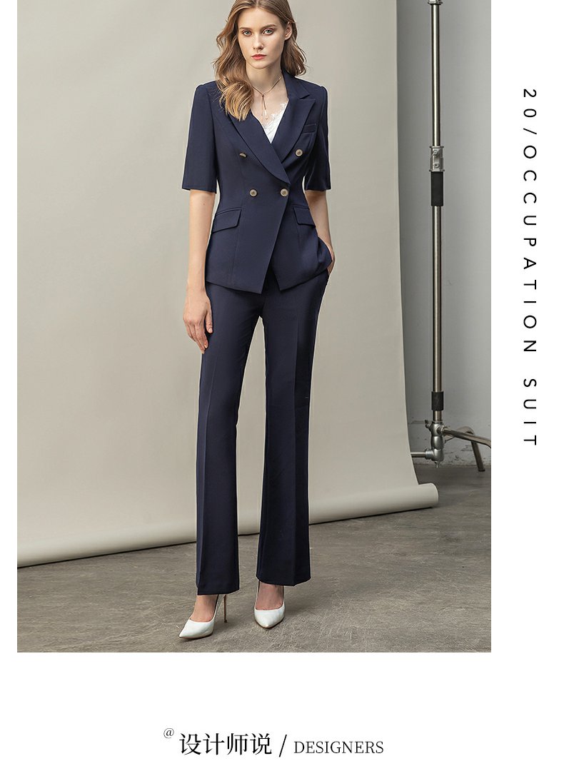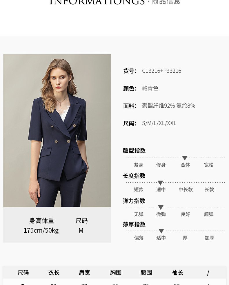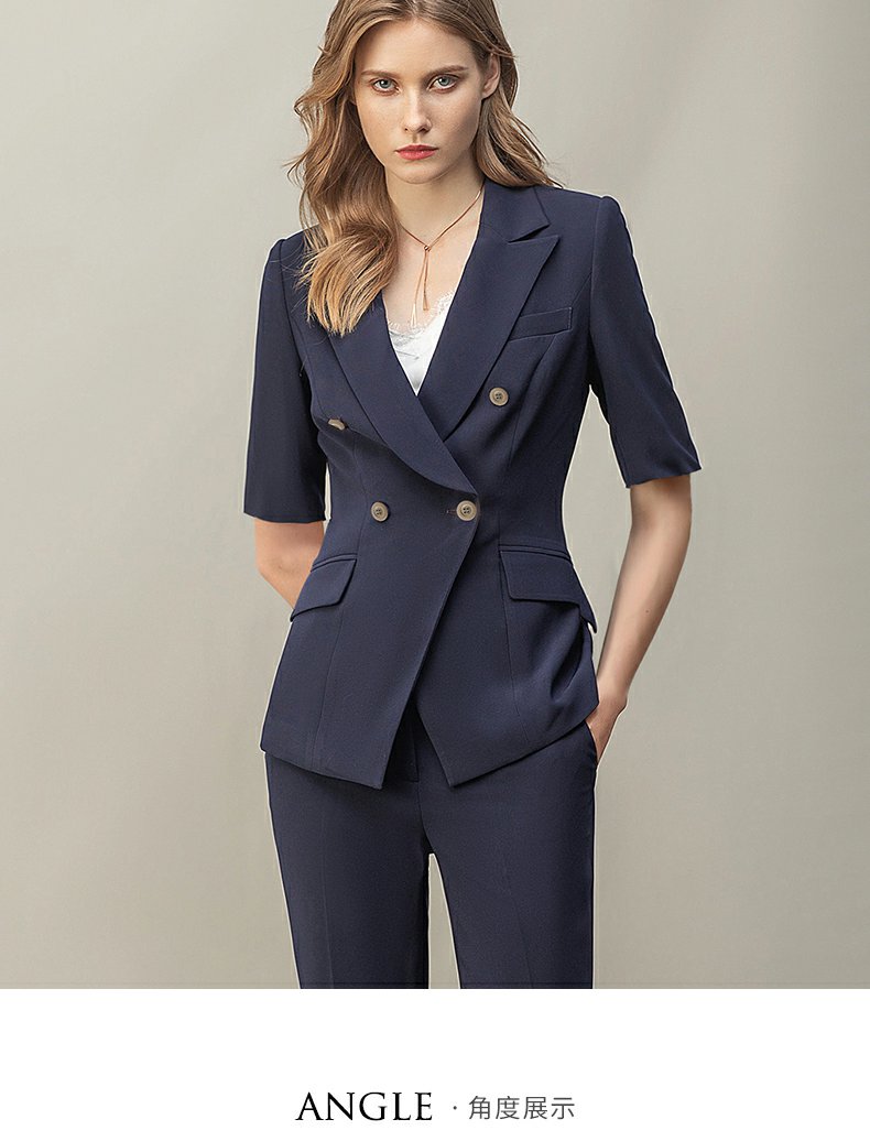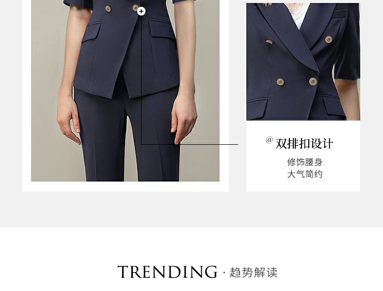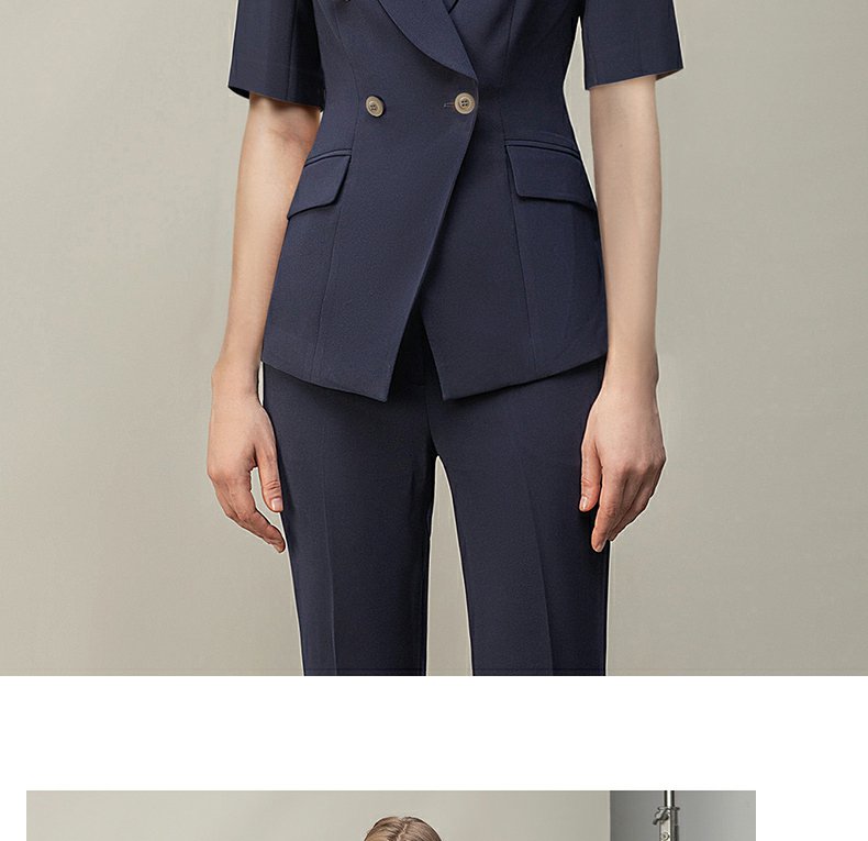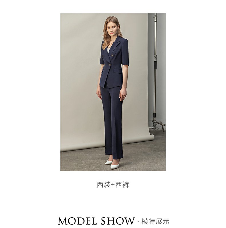 IWY/夏季新款气质藏青色短袖西装套装上班售楼部薄款工作服olC13216+P33216