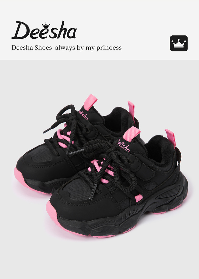 笛莎Deesha 女童童鞋2025冬季新款加绒低帮运动鞋
