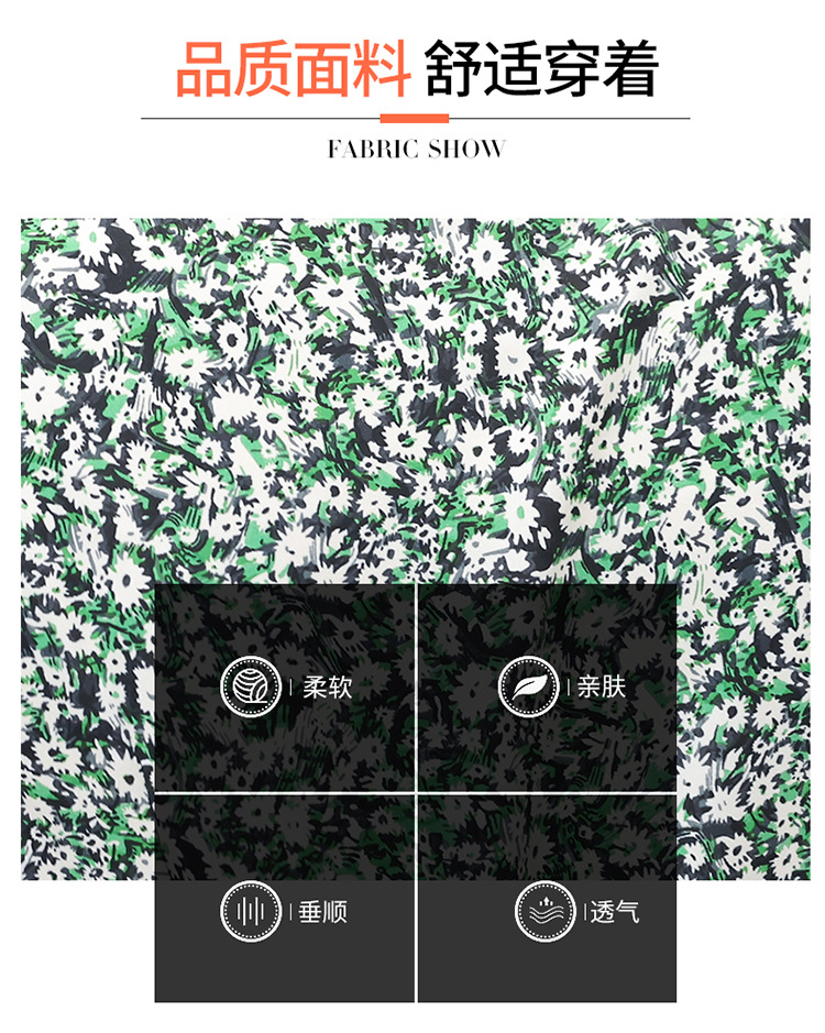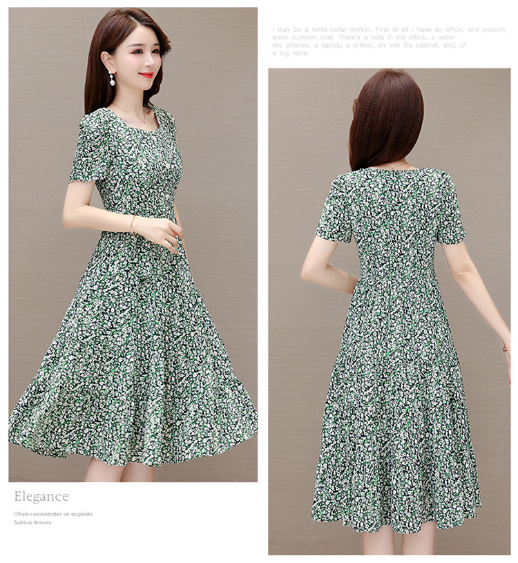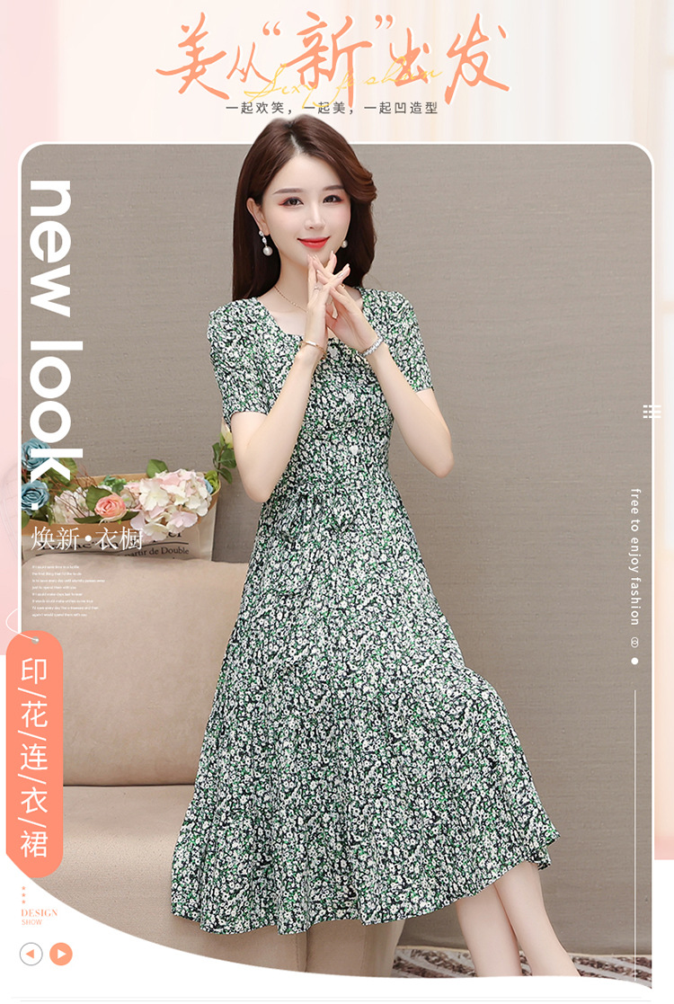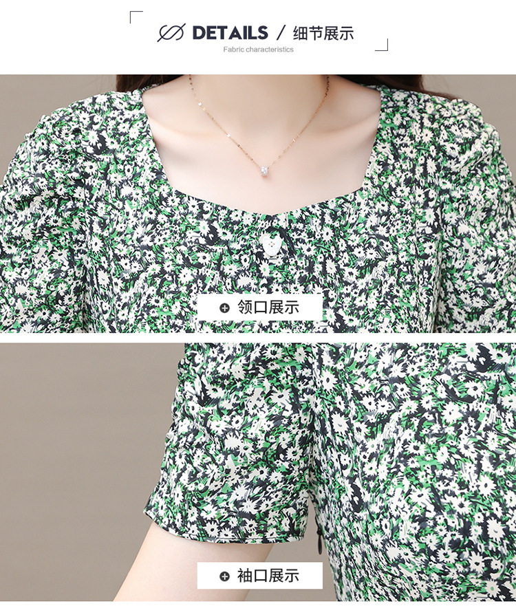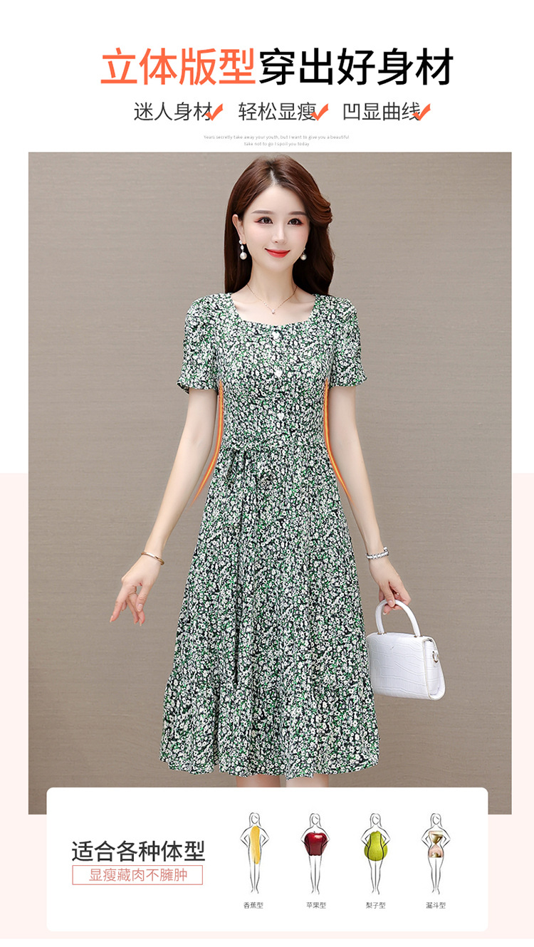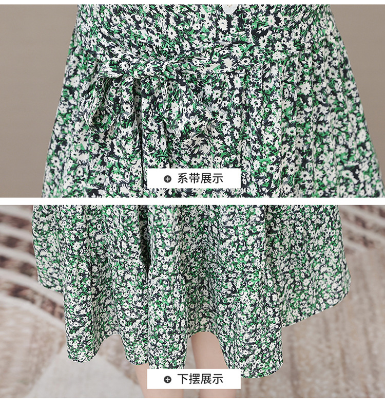 气质夏款,中长款碎花简约系带收腰时尚雪纺裙方领短袖连衣裙QYM-DFN-A2857-L