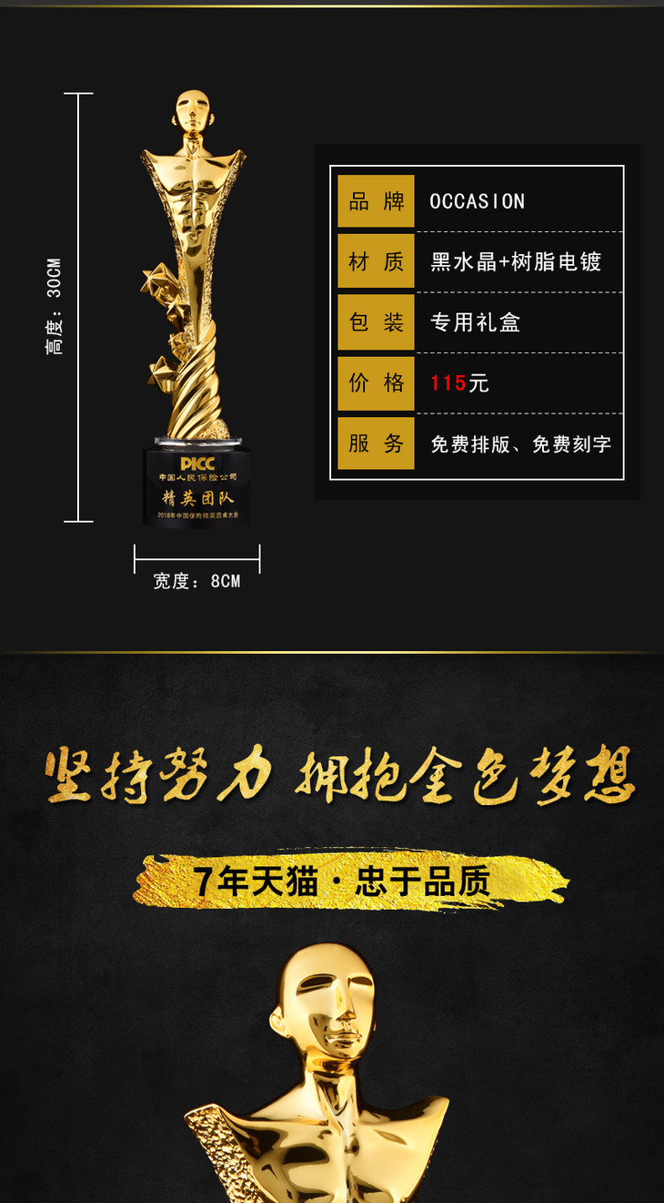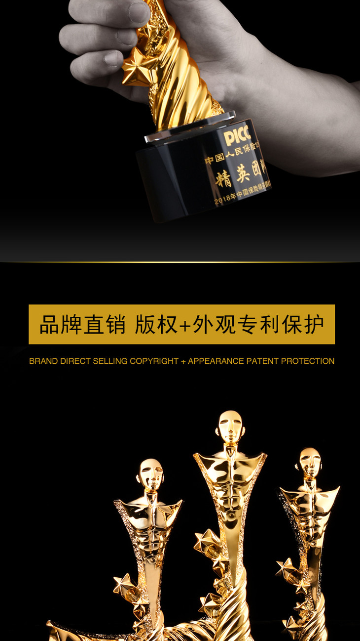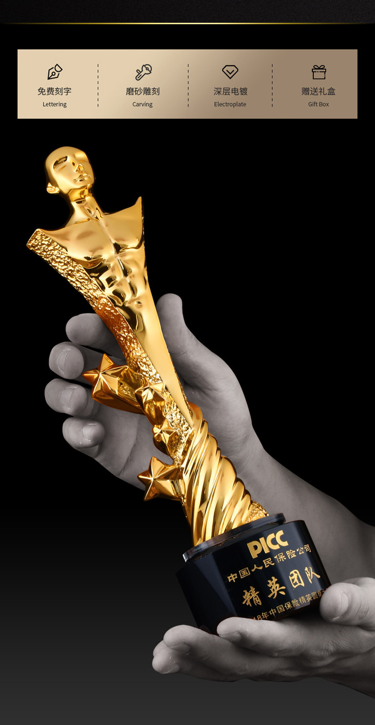 盛典 定制奥斯卡小金人奖杯 冠军比赛奖品优秀员工纪念品定做制作