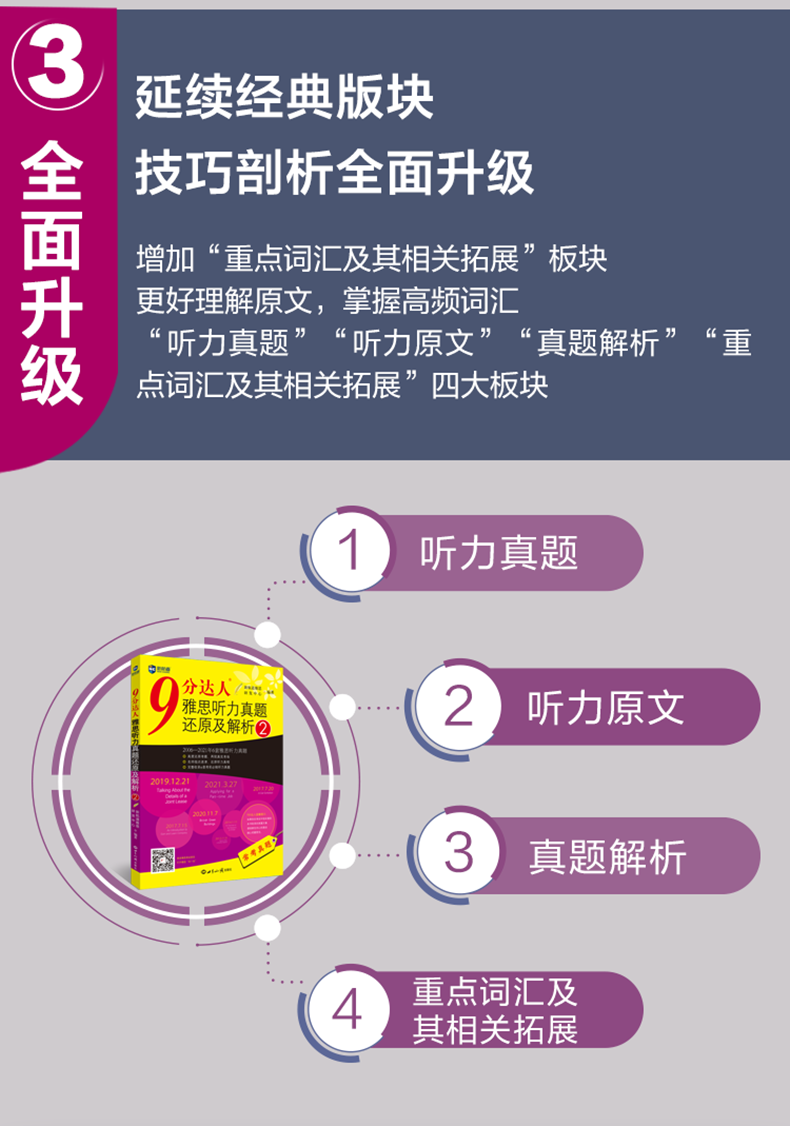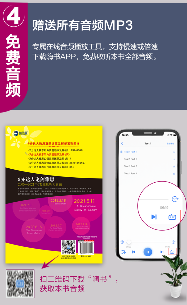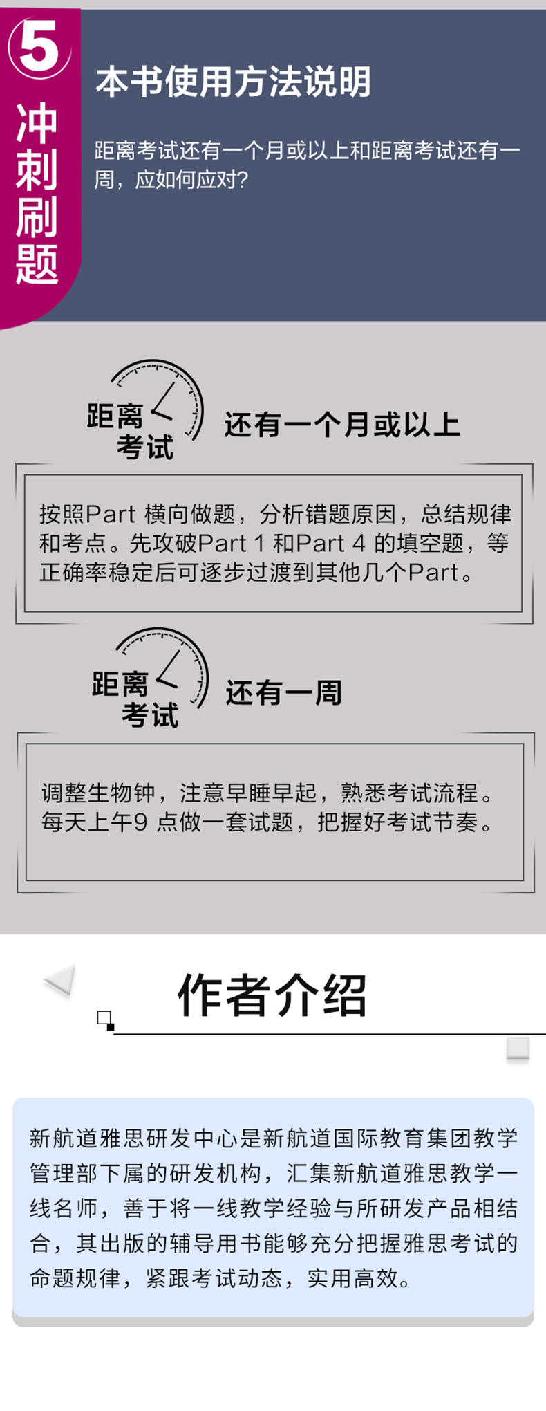 本书在总结剑桥雅思真题机经回忆的基础上,针对雅思考试的变化,还原了贴近真题的雅思听力考题。本书特色如下:一、收录6套真题。每套题的题目设置都经过了编者的悉心考量,并配有听力原文、详细解析、词汇拓展、参考答案。二、题型全面,选取高频场景。在题型分配上,本书涵盖了有可能出现在雅思听力考试中的常见题型,如填空题、选择题、地图题、配对题等;在场景选取上,书中主要选择了雅思考试的高频场景,如租房购物、旅游咨询、课程讨论等。三、附赠音频。所有音频均由外籍专业配音员进行录制,力求与雅思听力考试的语速保持一致,准确还原雅思听力考试的每一个细节。