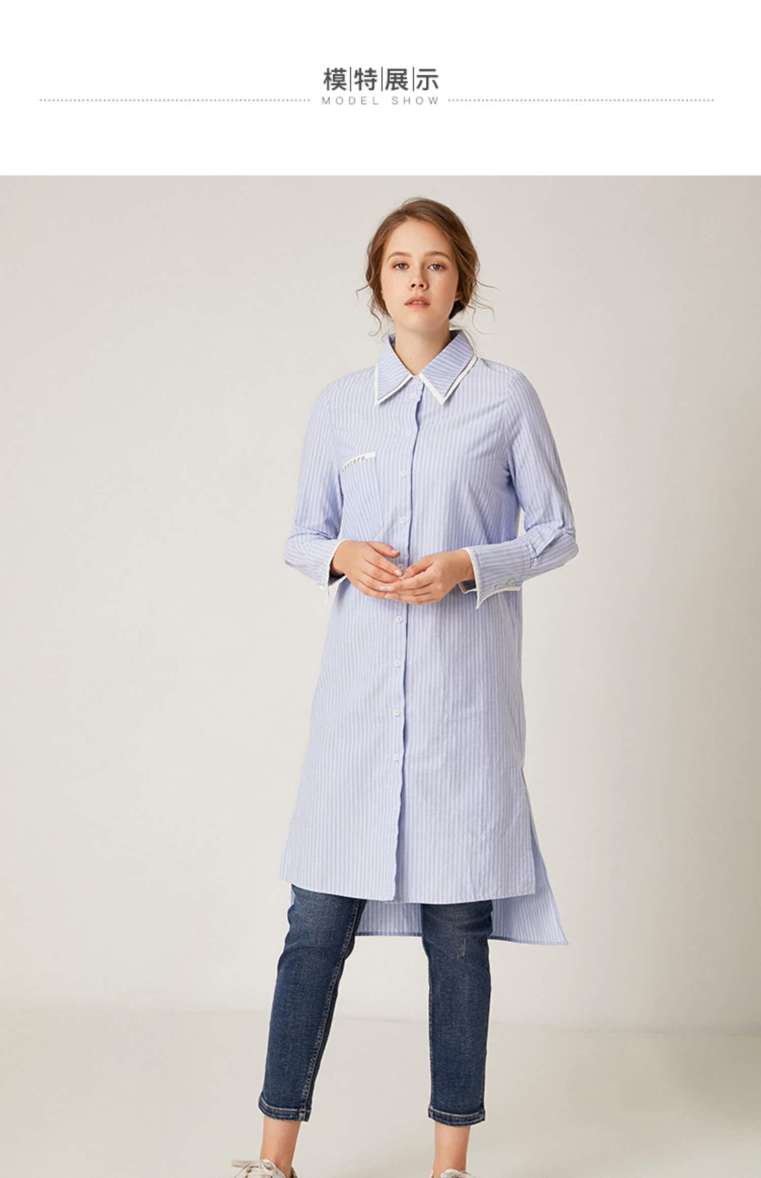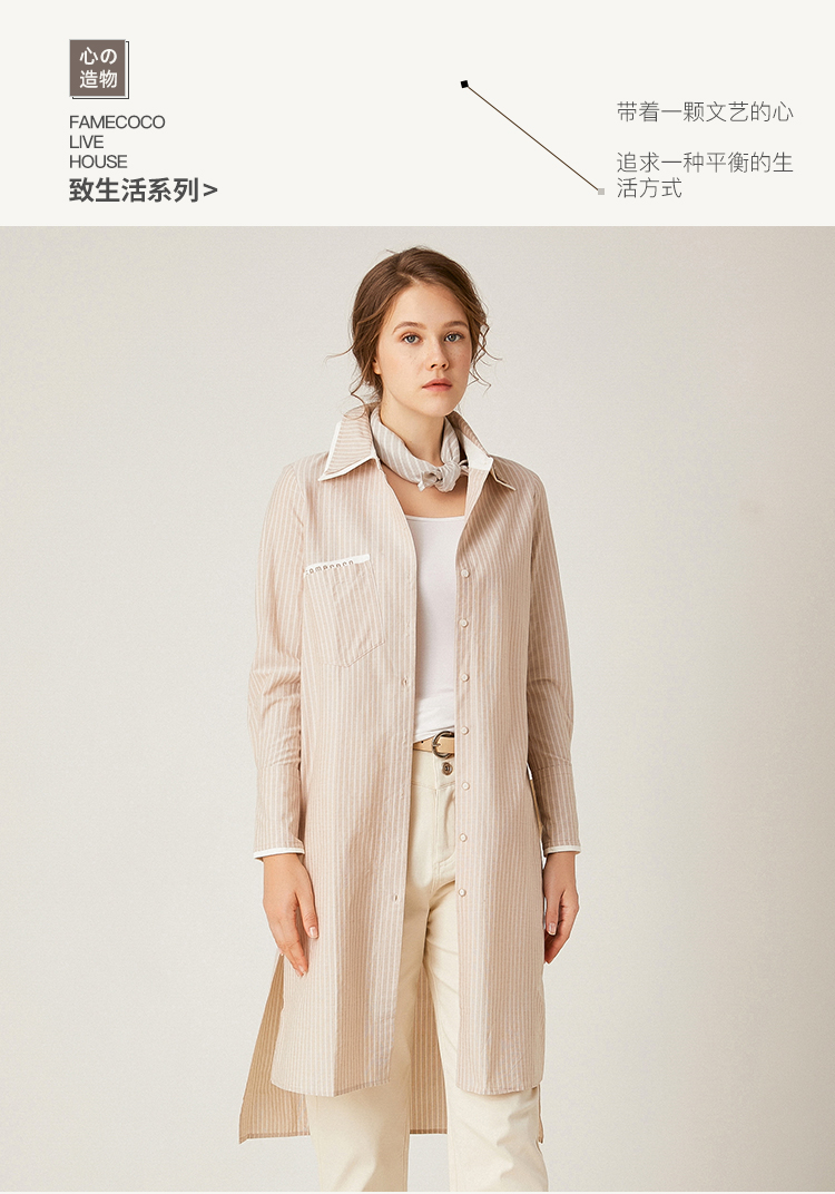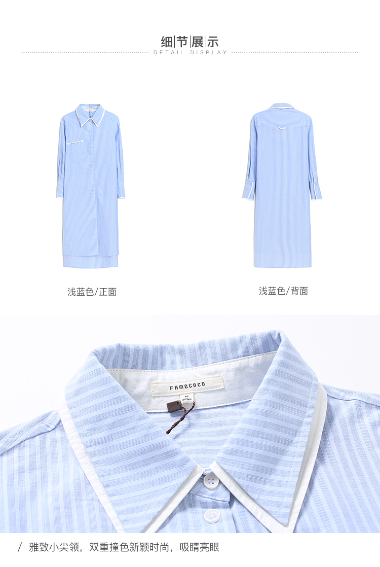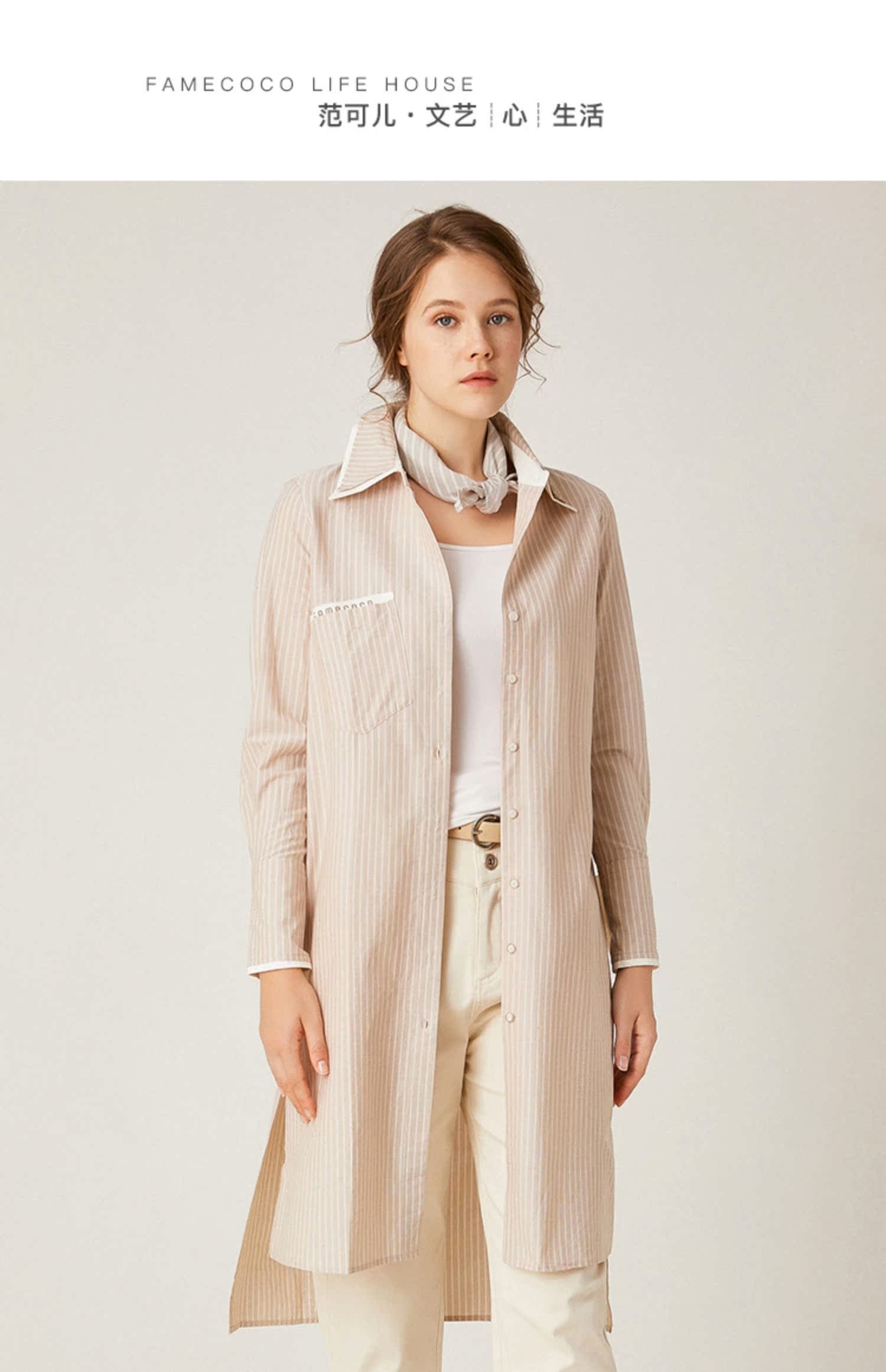 famecoco范可儿条纹衬衫女士宽松韩版百搭中长款F195BA007