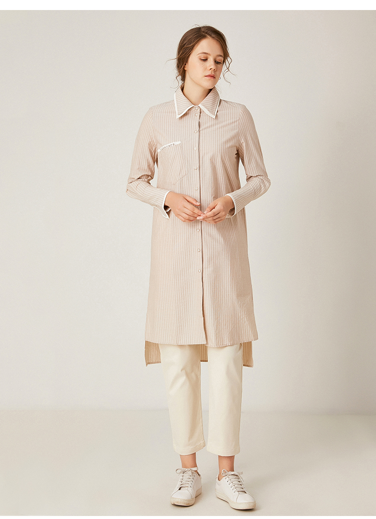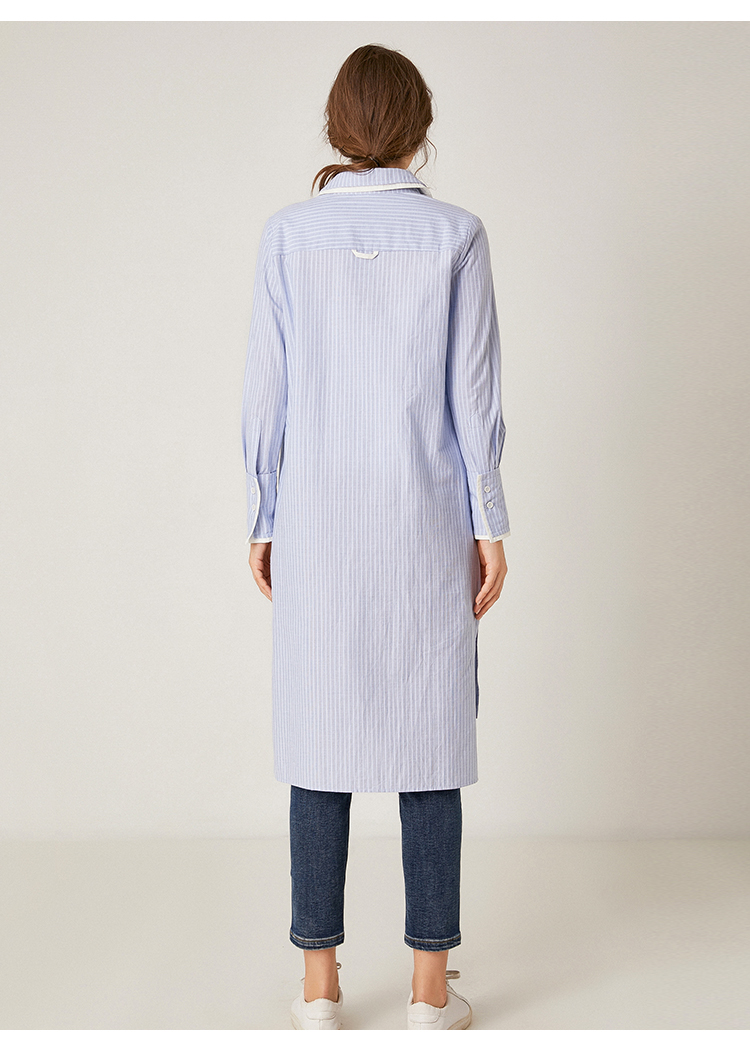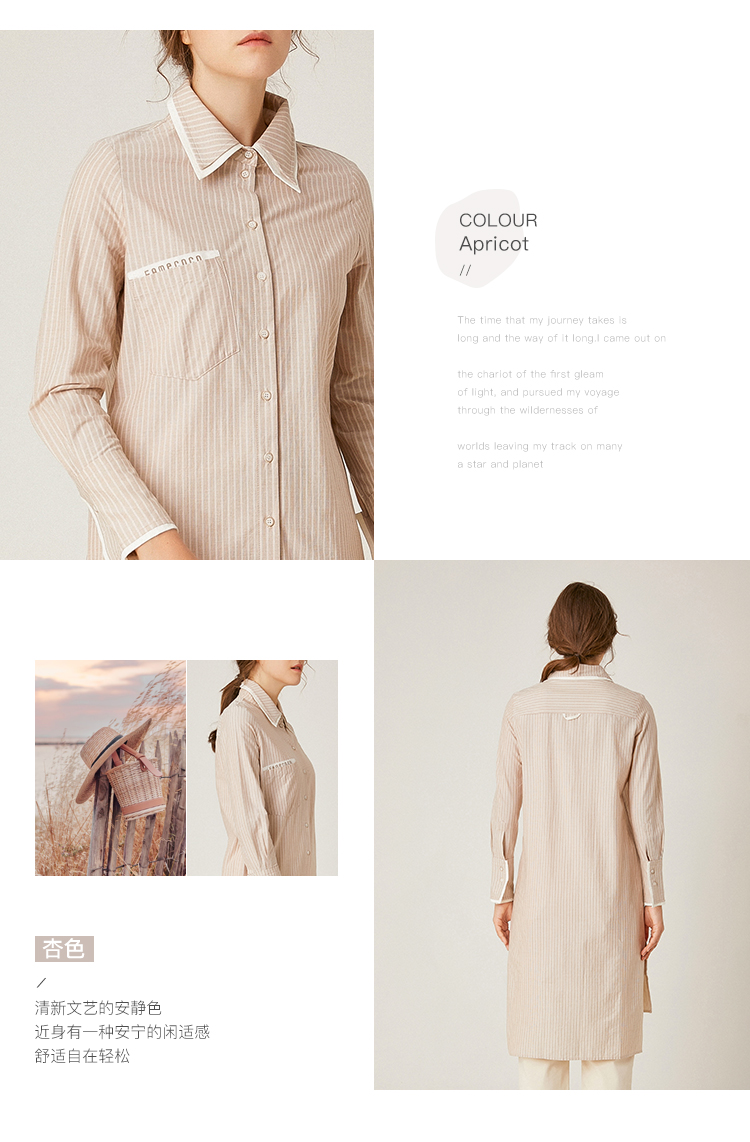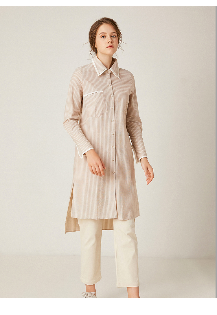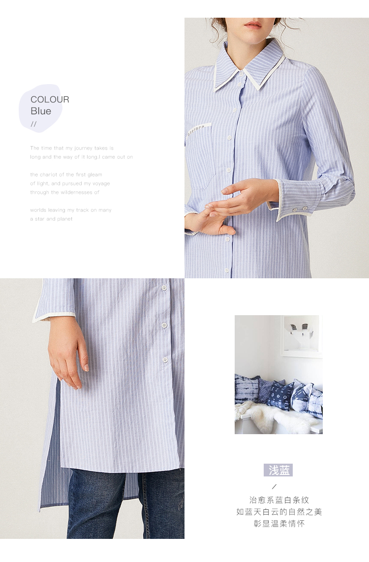 famecoco范可儿条纹衬衫女士宽松韩版百搭中长款F195BA007