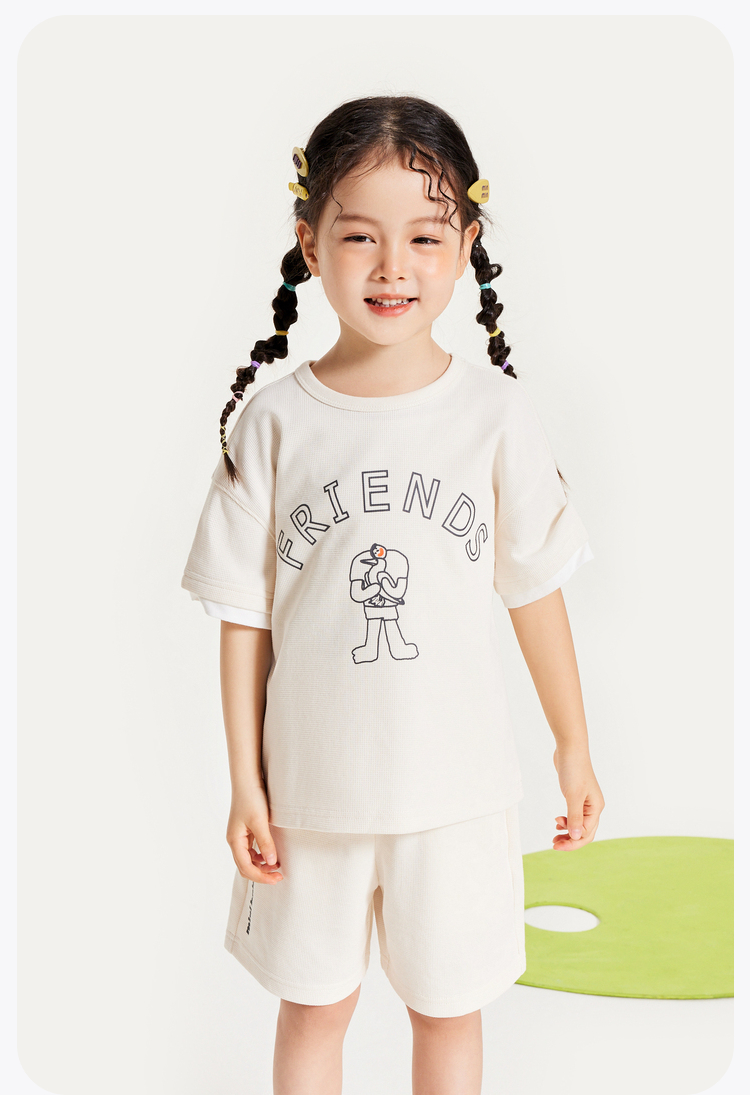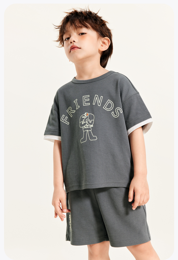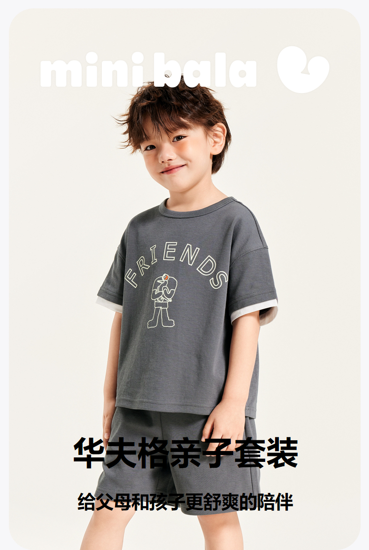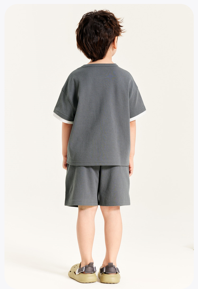 【限时秒杀】【mini亲子 儿童款】男女童儿童宽松舒适透气华夫格短袖T恤短裤运动套装