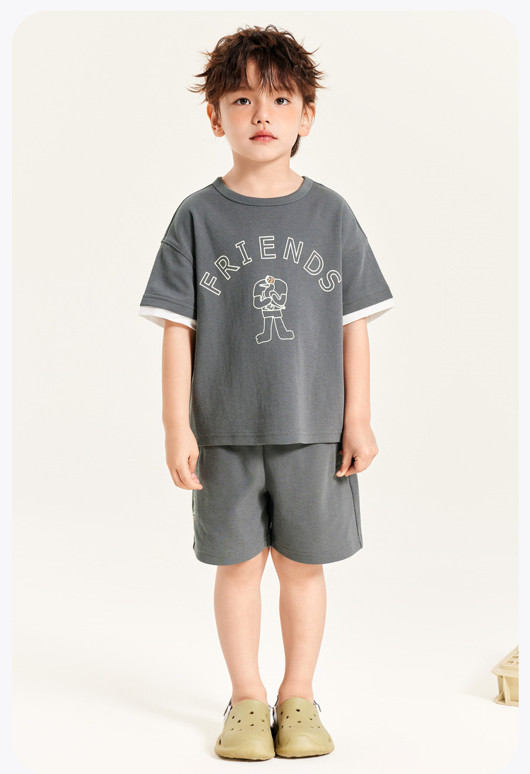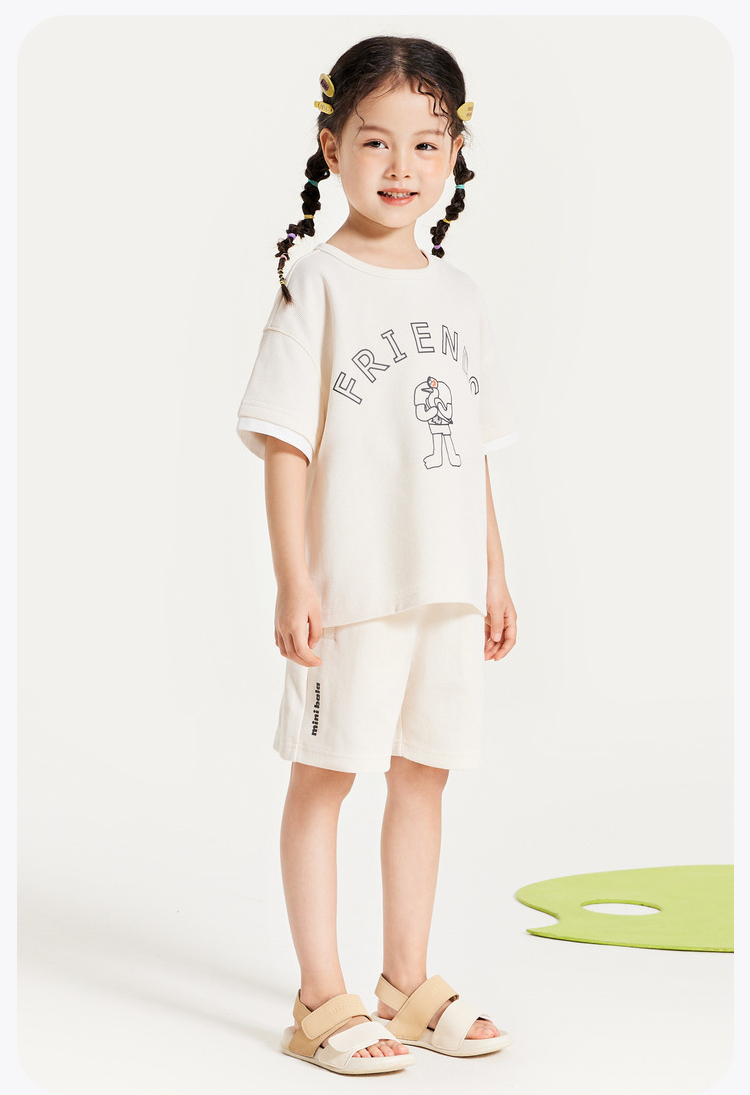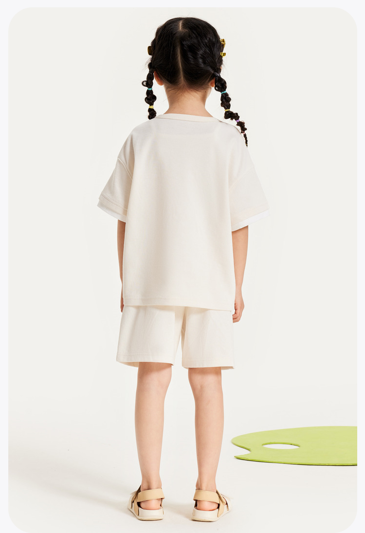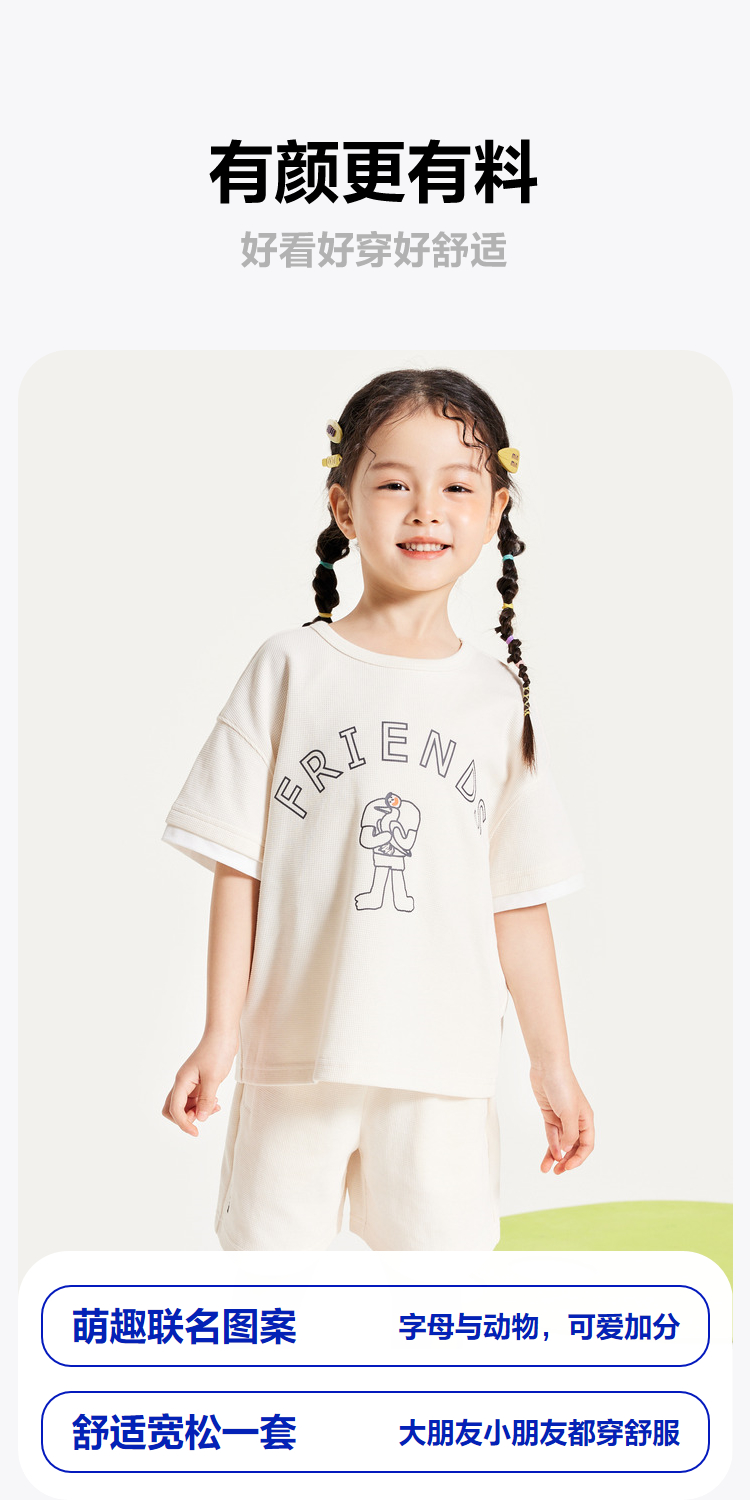【限时秒杀】【mini亲子 儿童款】男女童儿童宽松舒适透气华夫格短袖T恤短裤运动套装
