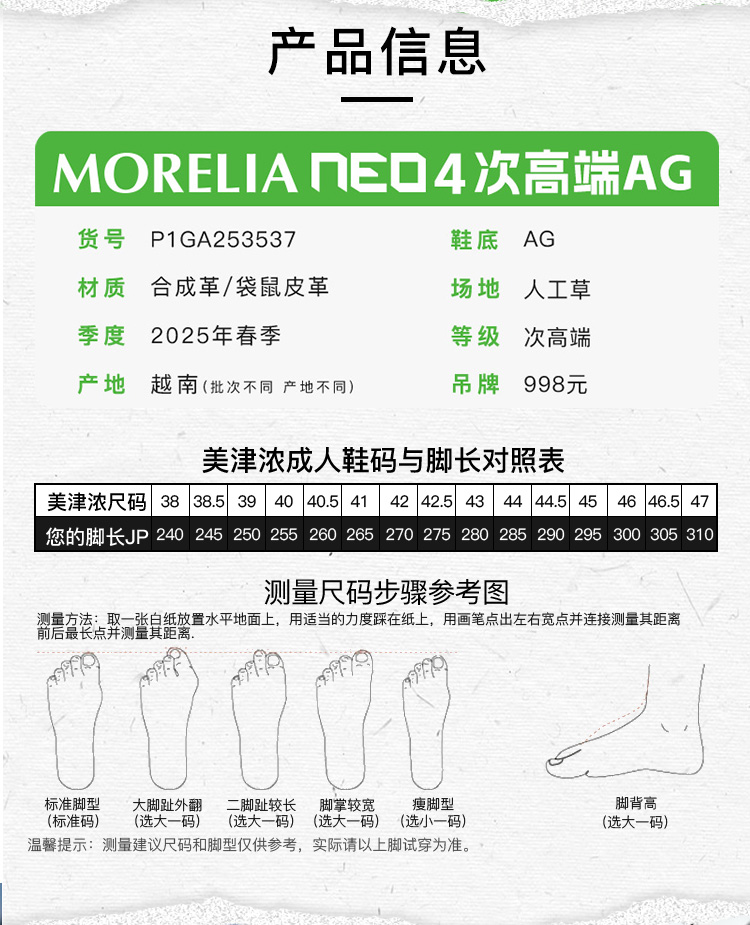 Mizuno/美津浓 MORELIA NEO IV PRO AG (MS-092) 次高端 Morelia Neo IV AG足球鞋 P1GA253537