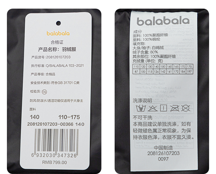 【balaOne】巴拉巴拉童装儿童羽绒服男女童2025新款春防护拜年服