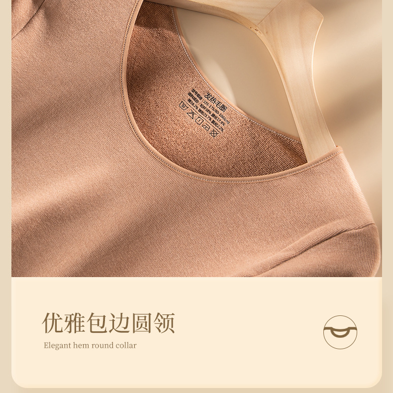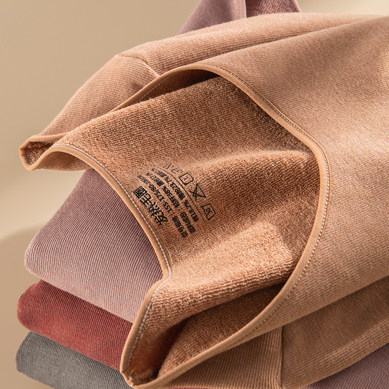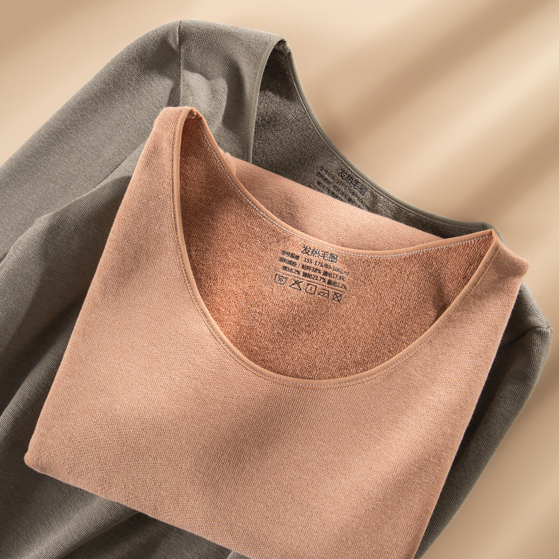 【发热毛圈秋衣秋裤】女士圆领高腰收腹秋冬季保暖内衣套装加厚毛圈绒发热秋衣秋裤批发