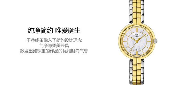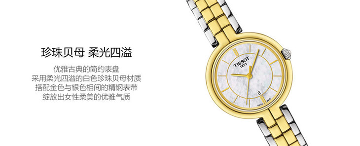 镜面 材质 | 蓝宝石水晶玻璃 | 表盘 | 精钢PVD镀金表壳 白色珍珠贝母表盘 条字刻度时标 大三针 日期显示 |