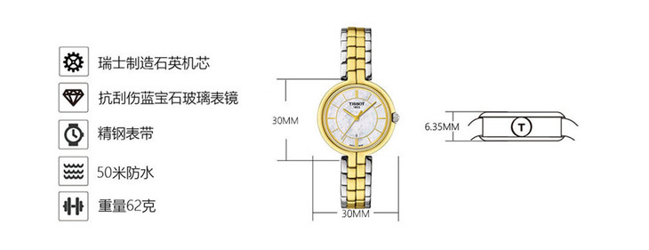 | 防水 | 50 m | 表带 | 精钢PVD镀金间金表链 按钮式蝴蝶扣 |
