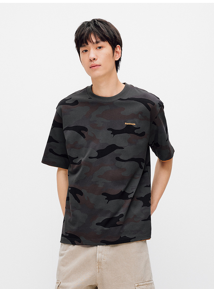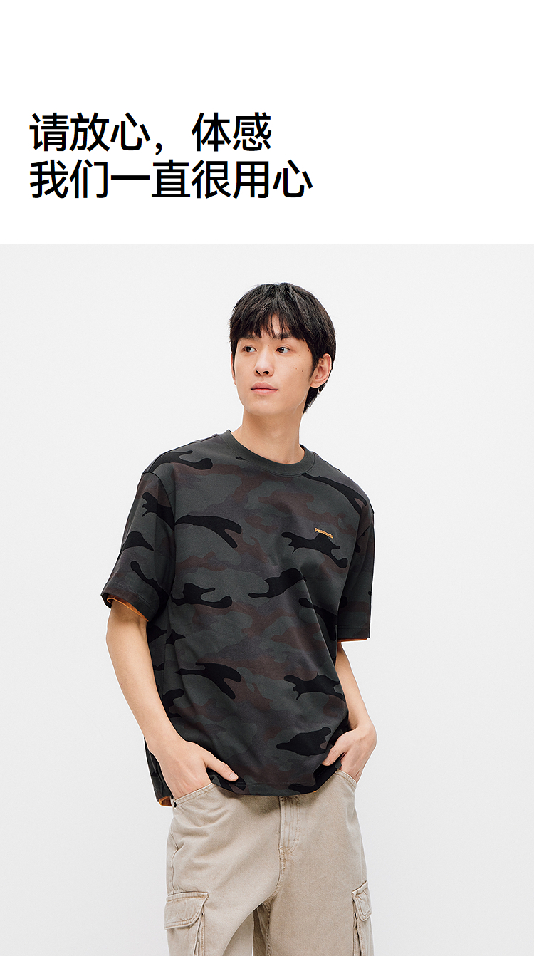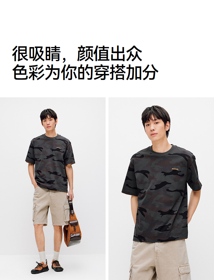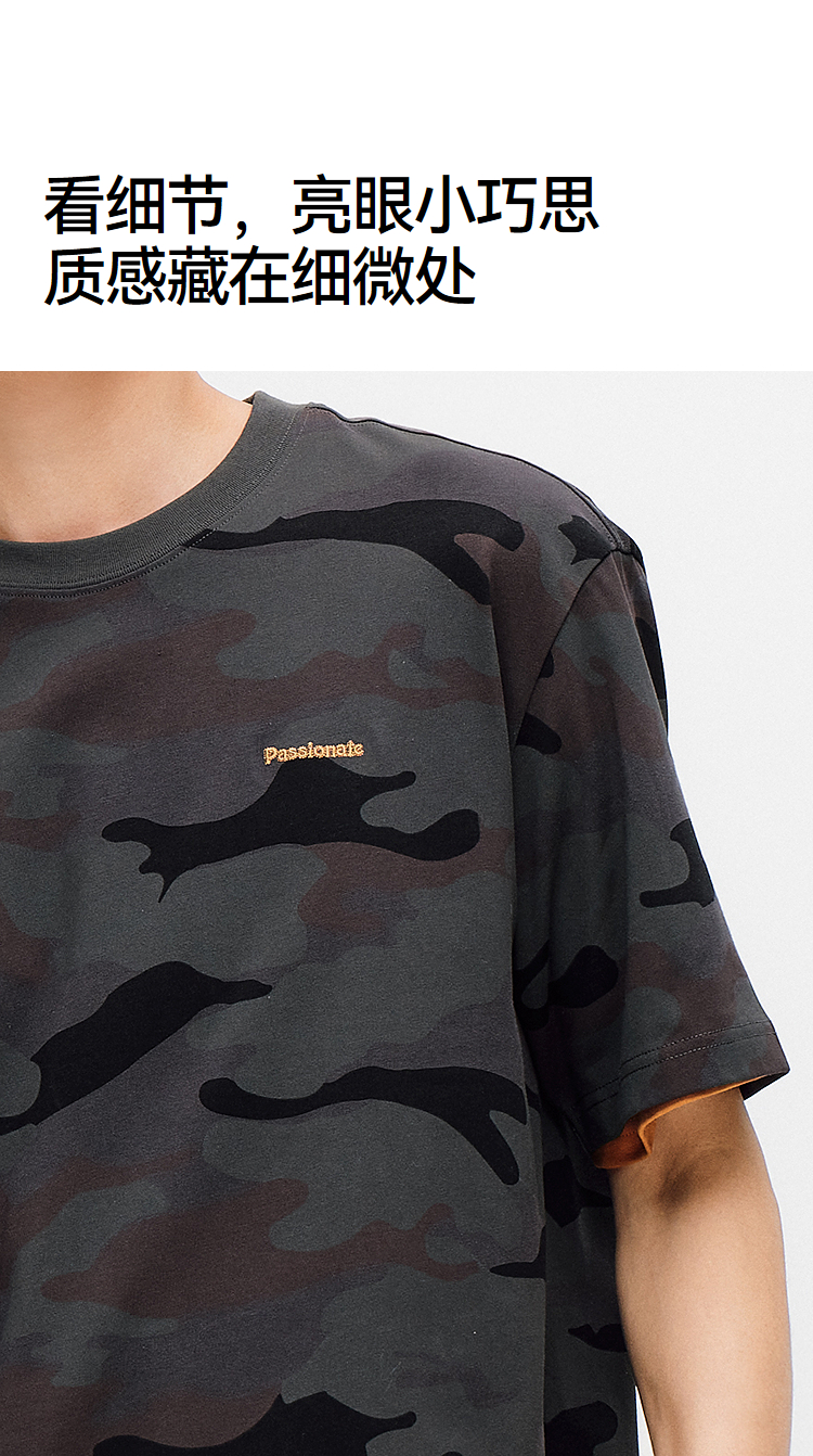 森马短袖T恤男夏季潮流迷彩满印针织衫2026新款纯棉撞色绣花上衣