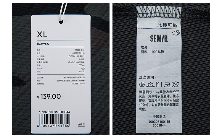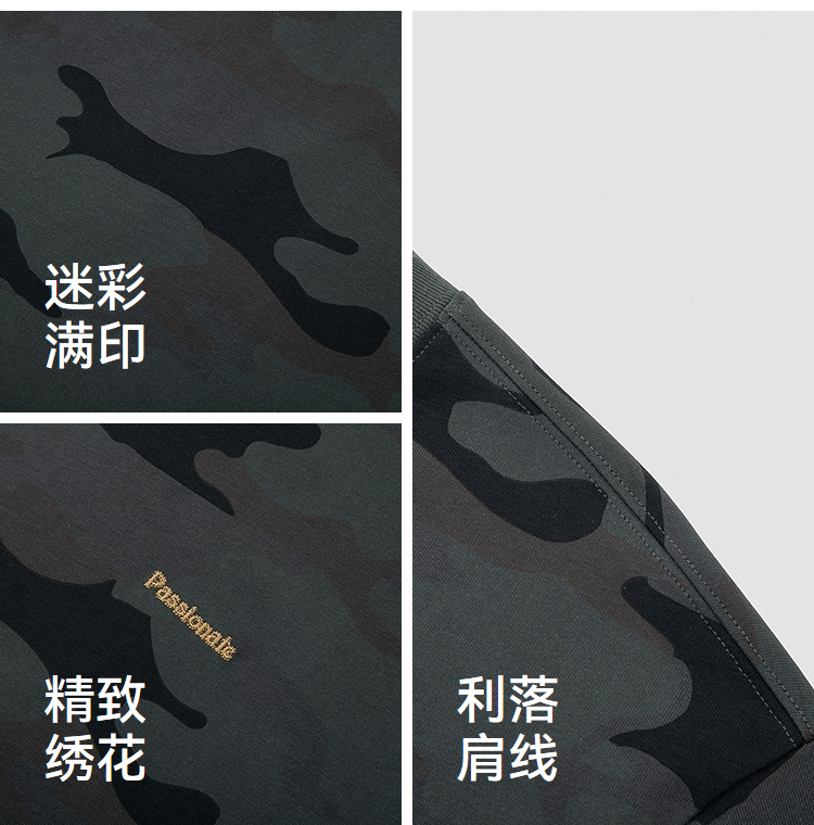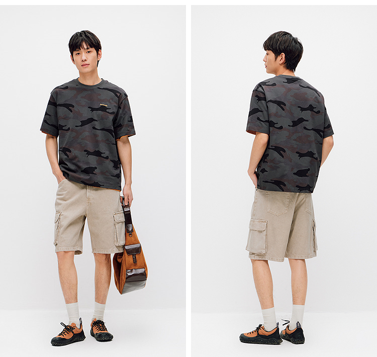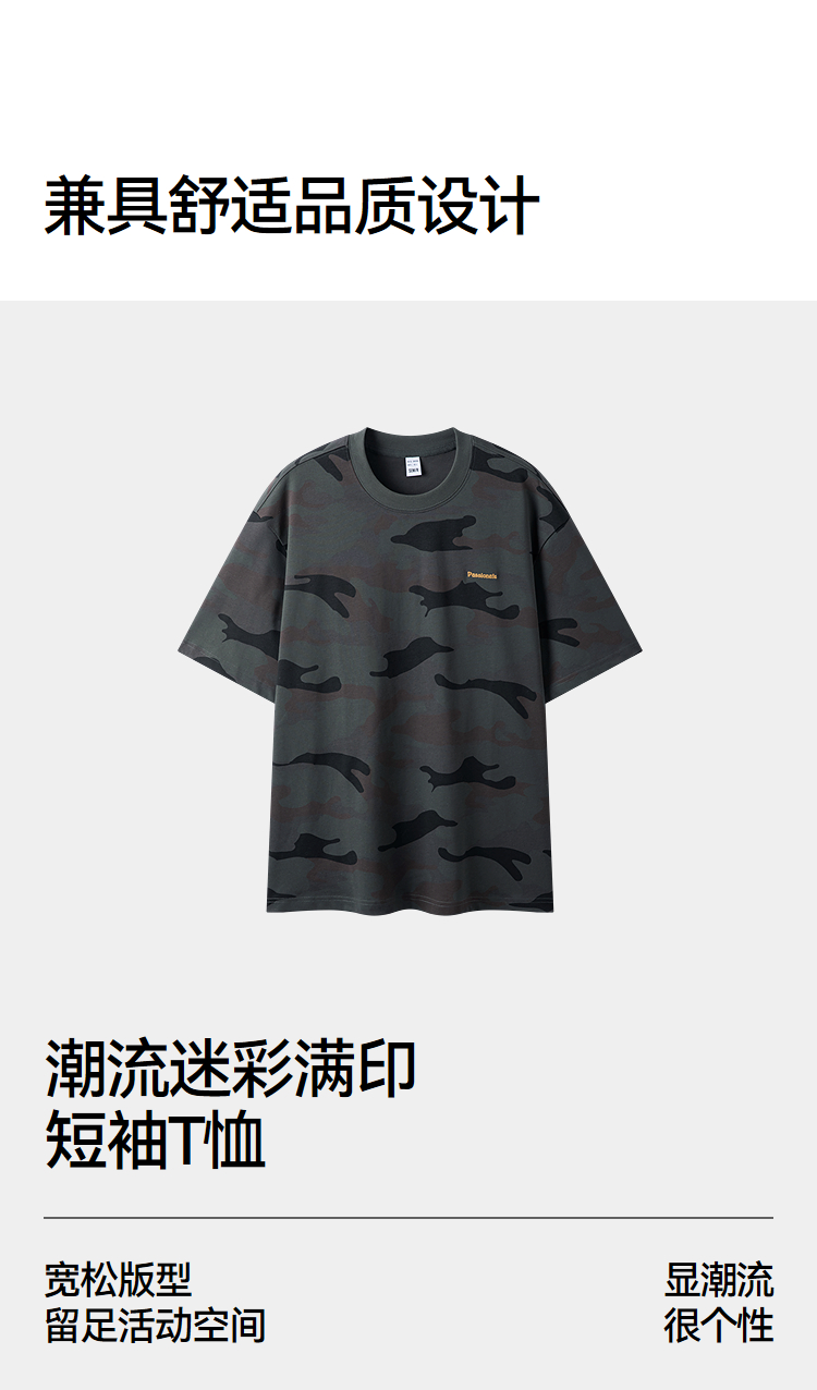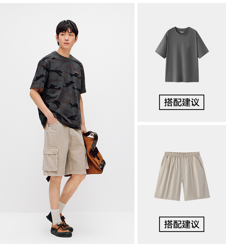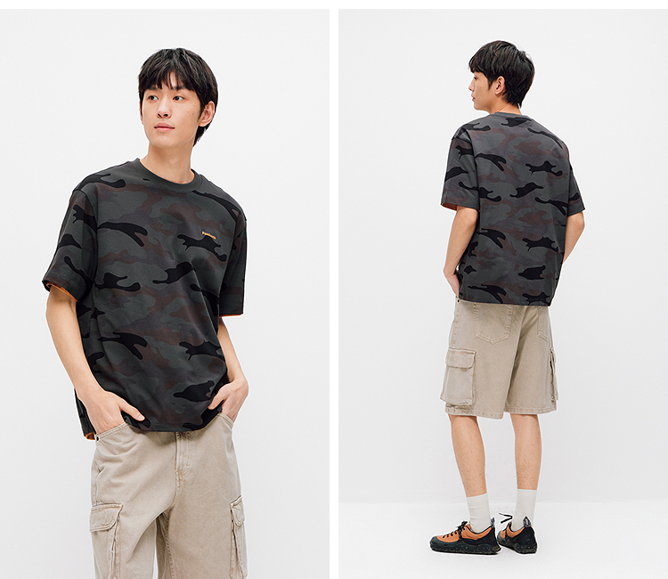 森马短袖T恤男夏季潮流迷彩满印针织衫2026新款纯棉撞色绣花上衣
