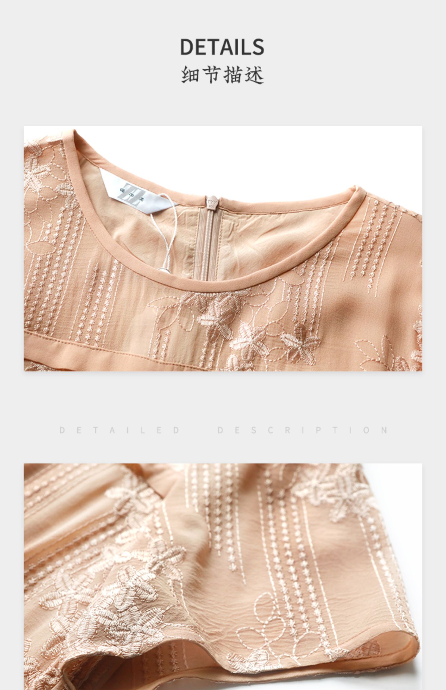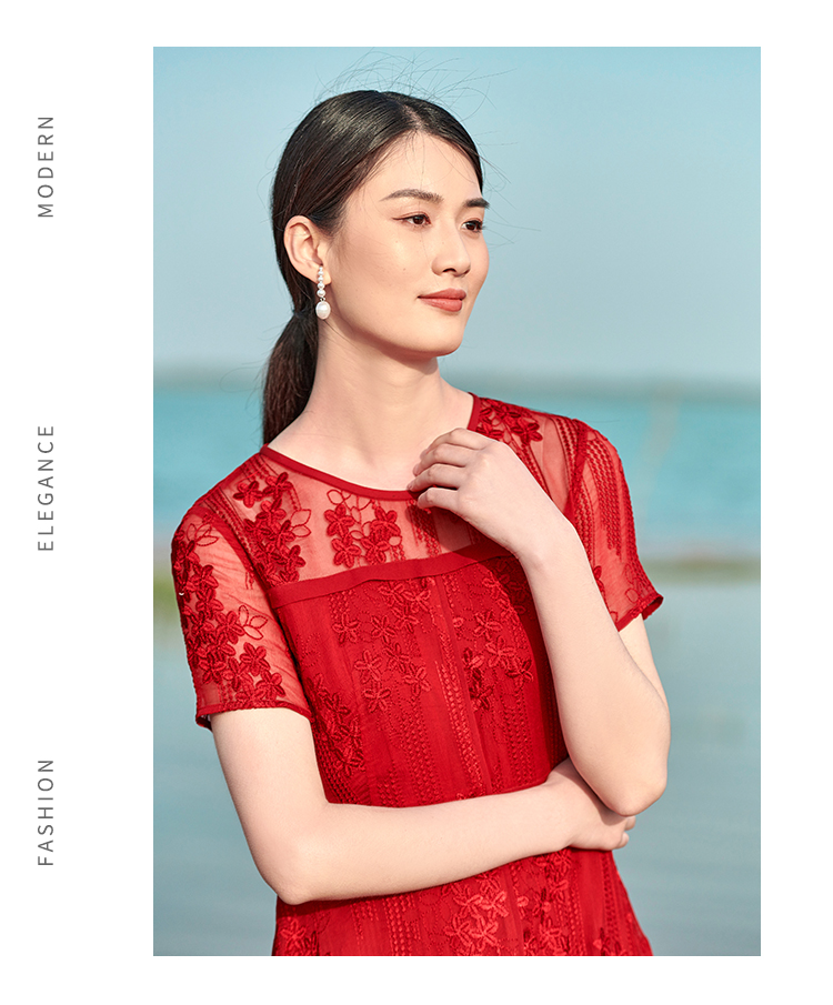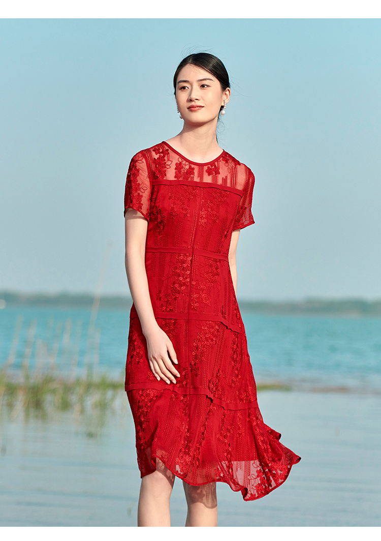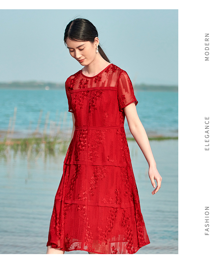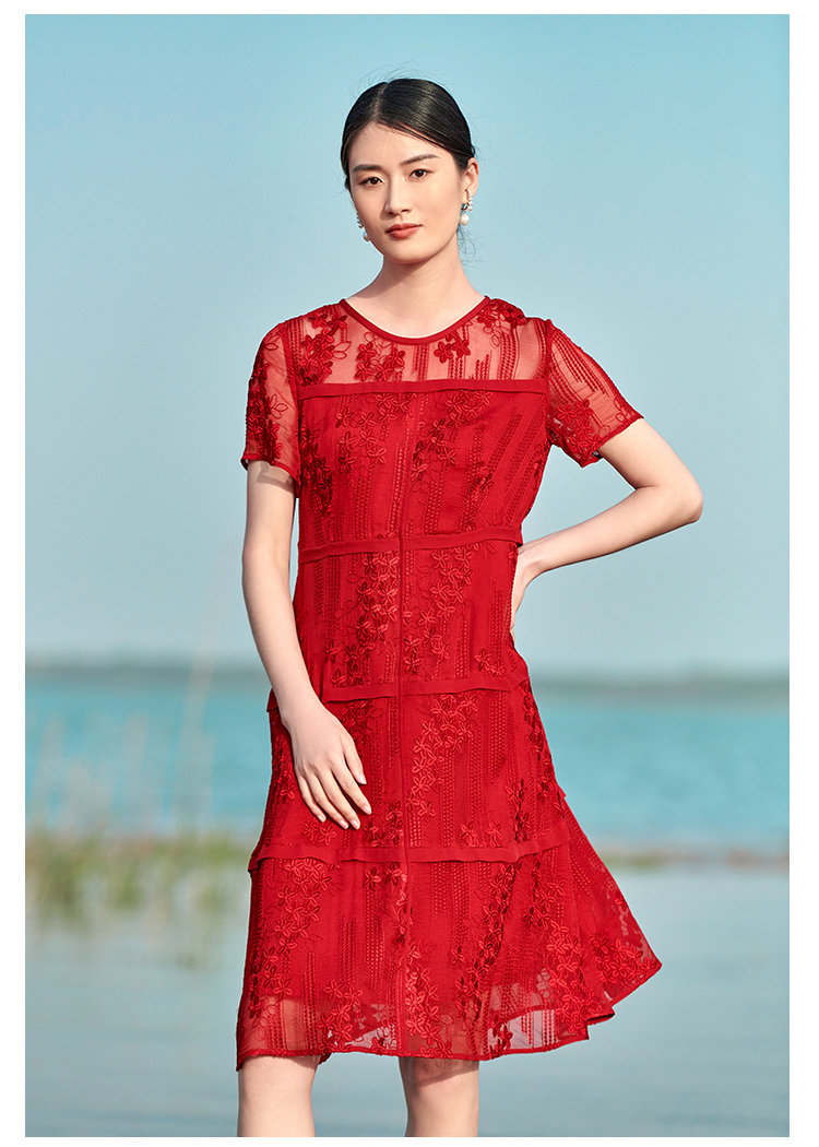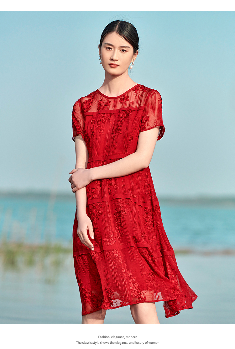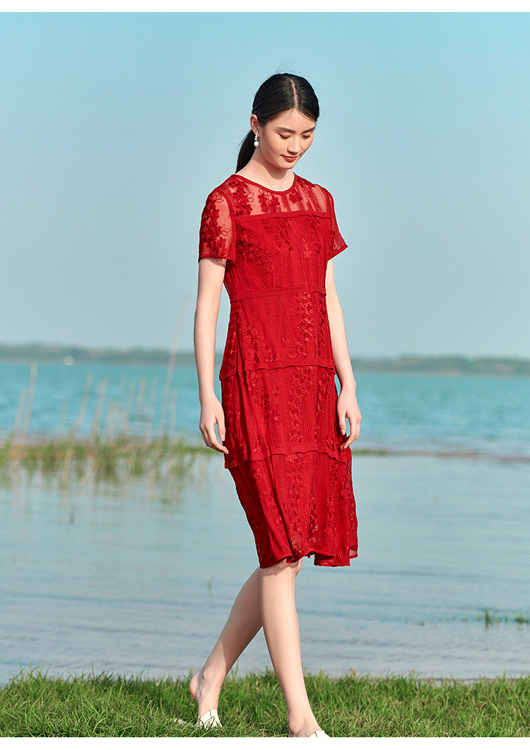 佐尔美夏季新款 桑蚕丝真丝乔其绣花连衣裙女E22LS78