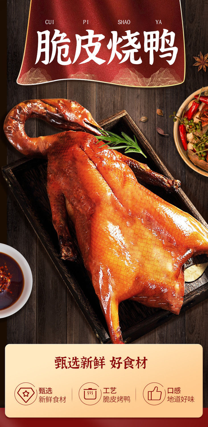 【困妈专属】喜辉广式深井烧鸭 脆皮烧鸭美味可口 1.3kg/只