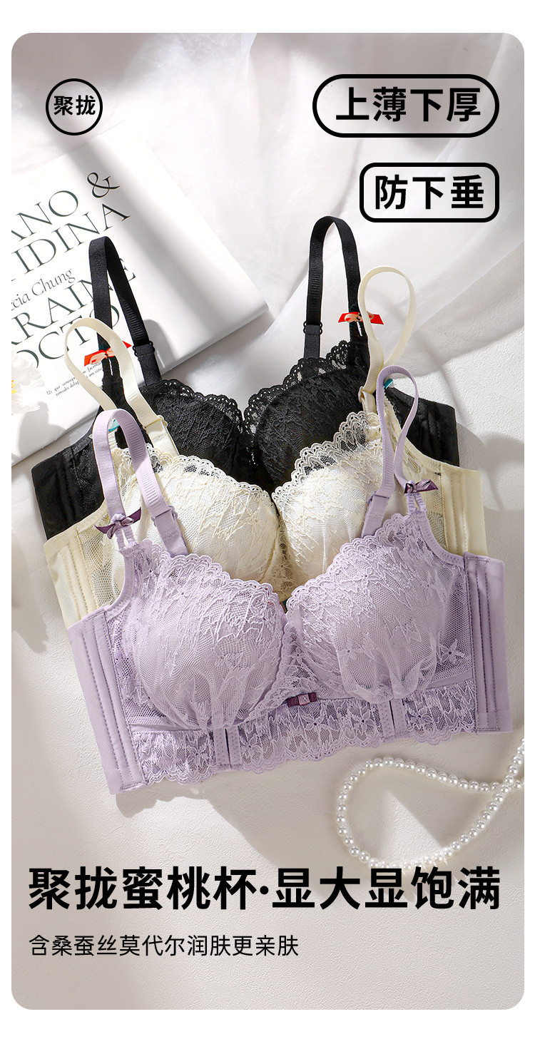 蜜糖甜梦 文胸(VIP)【莫代尔桑蚕丝杯 小胸聚拢】性感蕾丝聚拢收副乳调整型文胸