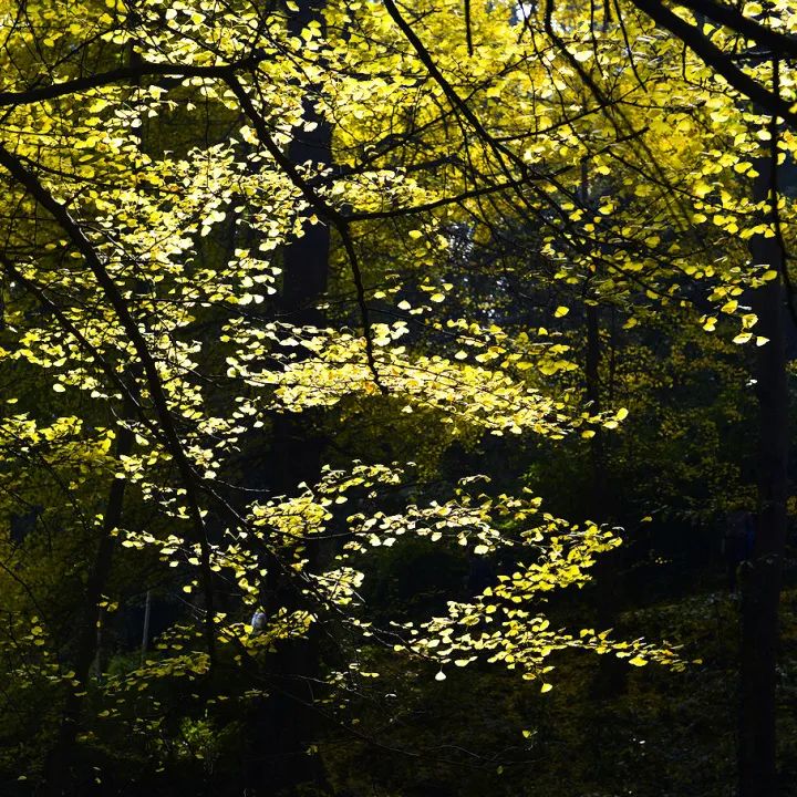 葛仙山的银杏已进入最佳观赏期,一袭华美的黄袍,袂裾飘逸,风姿绰约,灿然灼目。王者之气,咄咄逼人;行人凝目,无不神摇意夺。而遥瞻银杏,恰似一团金色的云霭栖息在晴宇之下,霞光散逸,仙气冉冉。
