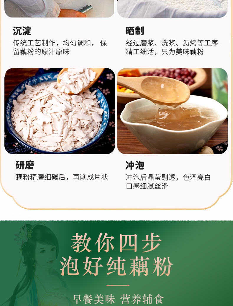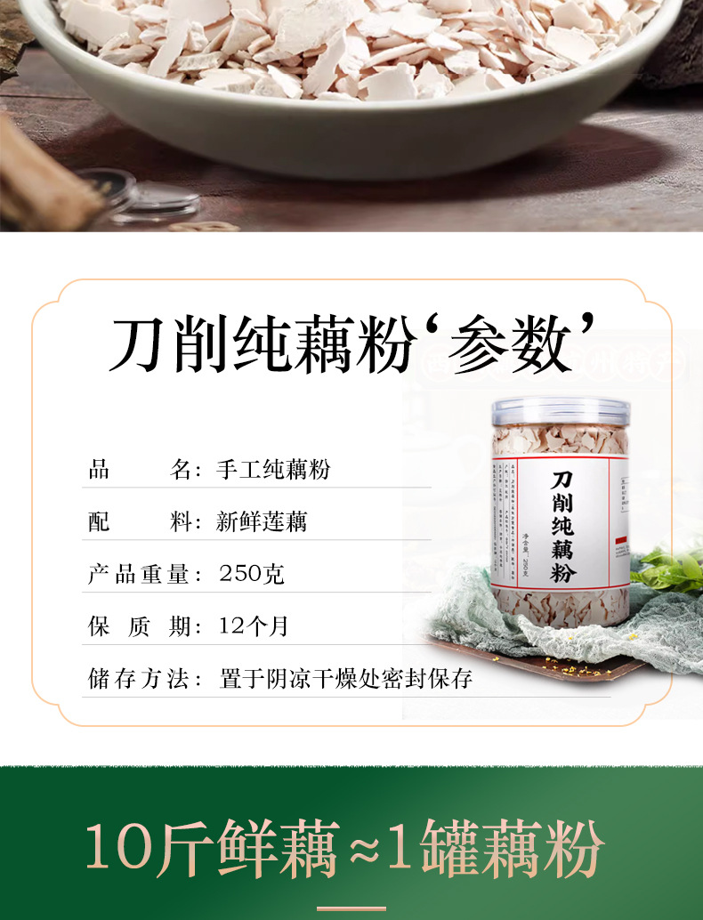 【天然食材用心选好藕,手削藕粉】形薄如雪手削藕粉,10斤鲜藕出一斤藕粉,健康即食冲调速食代餐。原味洪湖藕粉手工刀削纯藕粉250g罐装QQ
