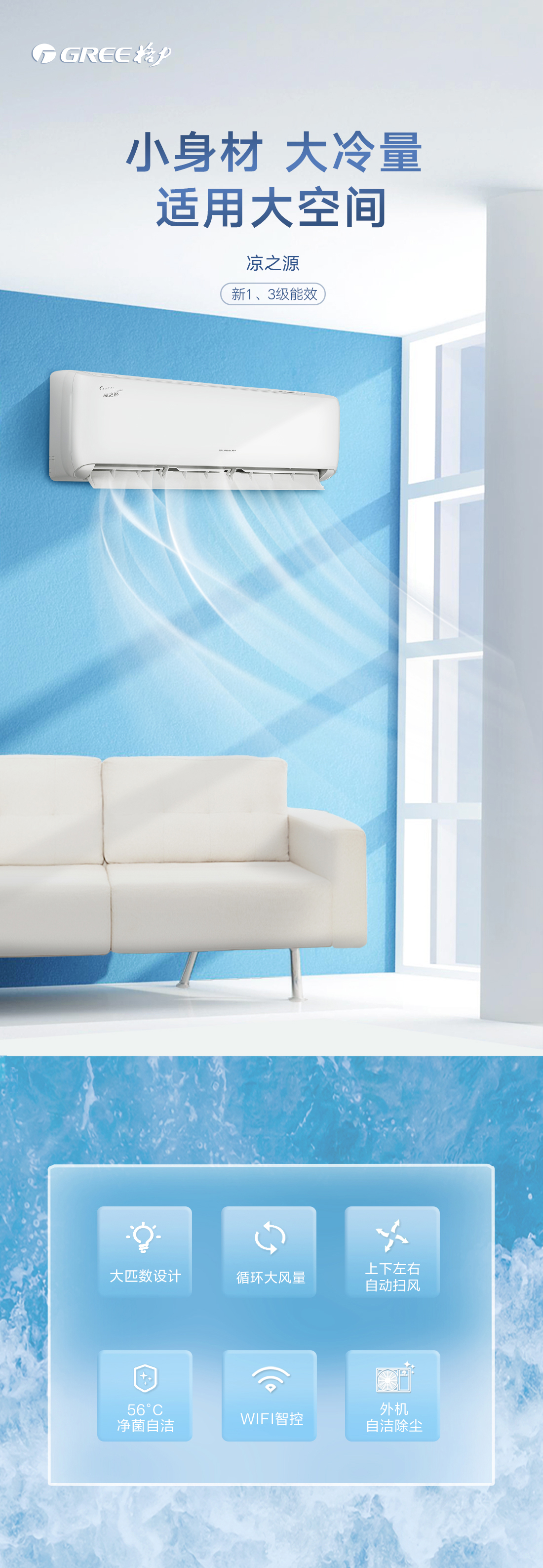 格力(101048)挂机空调2匹凉之源一级能效变频冷暖除湿WIFI商居两用壁挂空调 KFR-50GW/(50557)FNhAa-B1(WIFI) 2匹 一级能效