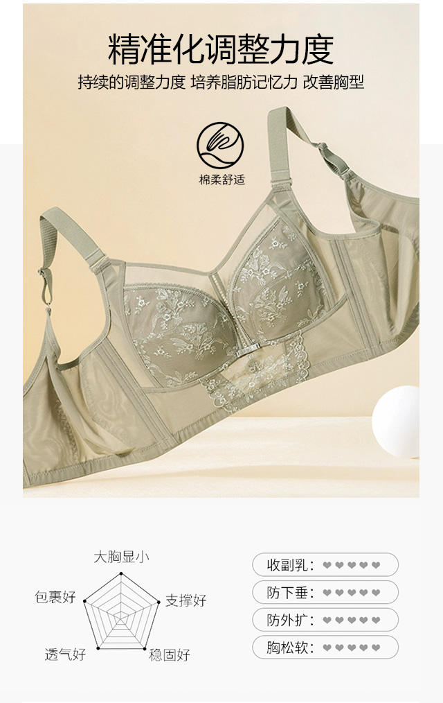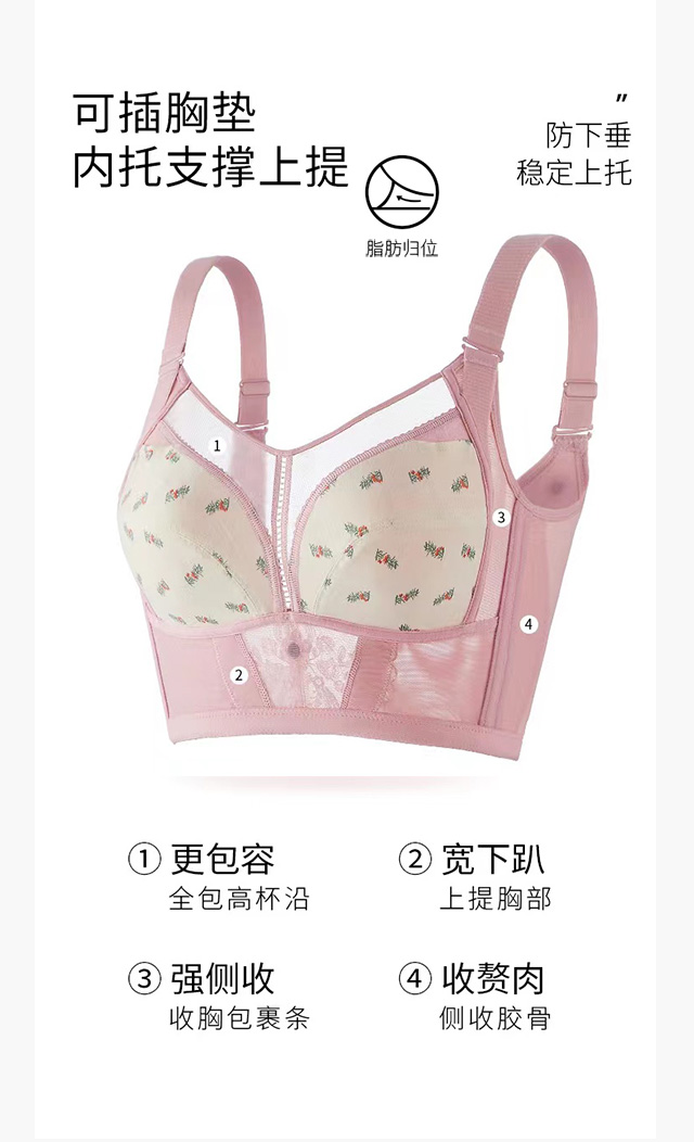 【断码秒杀】大胸显小 无钢圈 大胸大码全罩杯 薄防下垂 侧收副乳 恋恋风情调整型文胸