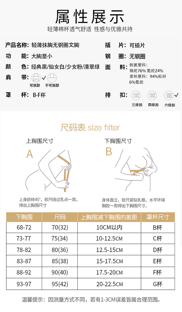 轻薄抹胸无钢托文胸