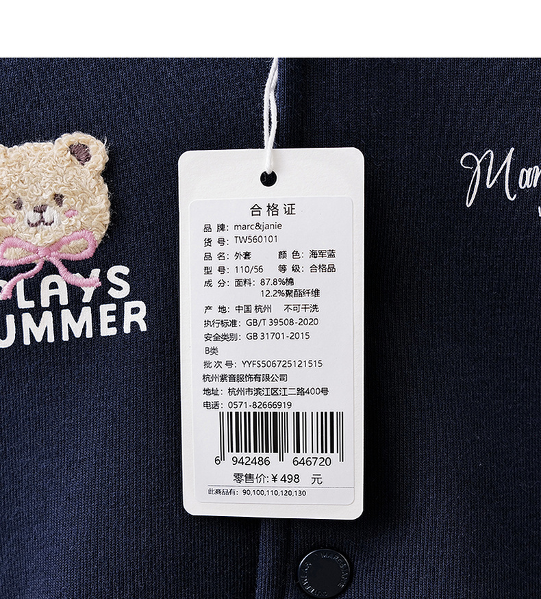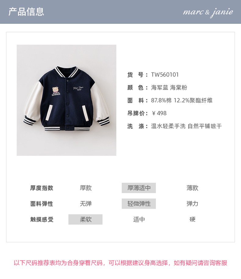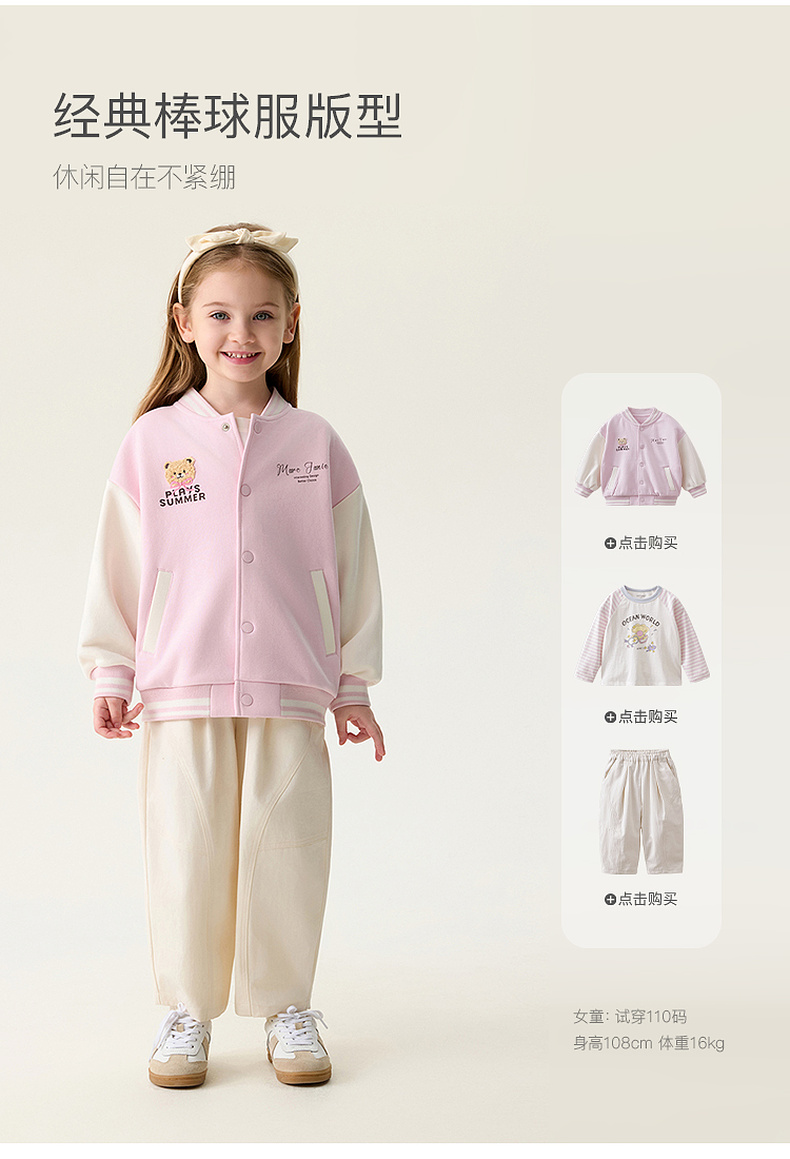 马克珍妮萌趣小熊女童棒球服外套2026年春装新款560101