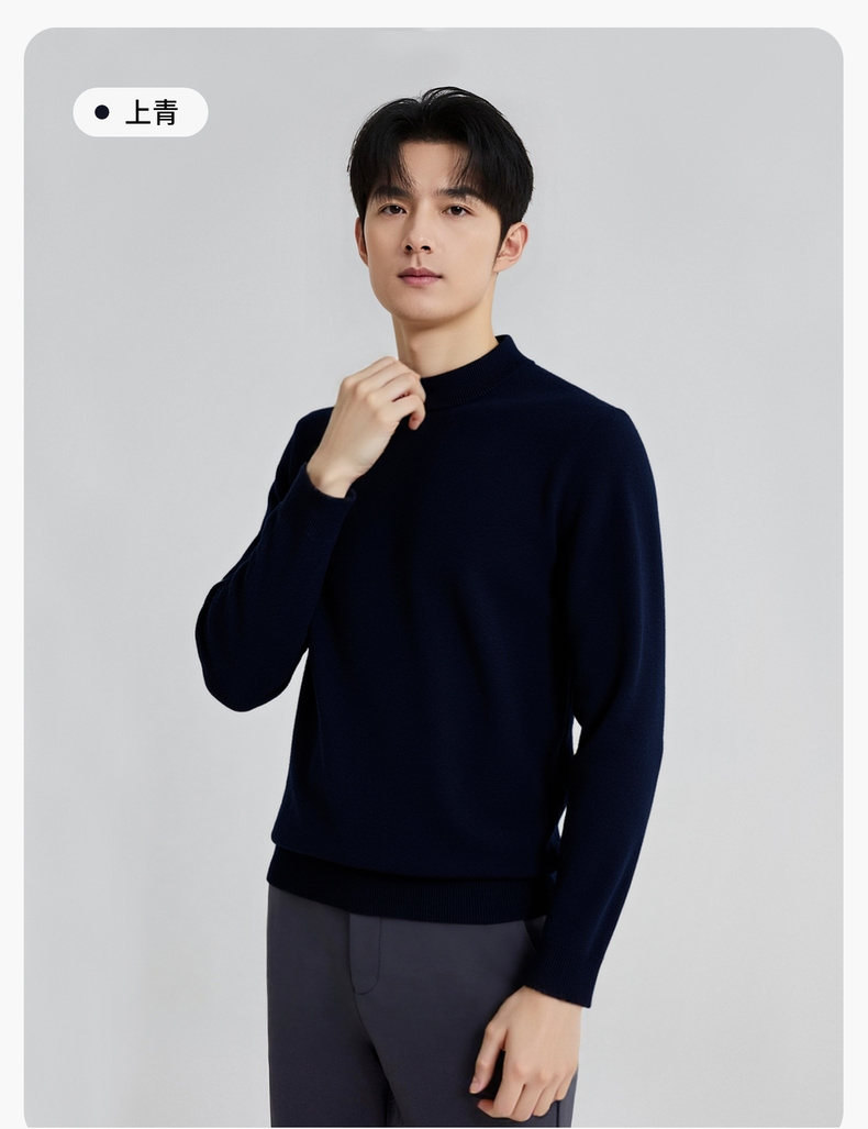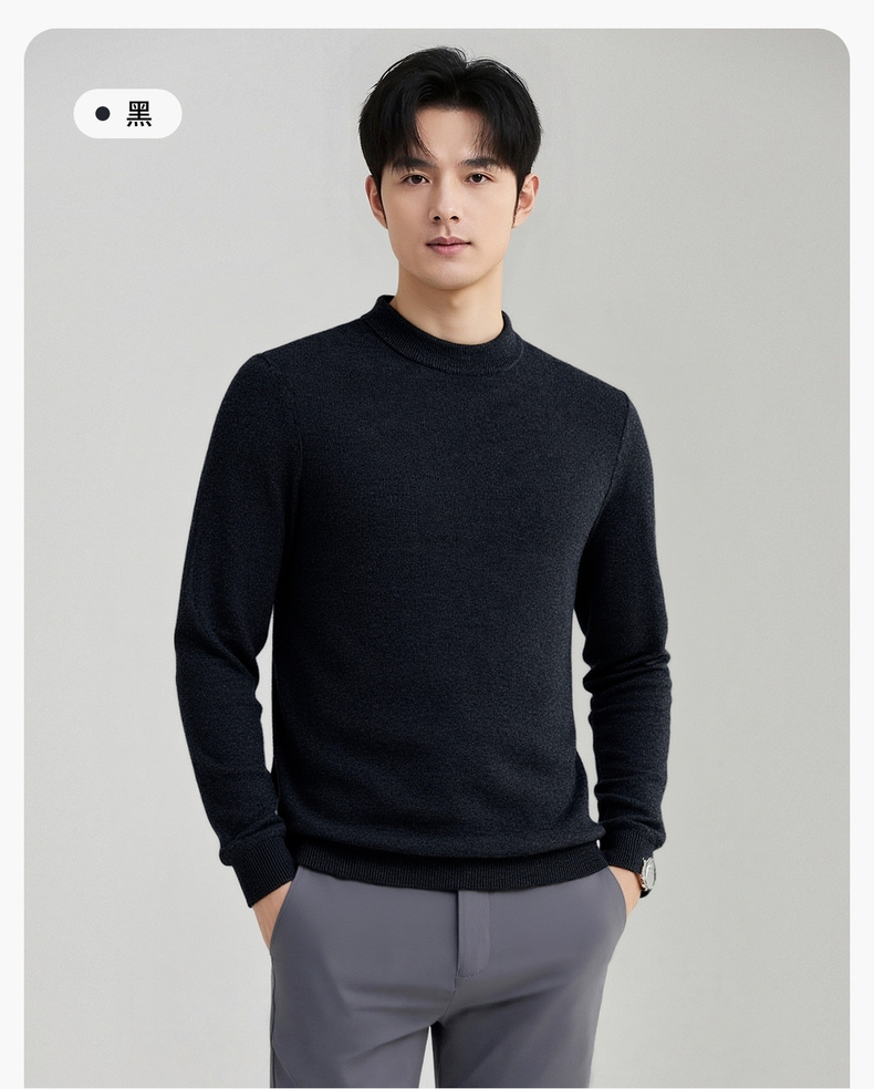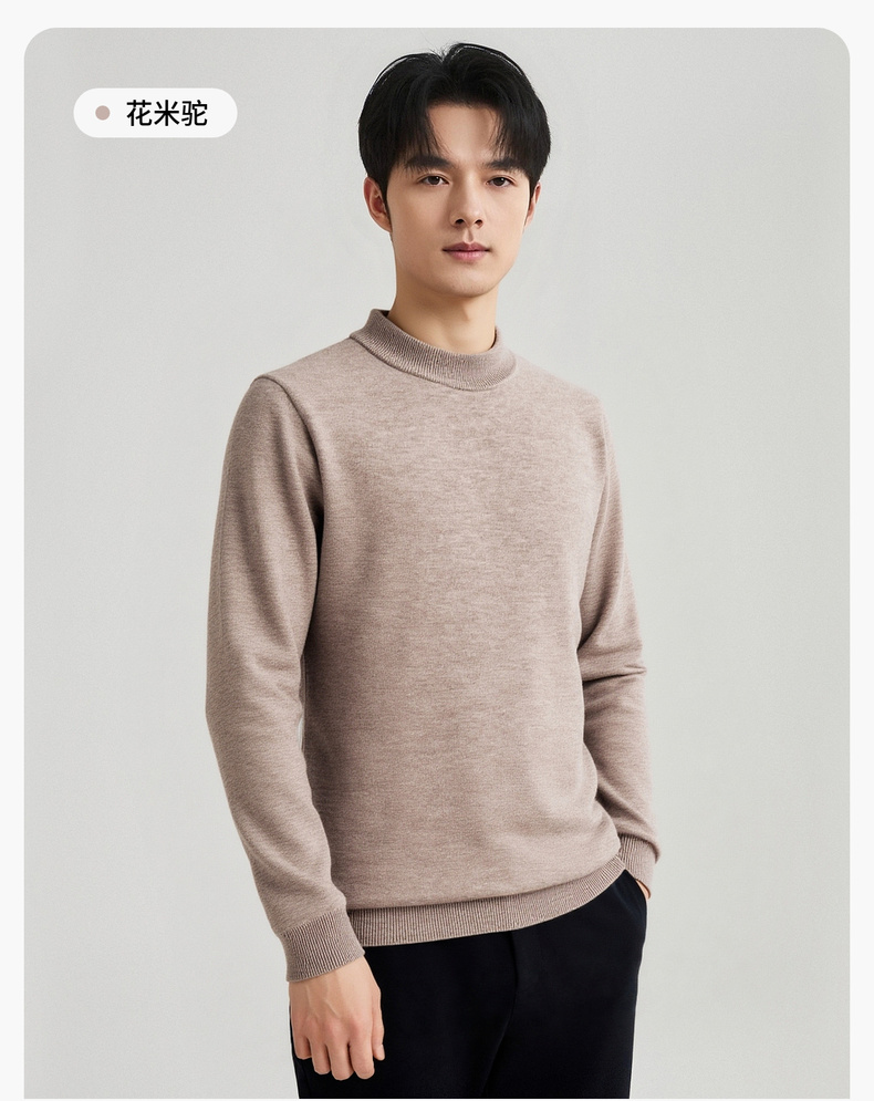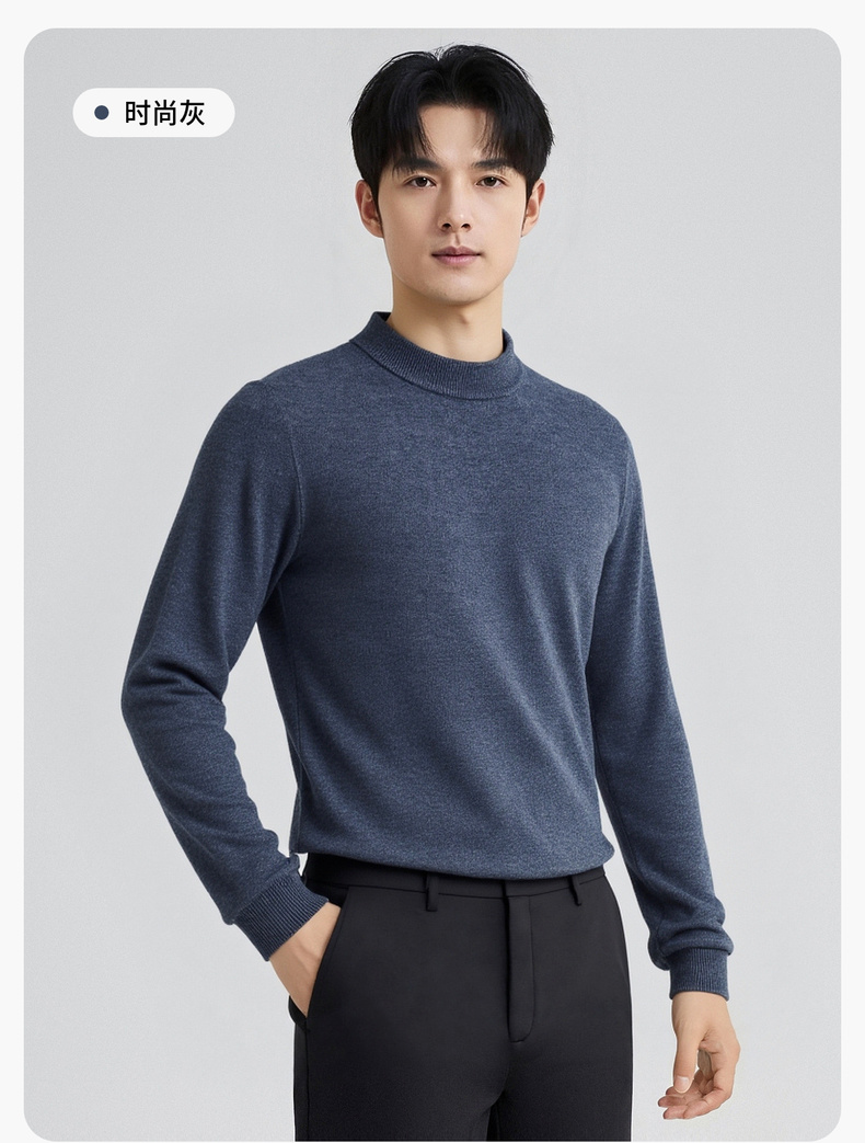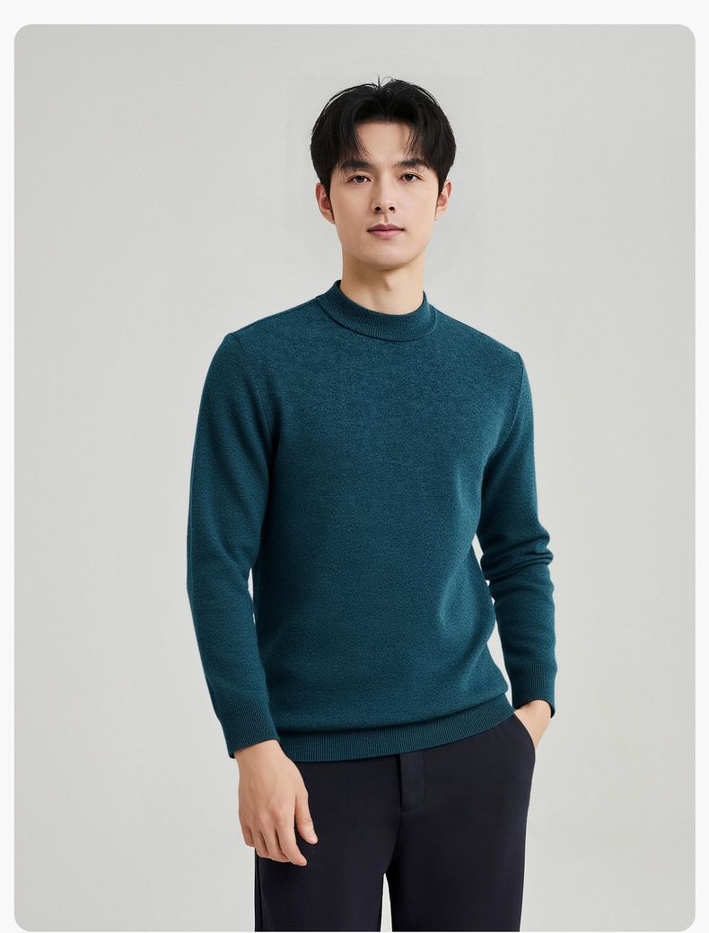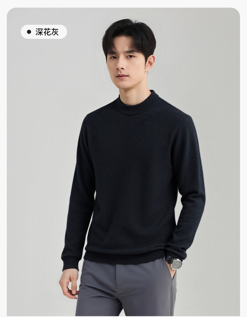 【含绵羊毛】圣得西男士亲肤柔软羊毛混纺高密针织衫2025秋季新款百搭舒适毛衣
