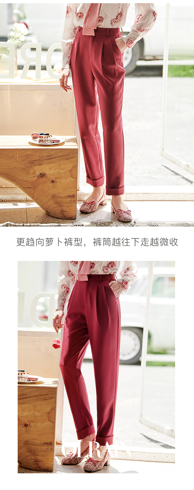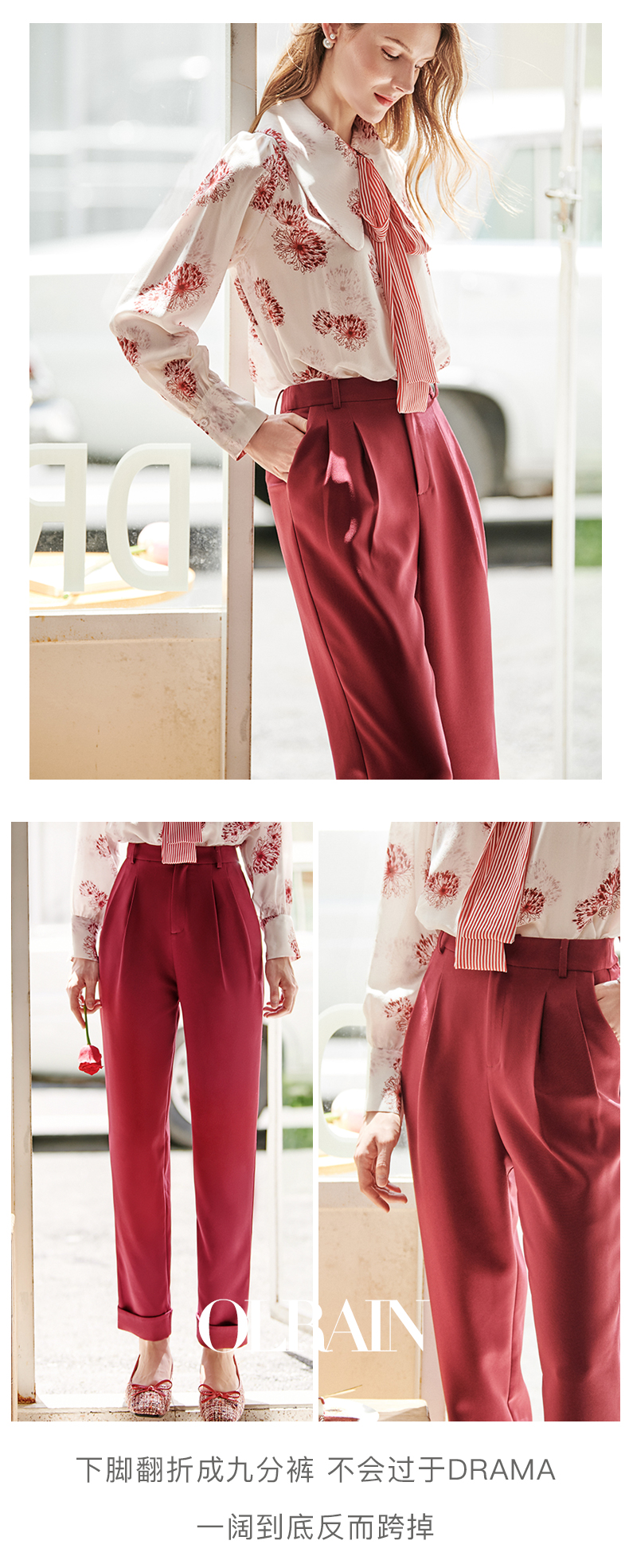 欧芮儿高腰锥形休闲裤女新款直筒宽松哈伦裤职业西裤