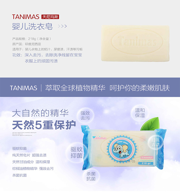 Tanimas(天尼玛斯)婴儿洗衣皂218g (两块)+女士内衣皂218g(两块)