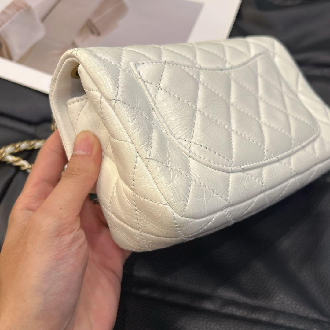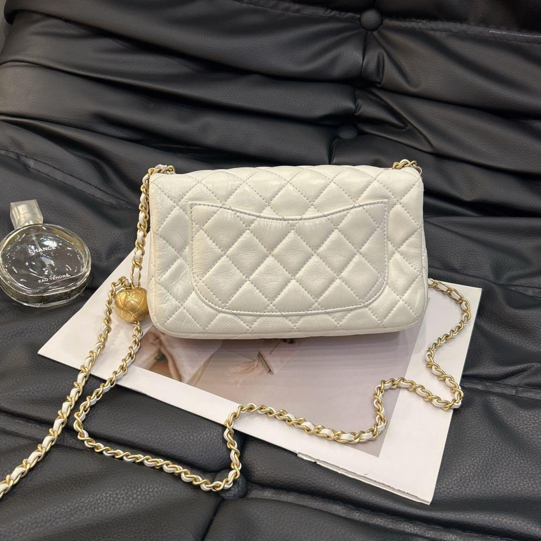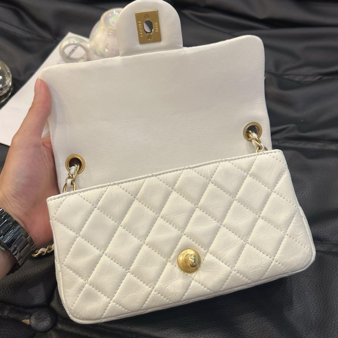 正品二手 Chanel 大mini 白色 金球 羊皮 斜挎包🧚🏻‍♀️95新 20×12 镭射30开。包身已保养 状态较好
