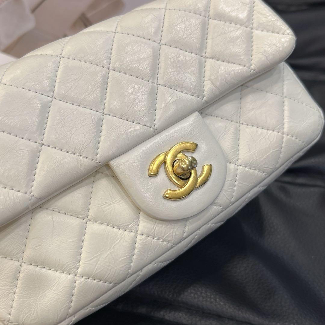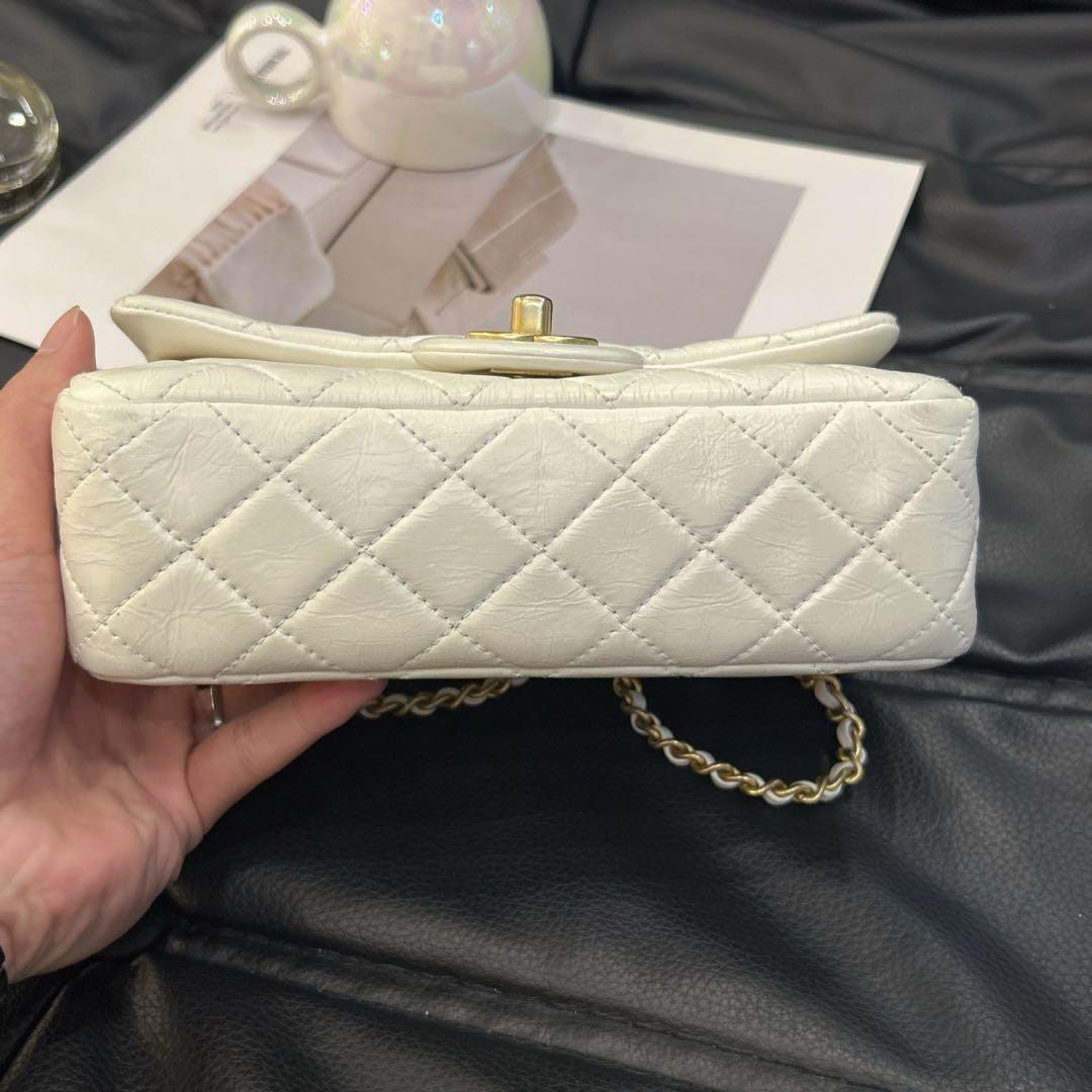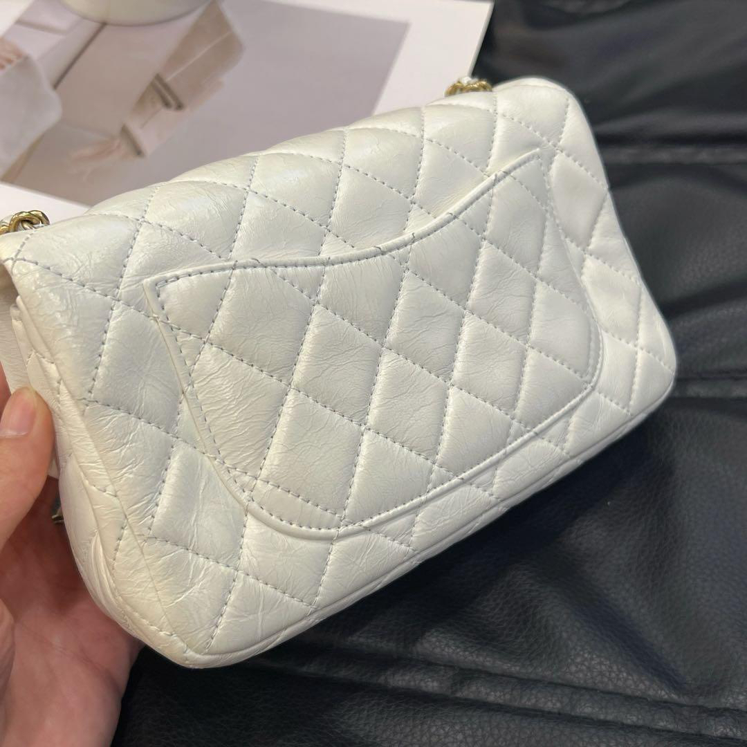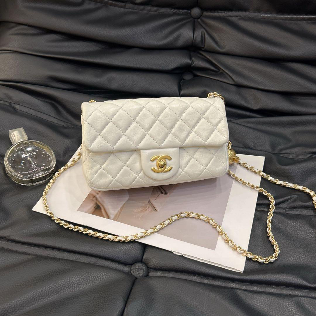 正品二手 Chanel 大mini 白色 金球 羊皮 斜挎包🧚🏻‍♀️95新 20×12 镭射30开。包身已保养 状态较好