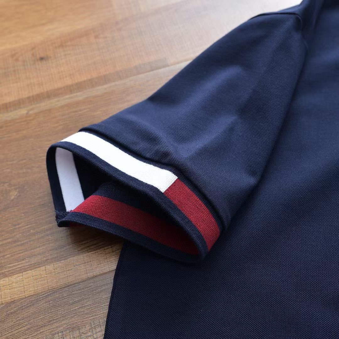 珠地网眼面料舒适透气,袖口撞色罗纹
