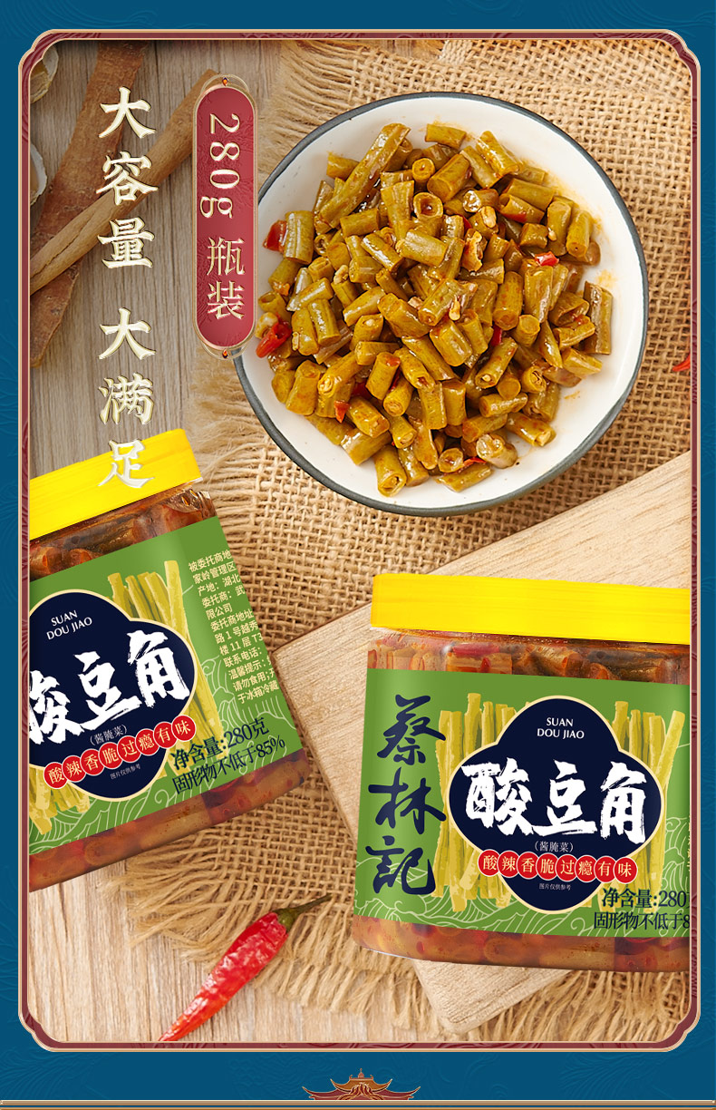 【29.9好物】蔡林记酸豆角萝卜干香辣木瓜丝下饭小菜瓶装280g/瓶