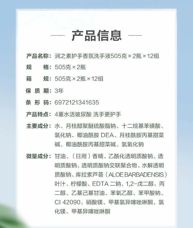 立白润之素洗手液505g*2瓶 家用滋润泡沫丰富