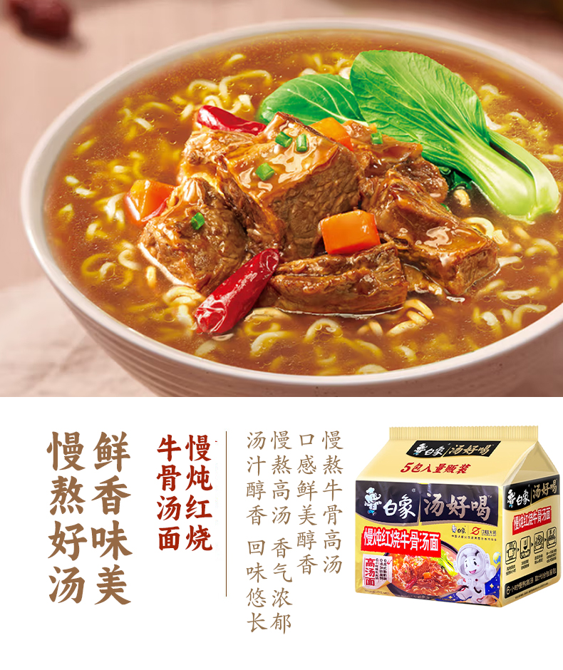 白象汤好喝金汤肥牛I 辣牛肉肉汤面I羊肉汤面I慢炖红烧牛骨汤面I老母鸡汤面I 115-110g*5