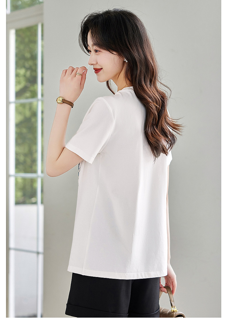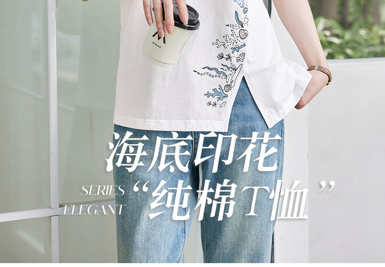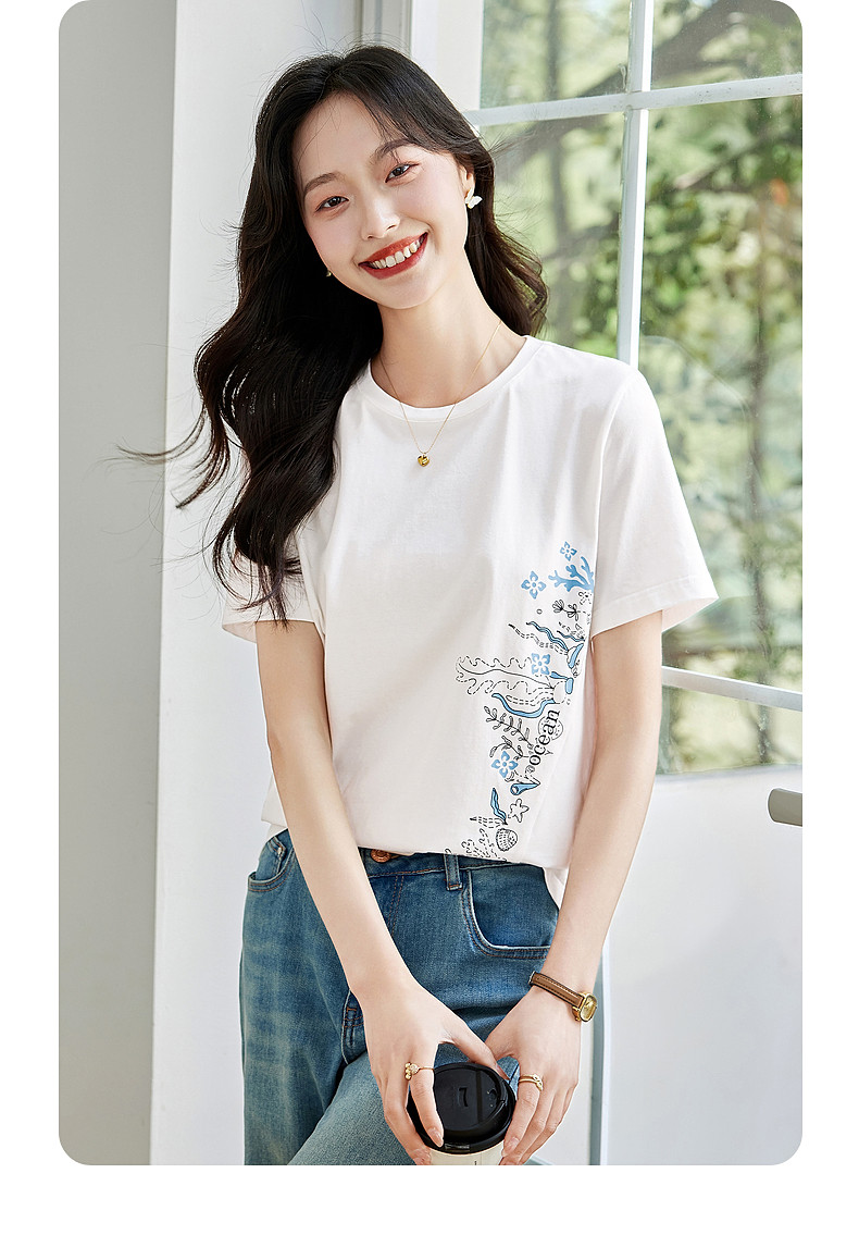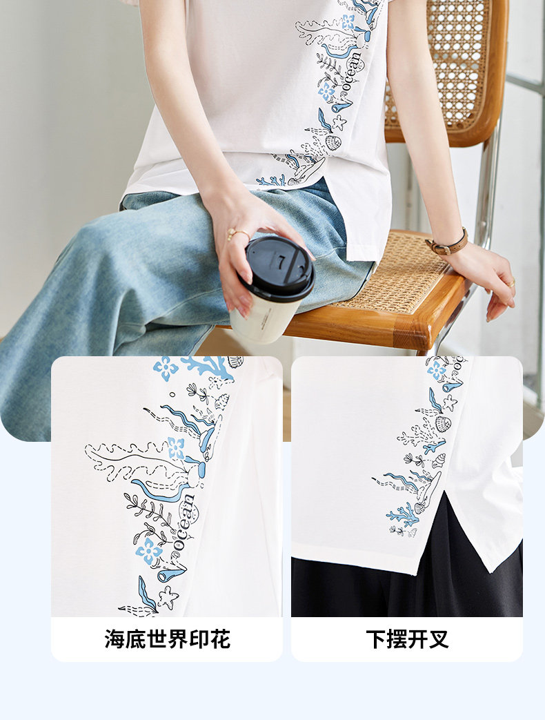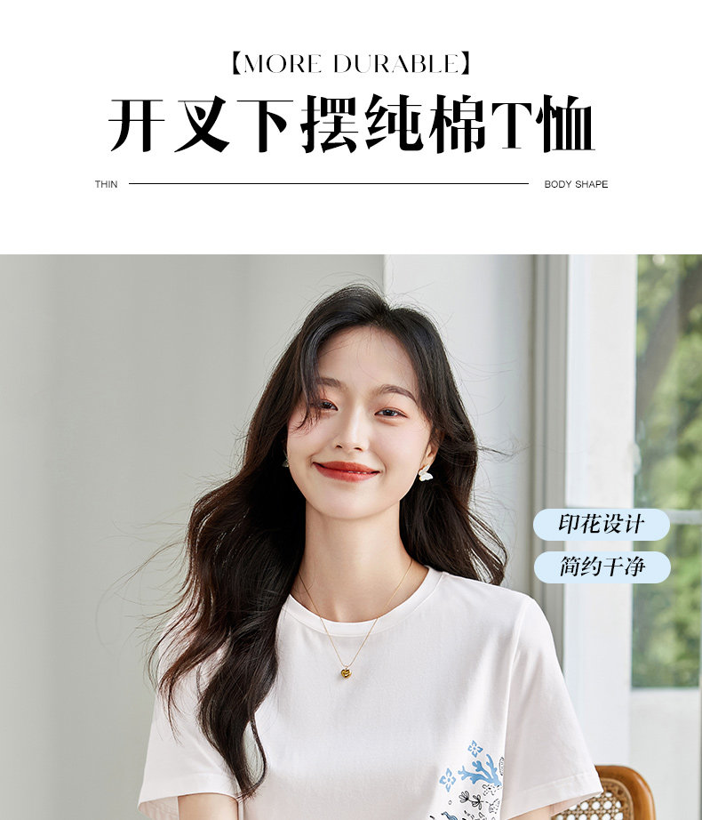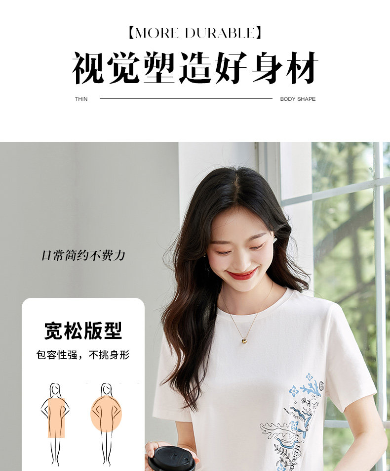 芳妮诗纯棉短袖T恤女2026年夏季新款大码女装中长款白色宽松上衣