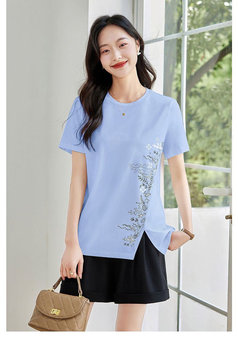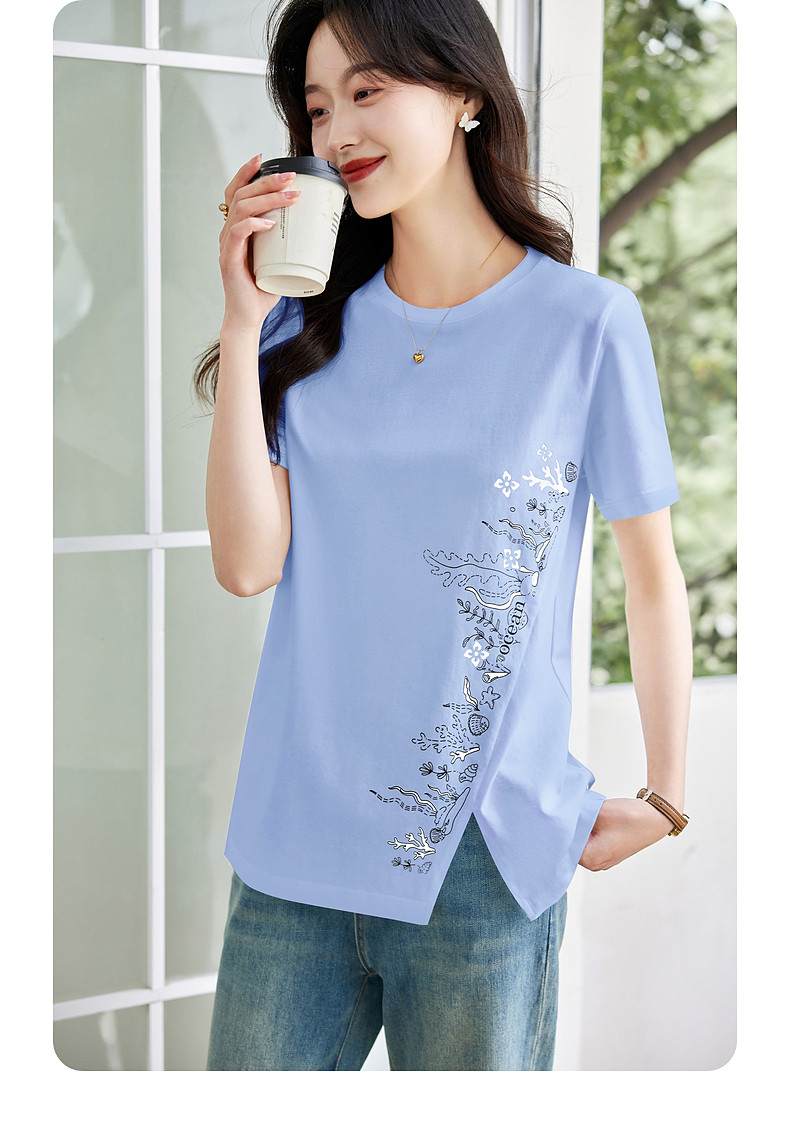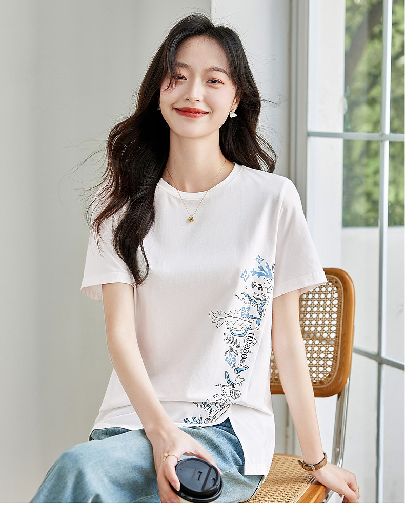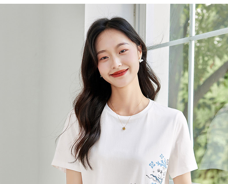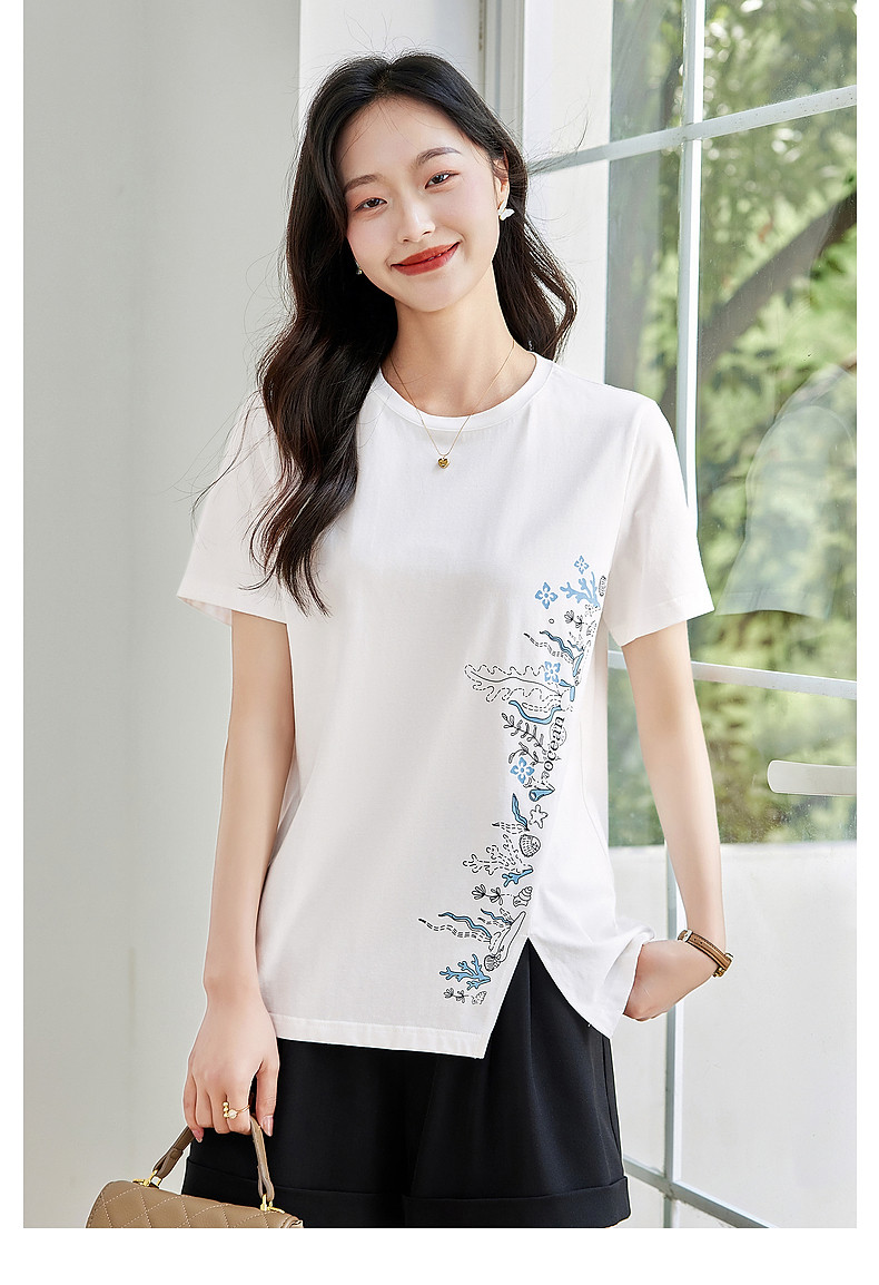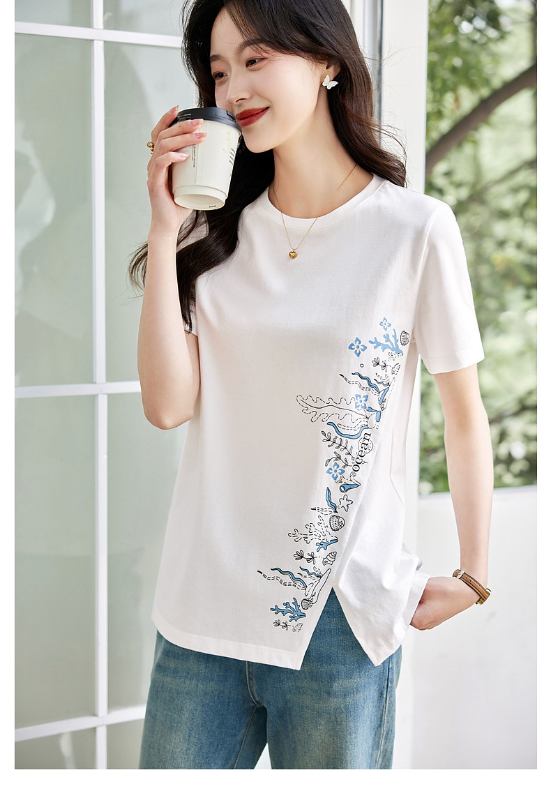 芳妮诗纯棉短袖T恤女2026年夏季新款大码女装中长款白色宽松上衣