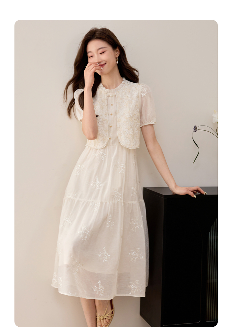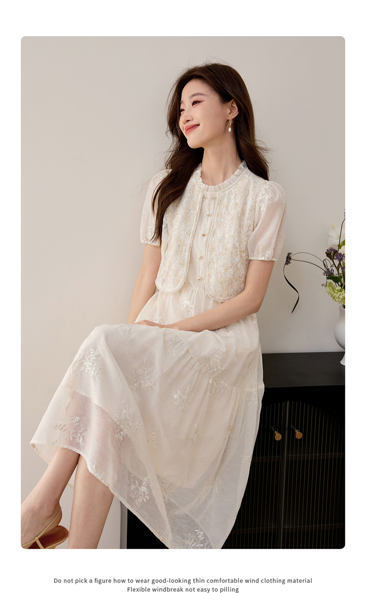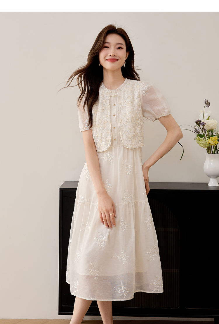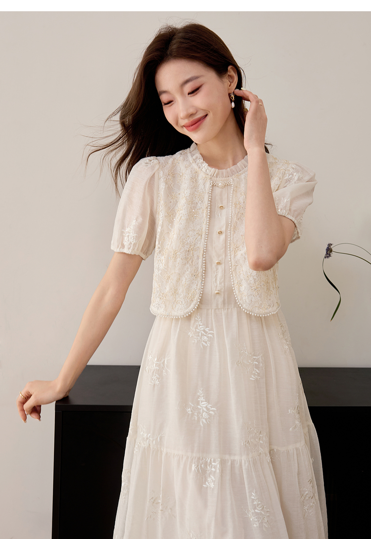 【专属特价】熙世界假两件套国风蕾丝小上衣拼接刺绣连衣裙仙女裙子2025夏款