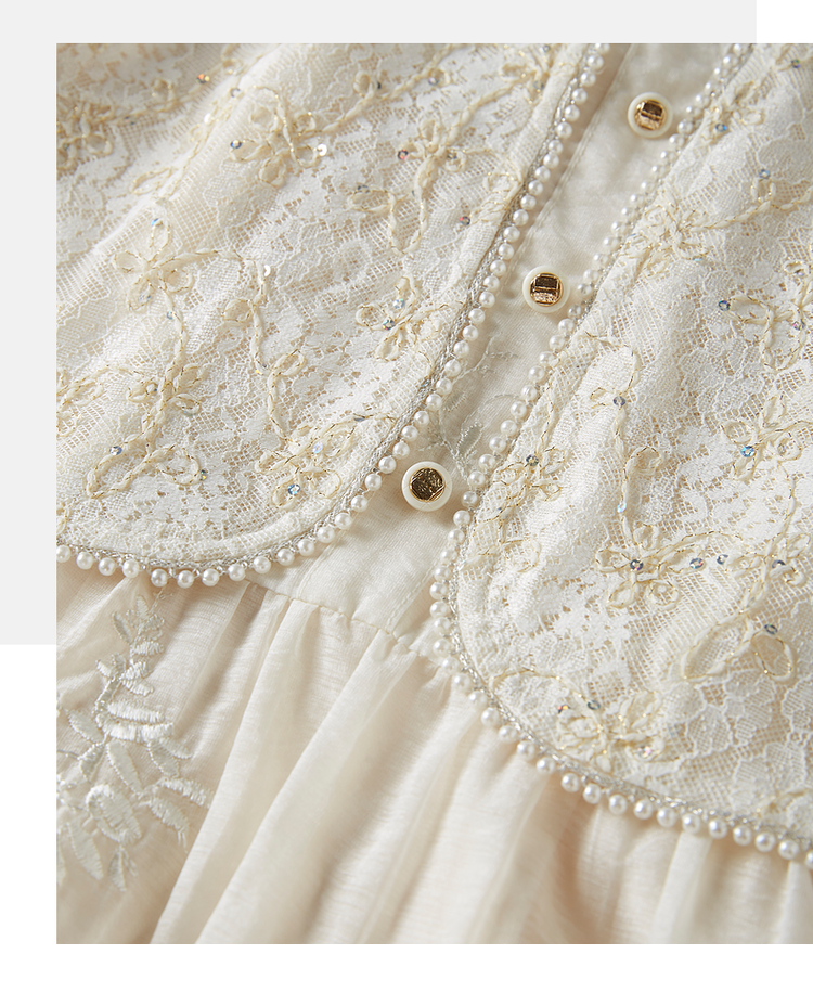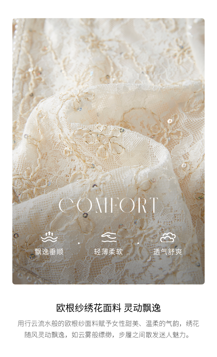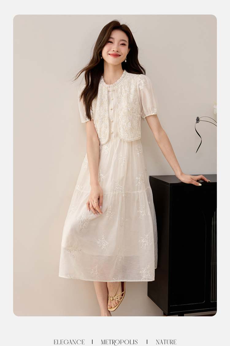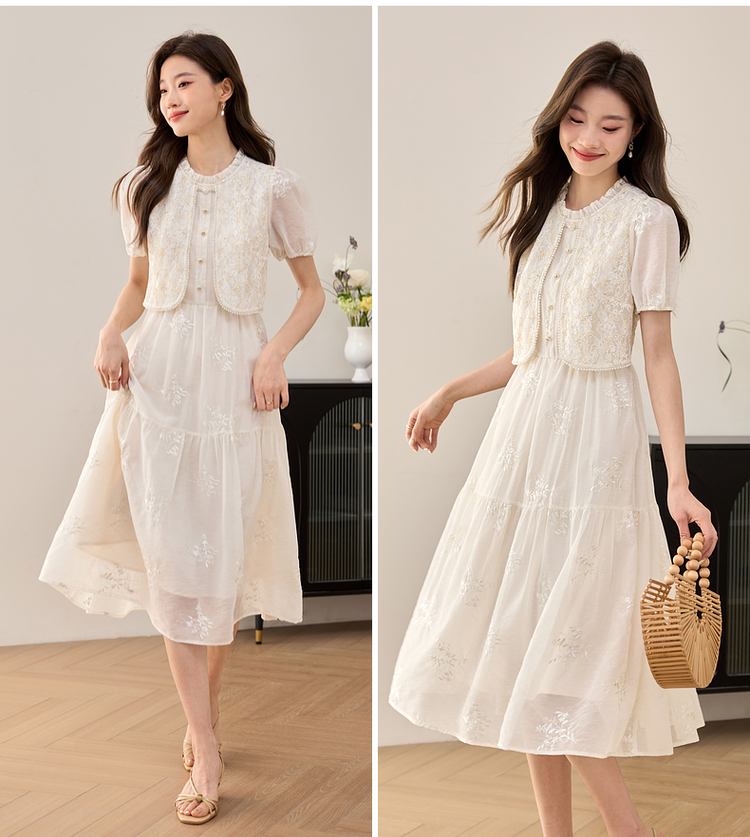 【专属特价】熙世界假两件套国风蕾丝小上衣拼接刺绣连衣裙仙女裙子2025夏款