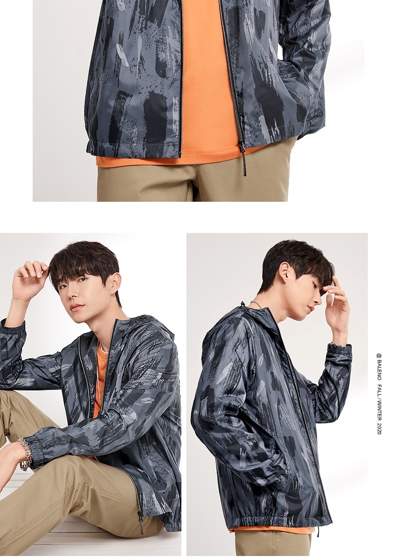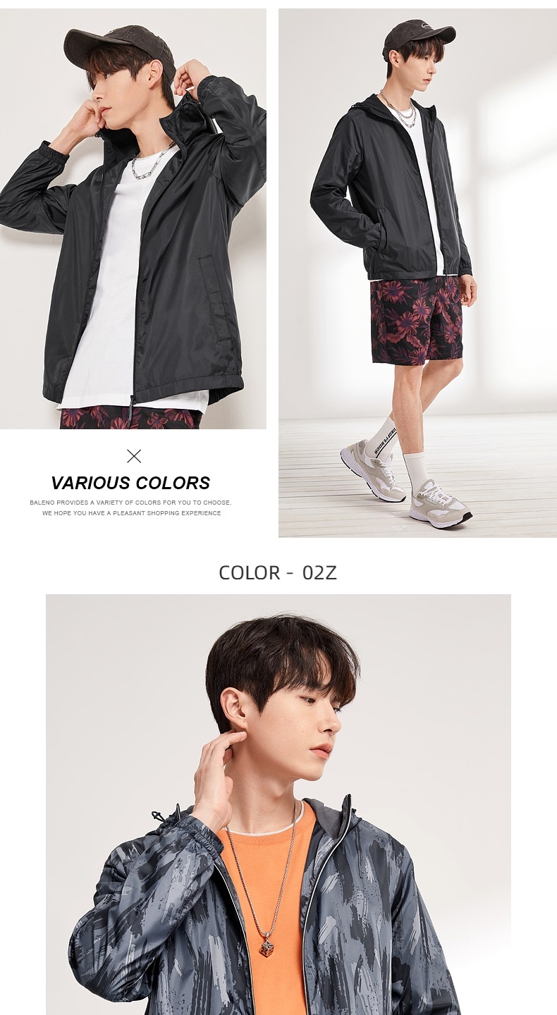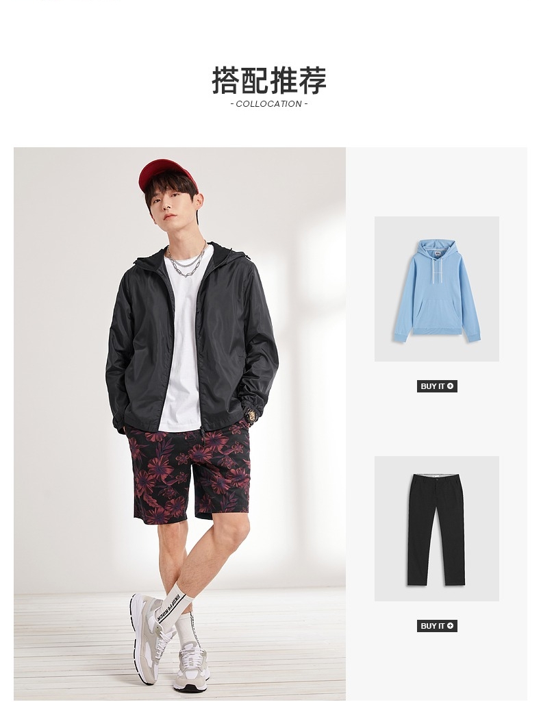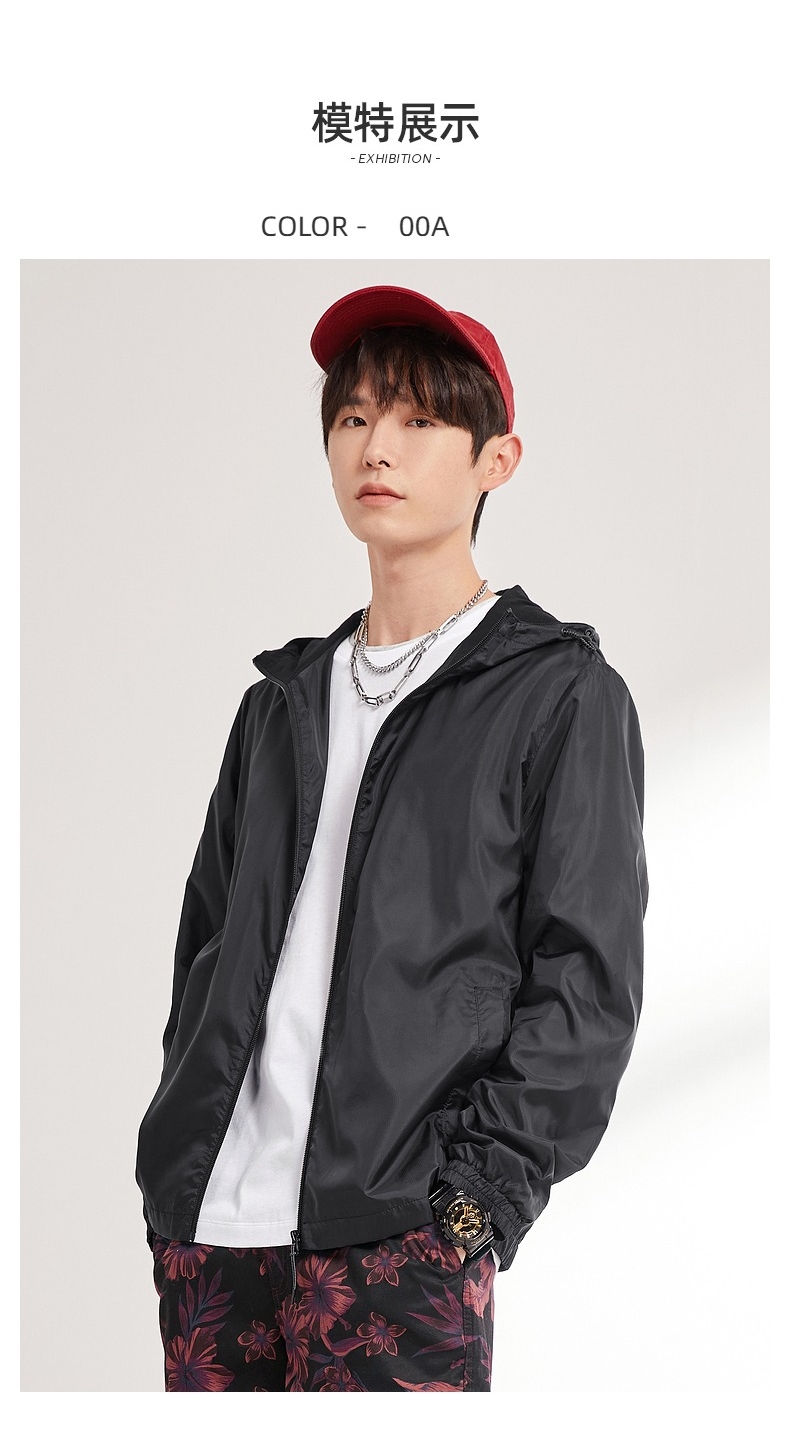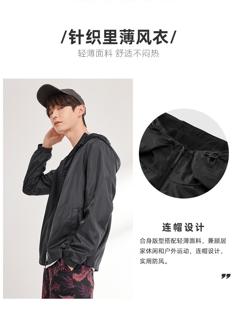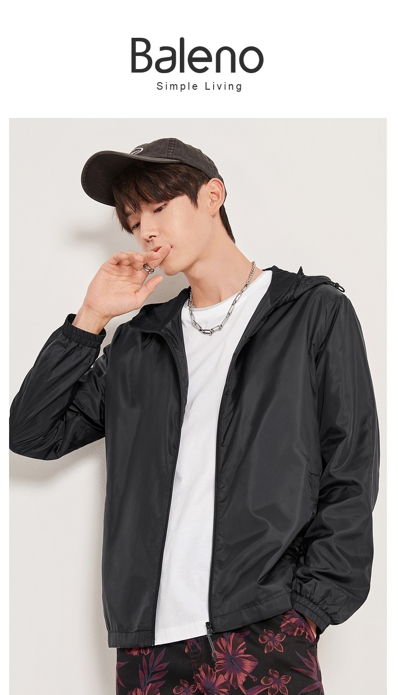 班尼路春季新款 运动外套男 轻薄透气户外休闲纯色连帽梭织风衣