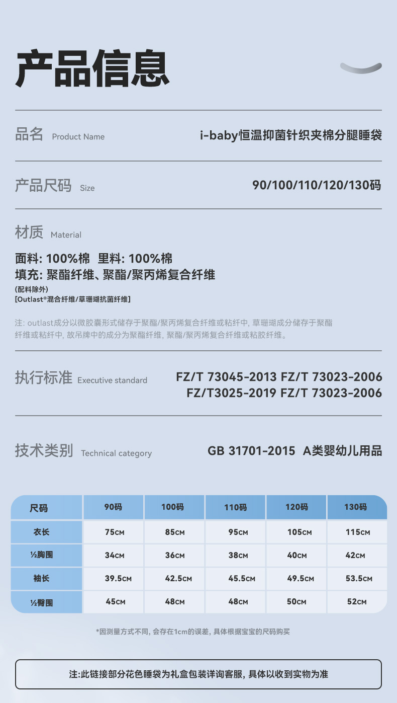 i-baby恒温睡袋 宝宝防踢被婴幼儿四季通用分腿睡衣儿童家居服秋冬