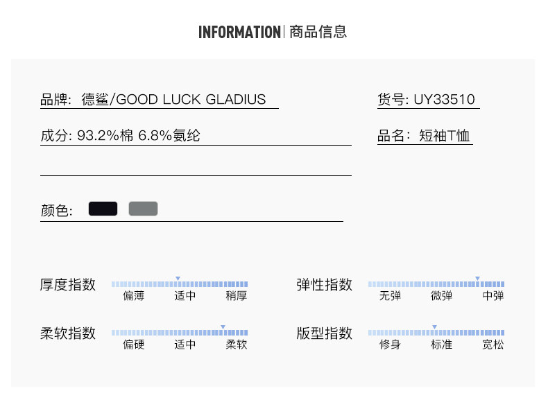 GOOD LUCK GLADIUS品牌由“浙江德鲨服饰有限公司”引进中国市场,经过多年发展,凭借完善的终端形象,规范化的销售管理,迅速赢得消费者的认可,引领国内消费流行,是成功人士首选男装品牌。