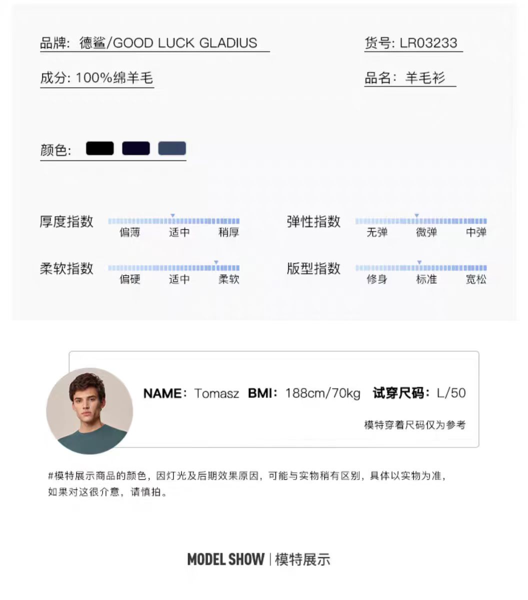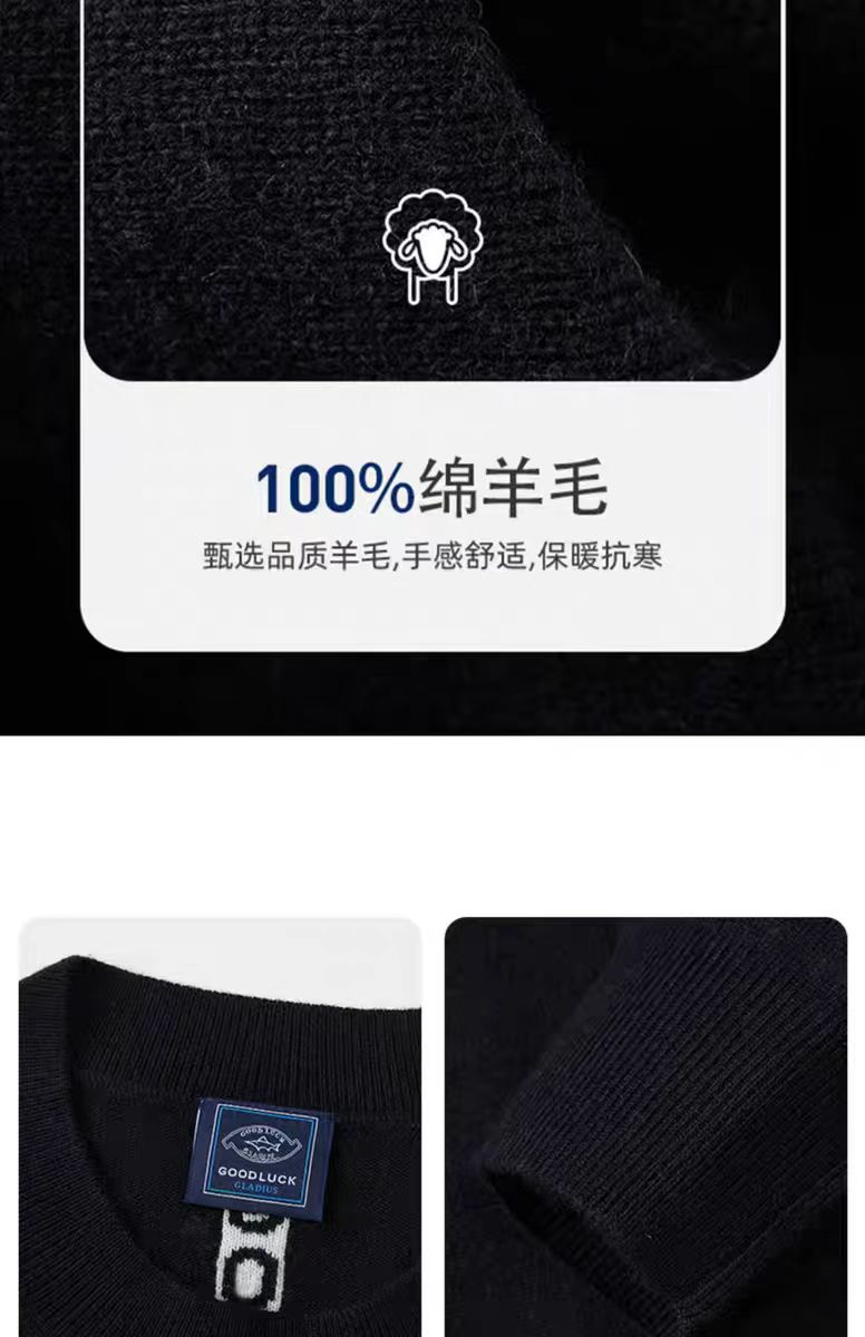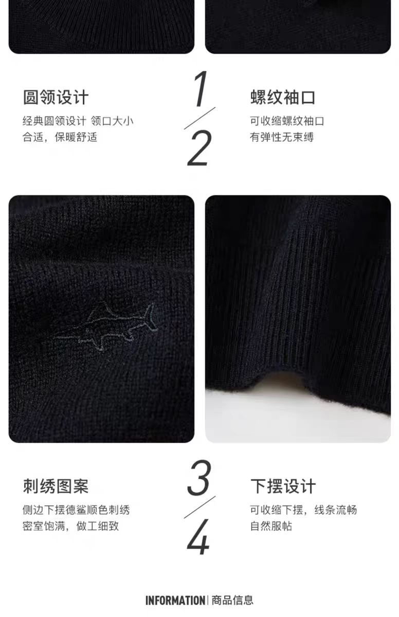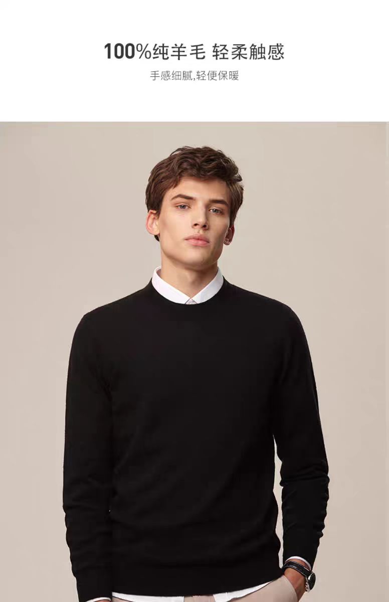 德鲨24秋冬新品纯色100羊毛圆领针织衫 时尚基础打底衫LR03233