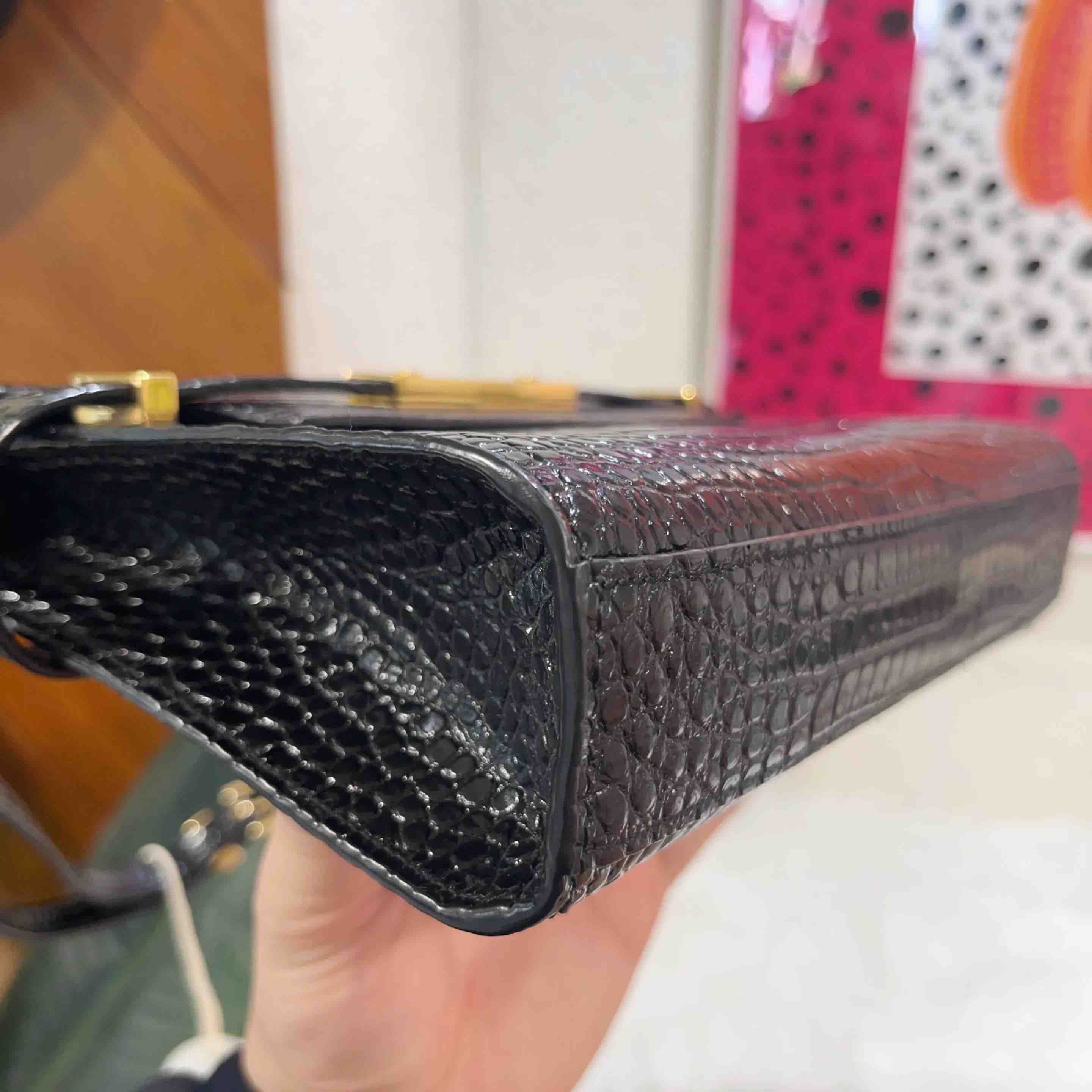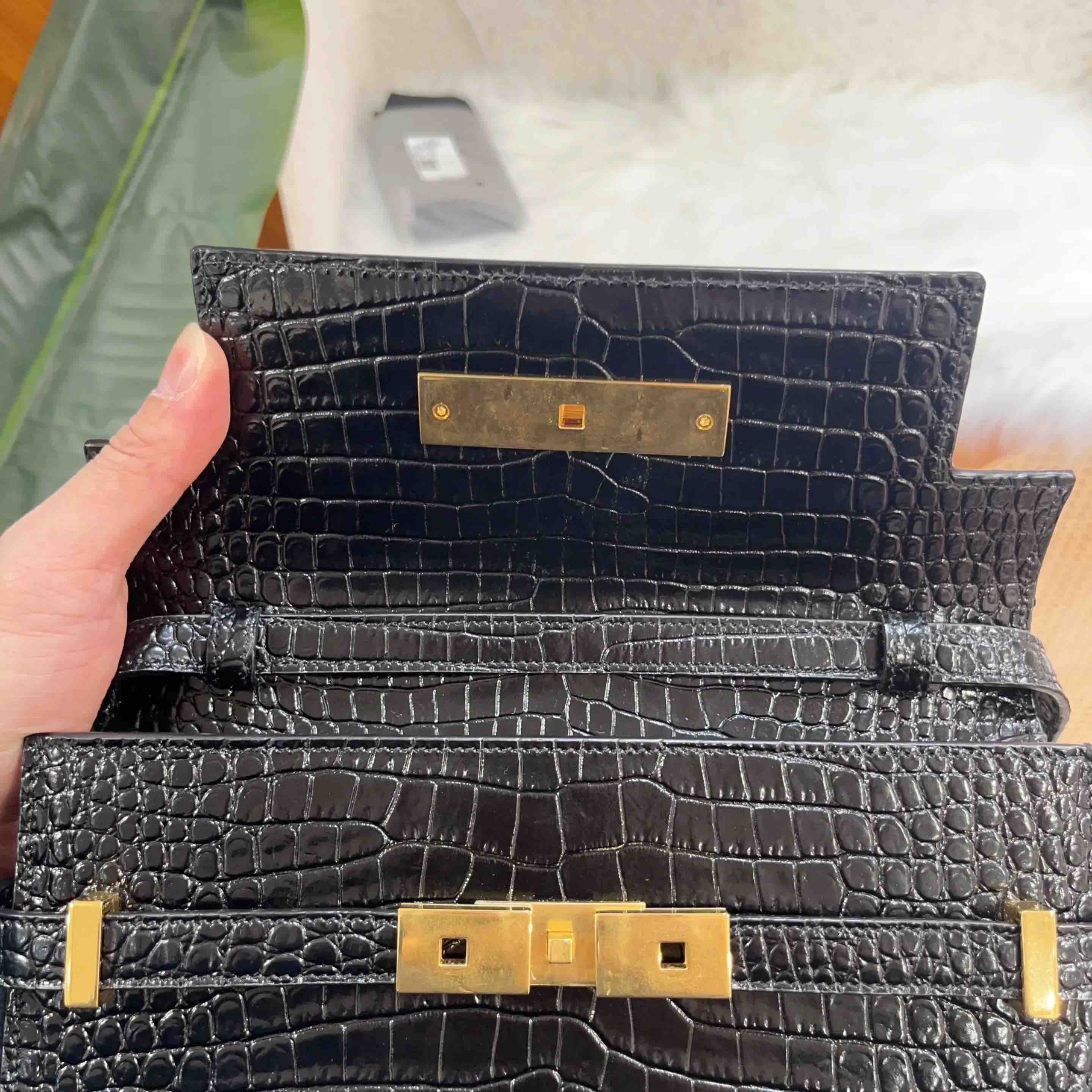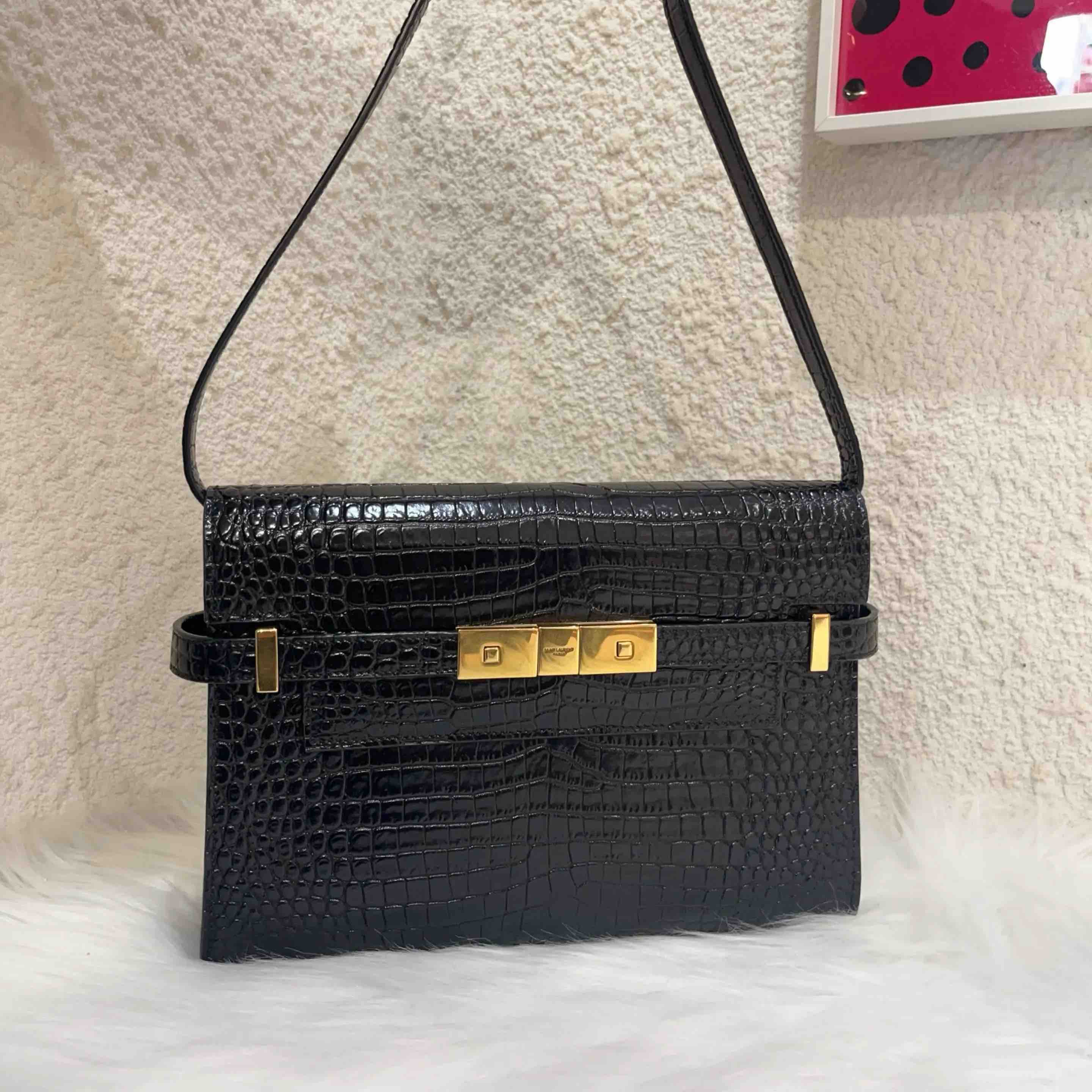 【商品详情】正品二手 YSL Manhattan 曼哈顿 小号 鳄鱼纹 牛皮 单肩包 🦾 98新 24×17 配件:肩带 防尘袋。很有质感。