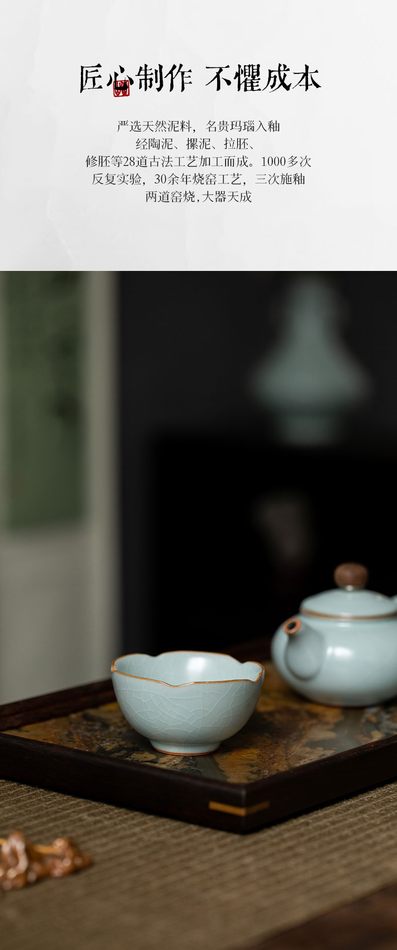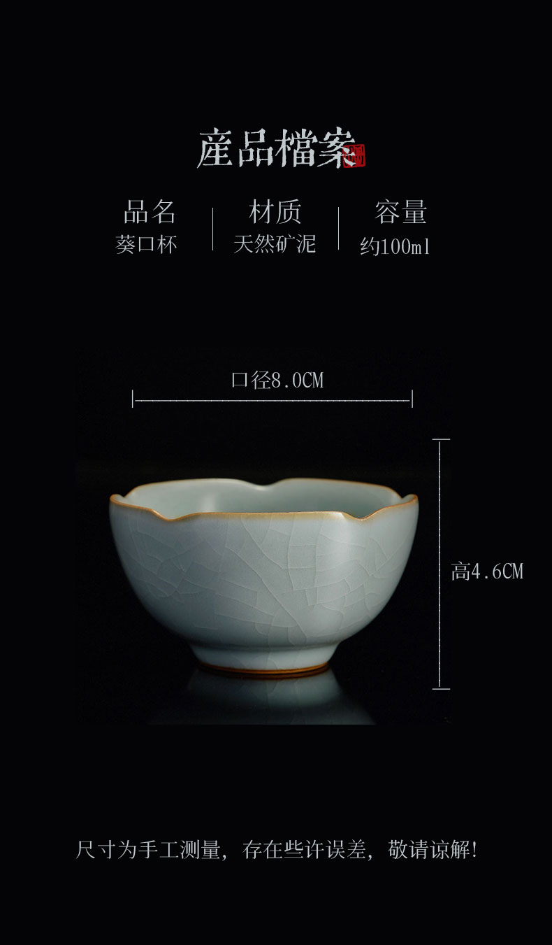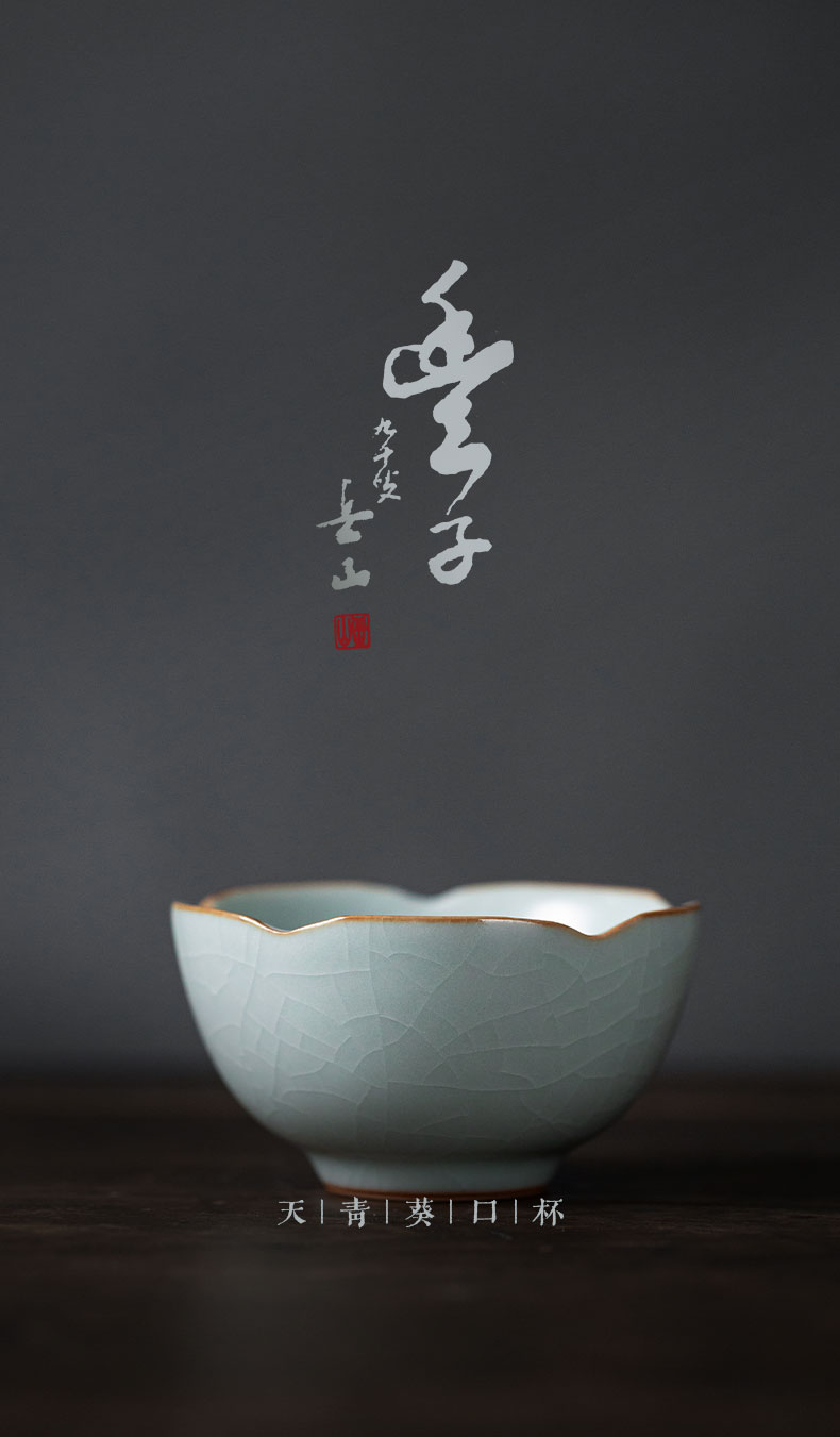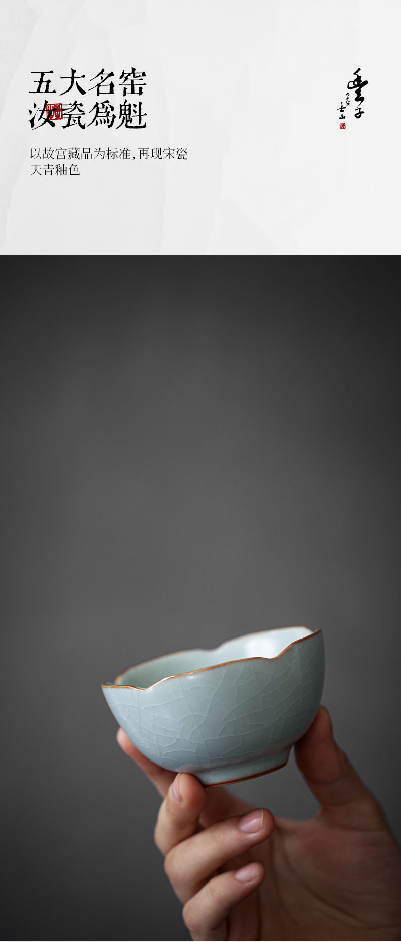 【丰子汝窑】【天青葵口杯】8.1x4.6cm 100ml 茶杯纯手工开片主人杯陶瓷汝瓷单杯子个人品茗杯功夫茶具