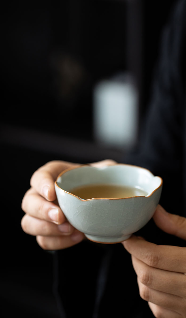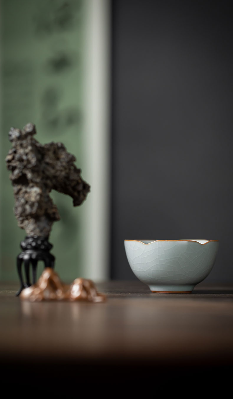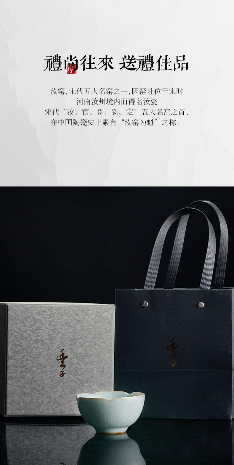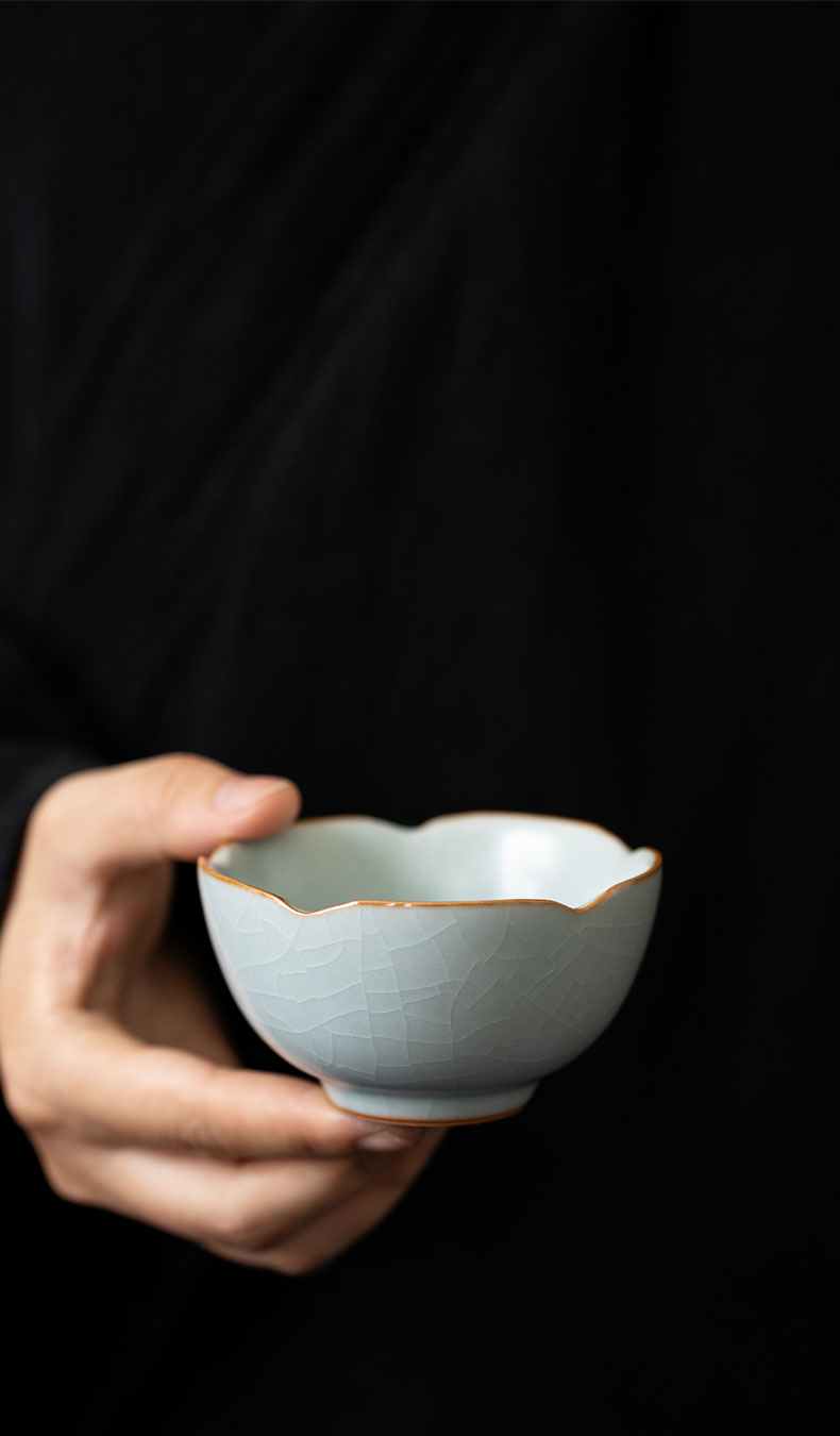 【丰子汝窑】【天青葵口杯】8.1x4.6cm 100ml 茶杯纯手工开片主人杯陶瓷汝瓷单杯子个人品茗杯功夫茶具