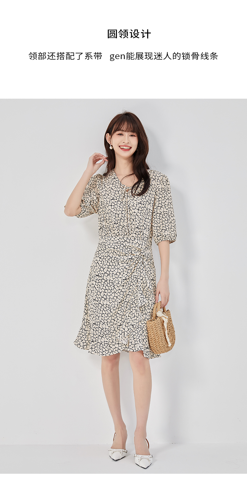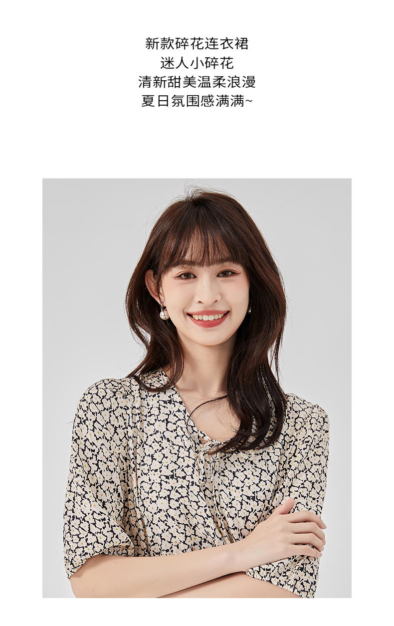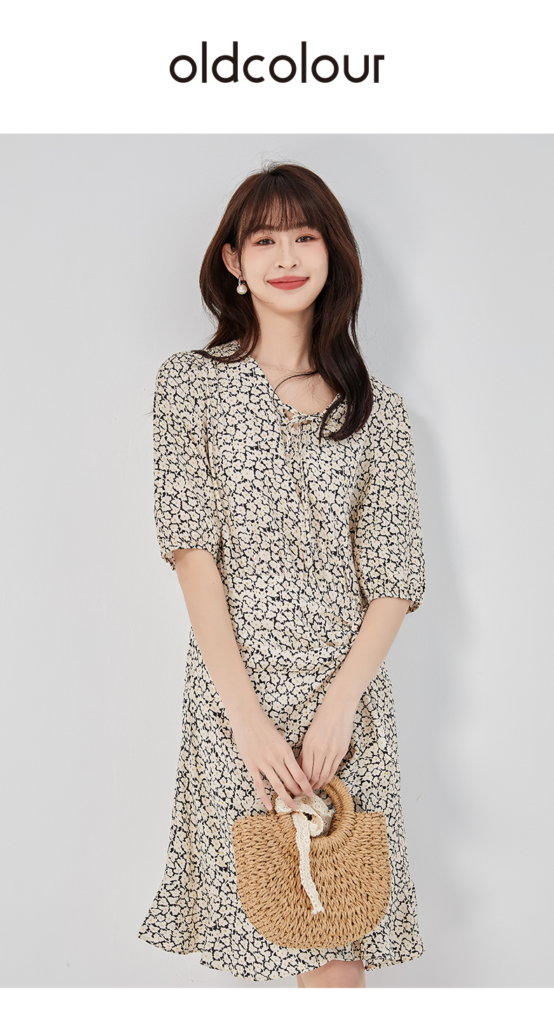 oldcolour2023夏季新款法式气质V领高腰显瘦碎花连衣裙O24102206