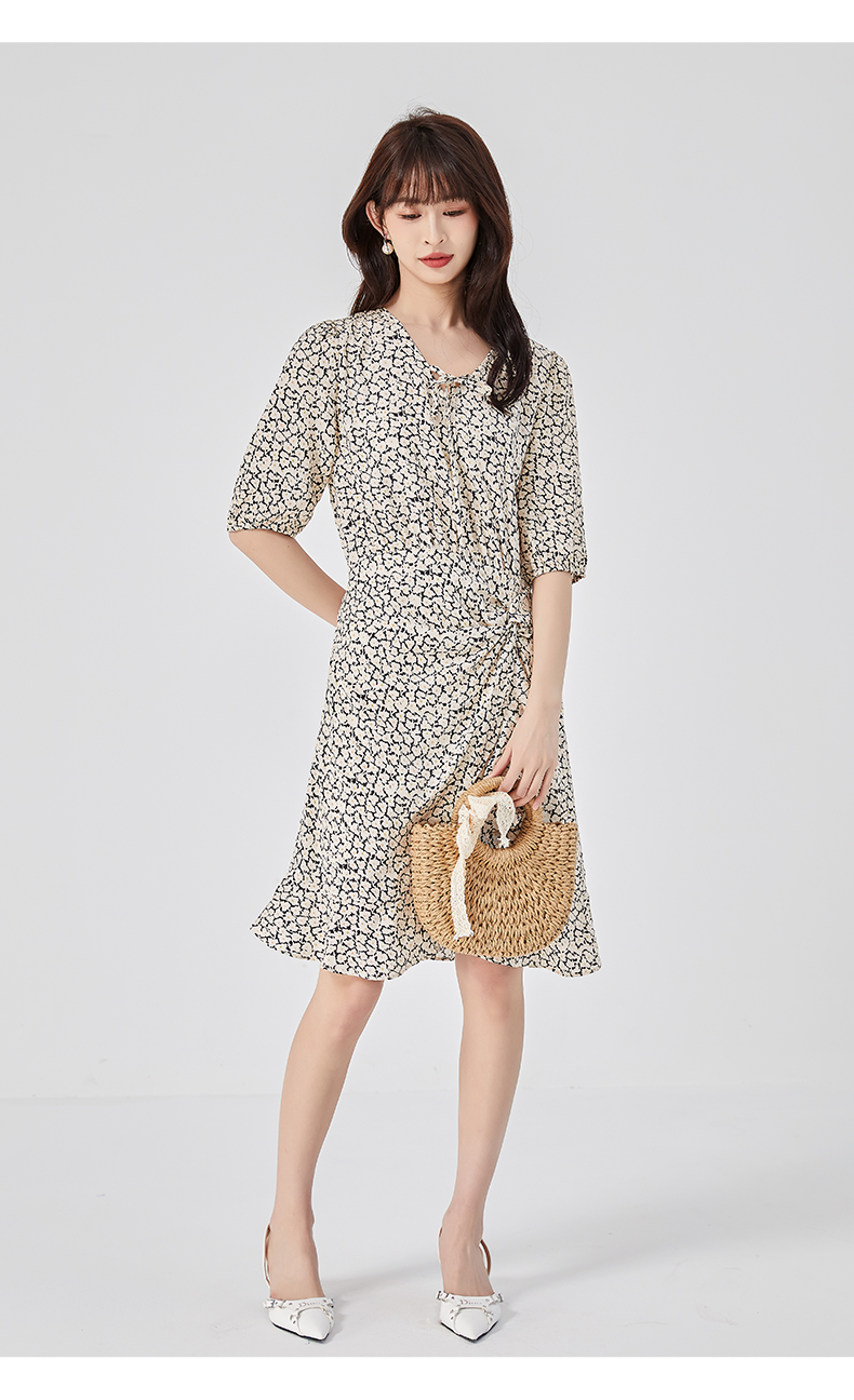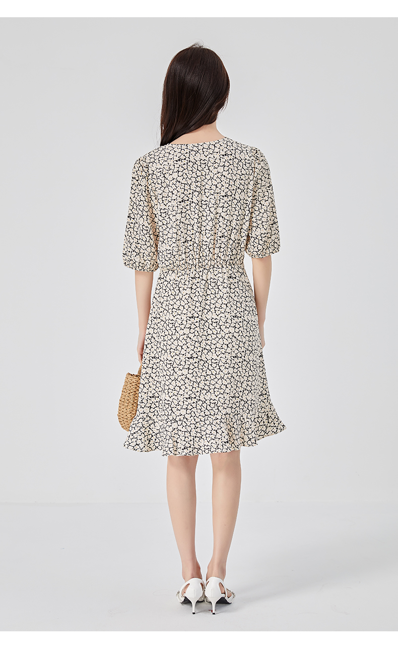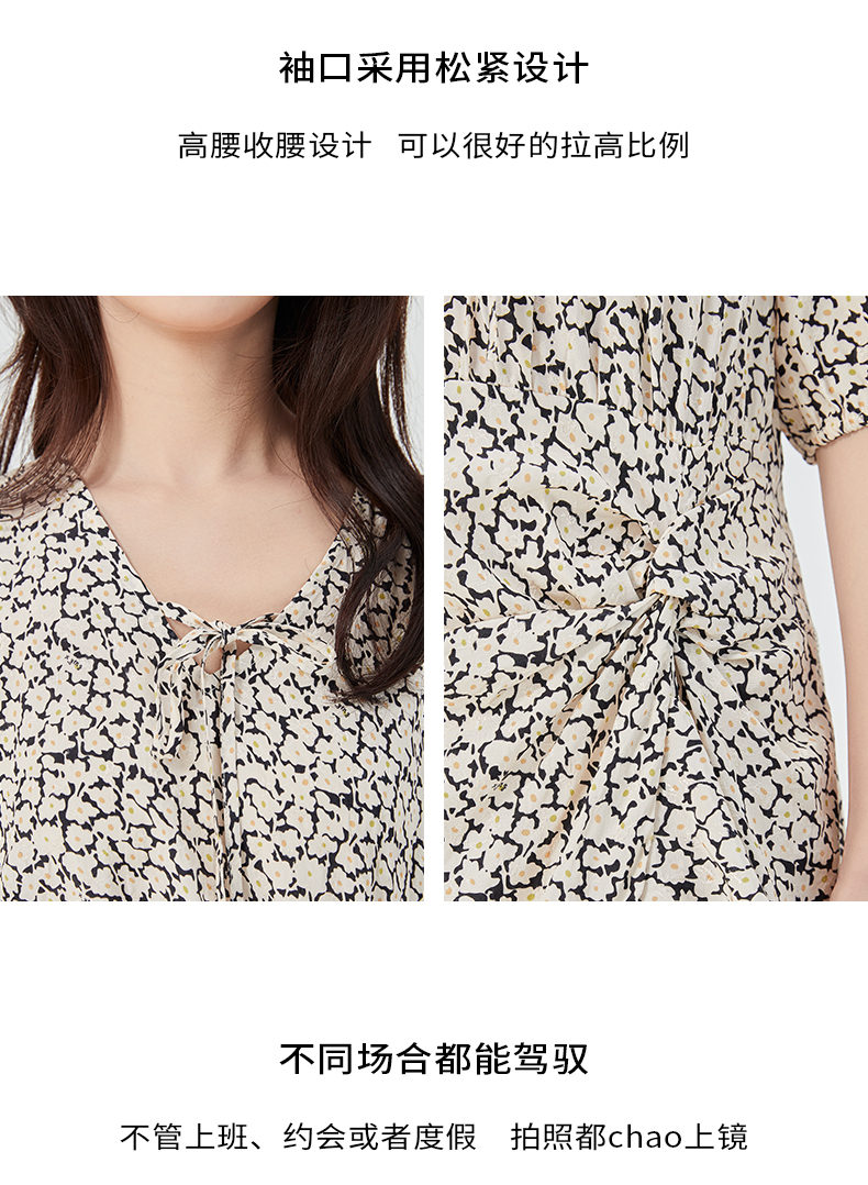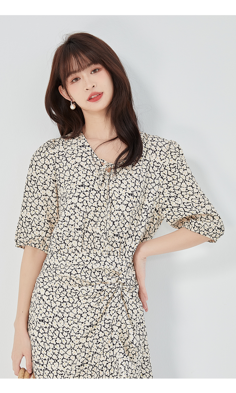 oldcolour2023夏季新款法式气质V领高腰显瘦碎花连衣裙O24102206